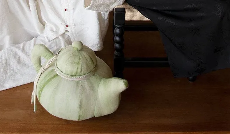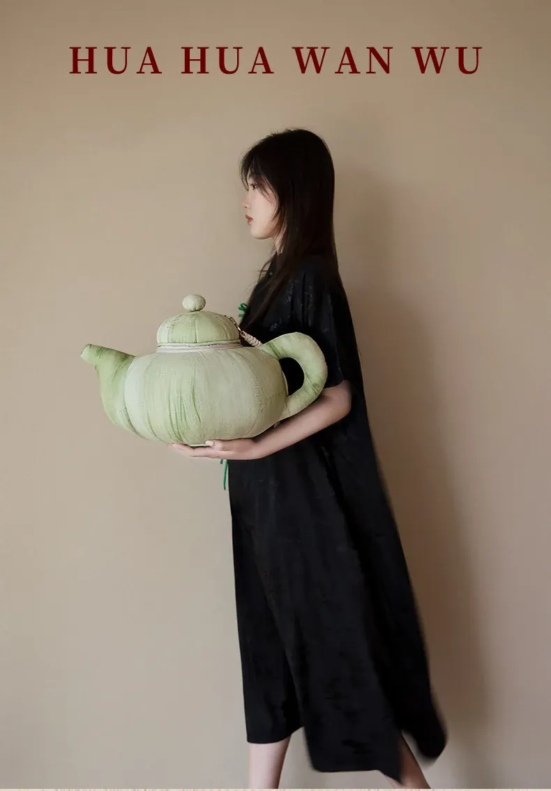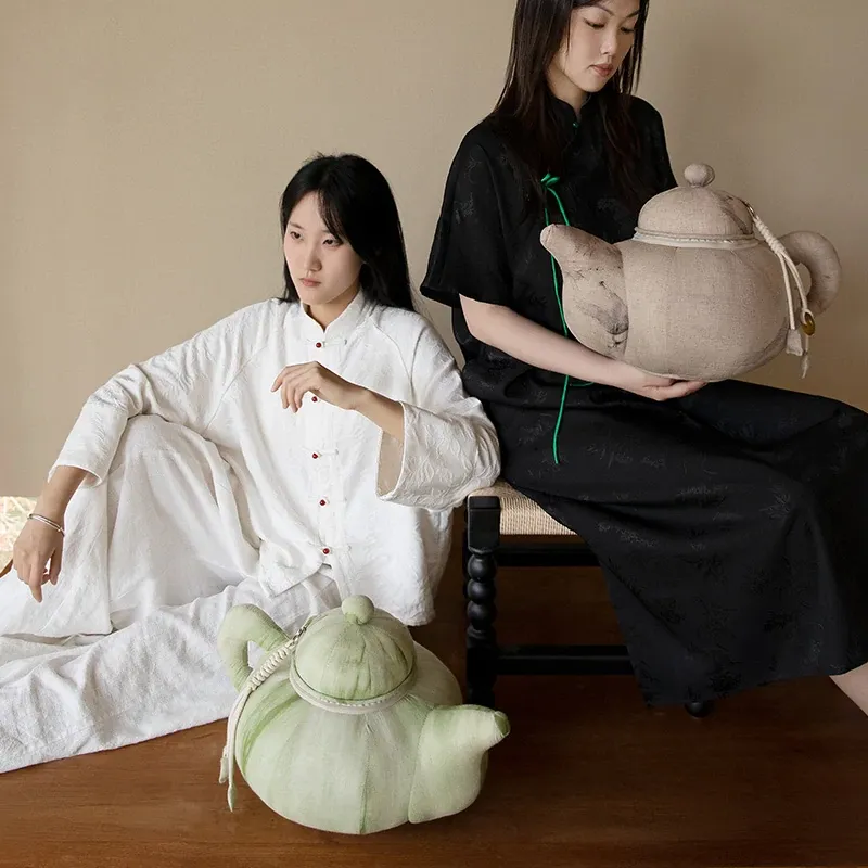 新中式デザインのミニティーポットクッション|リビングソファの装飾に最適!宋風の東洋美学を感じるユニークな形状のクッション|一つのティーポットをモチーフにしたおしゃれなインテリアアイテム!