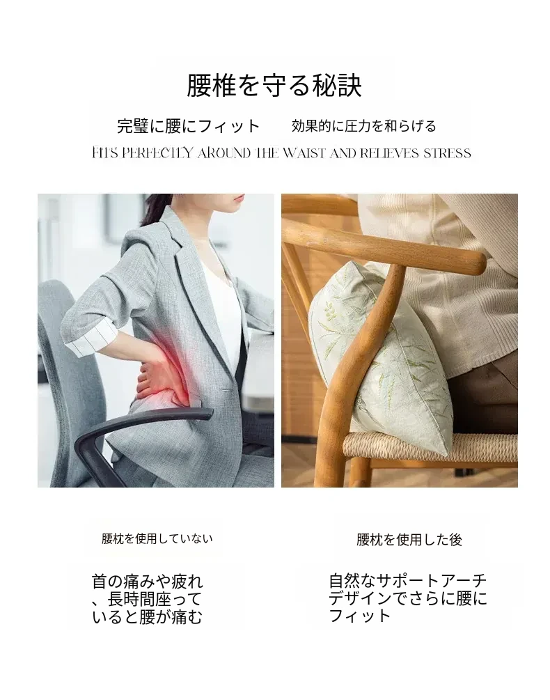 快適なオフィスライフをサポート!腰をしっかり支えるオフィスチェア用クッション - 長時間座っても疲れ知らず、リラックスできる背もたれ!おしゃれなデザインで、どんな椅子にもぴったりフィットします。