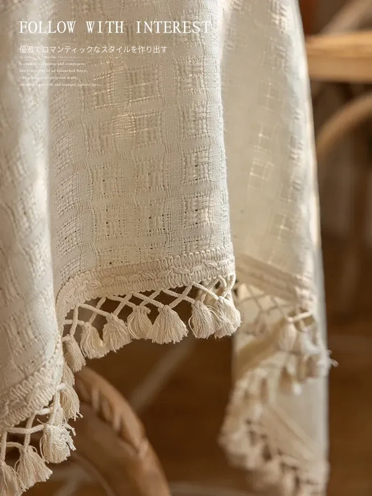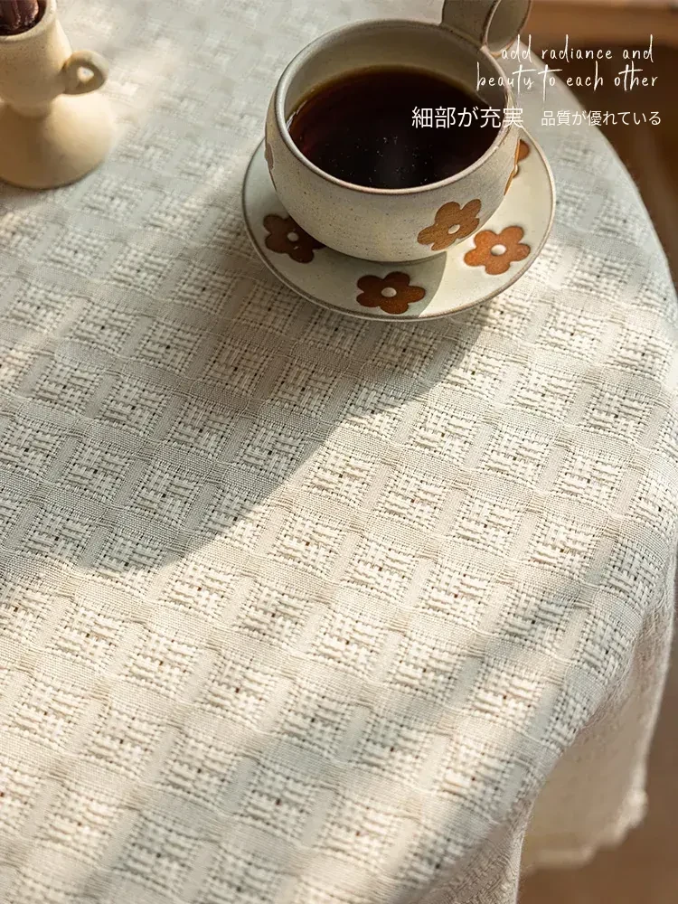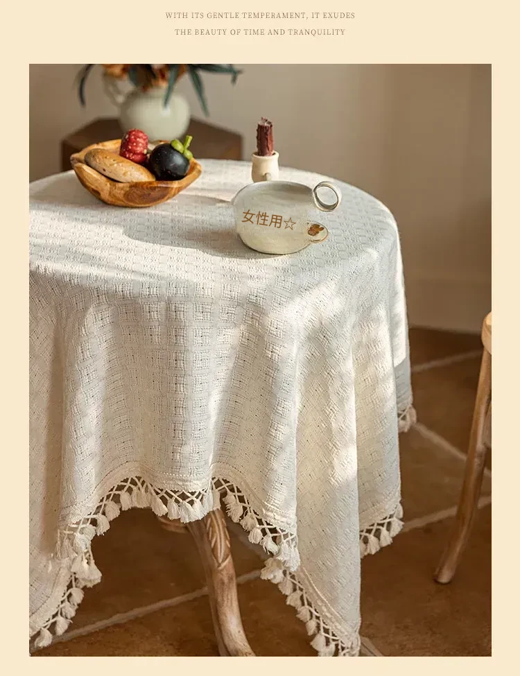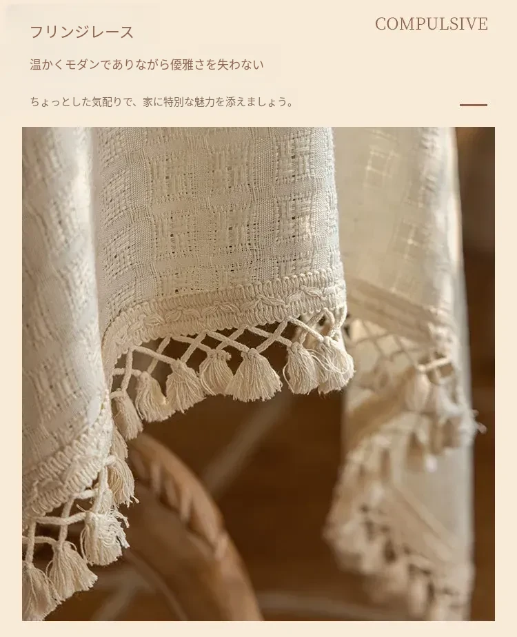 フレンチインスピレーション ベージュフリンジ ラウンドテーブルクロス 高級感溢れるモダンデザイン 小さなティーテーブル用カバー でおしゃれな食卓を演出!