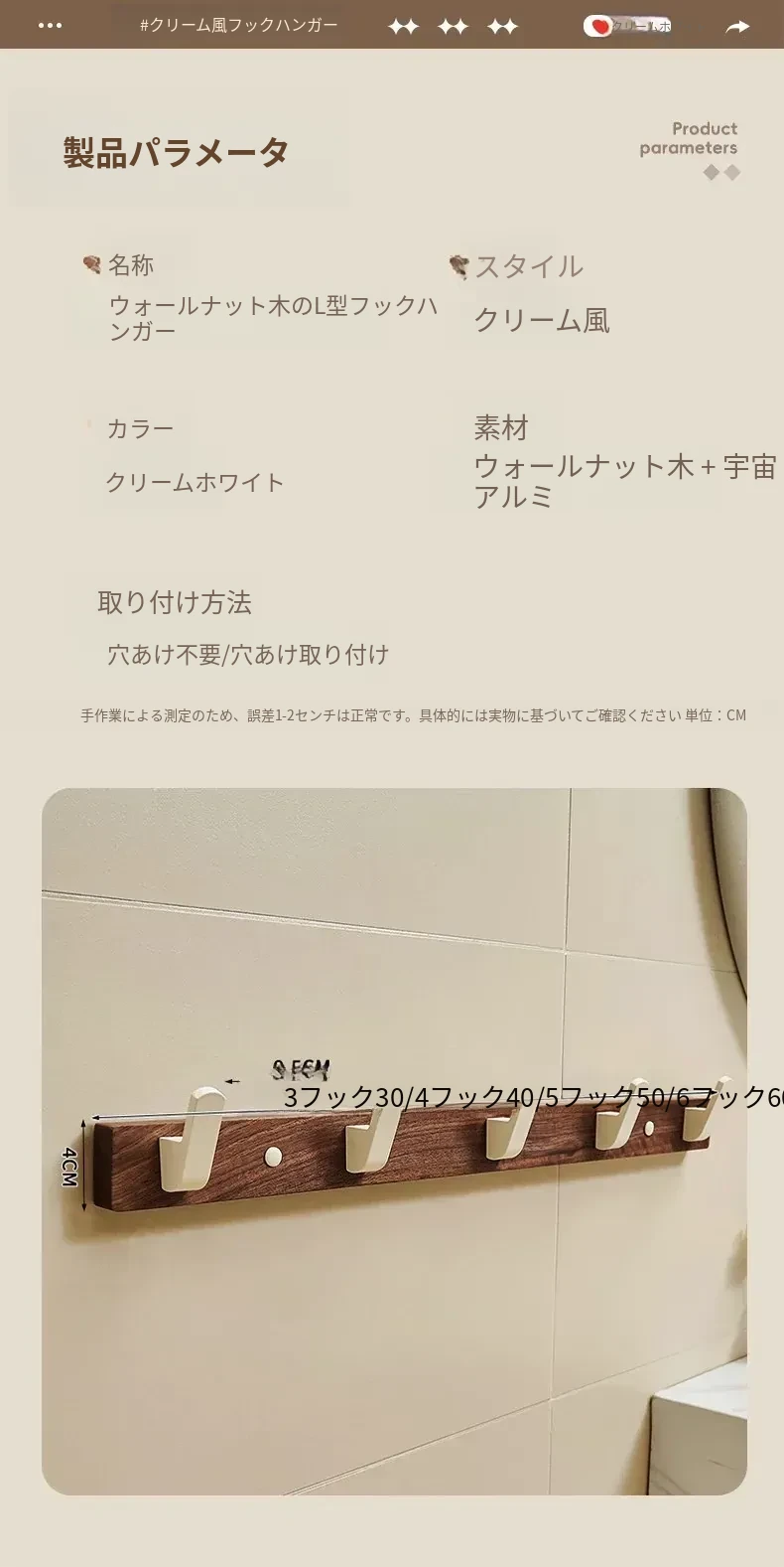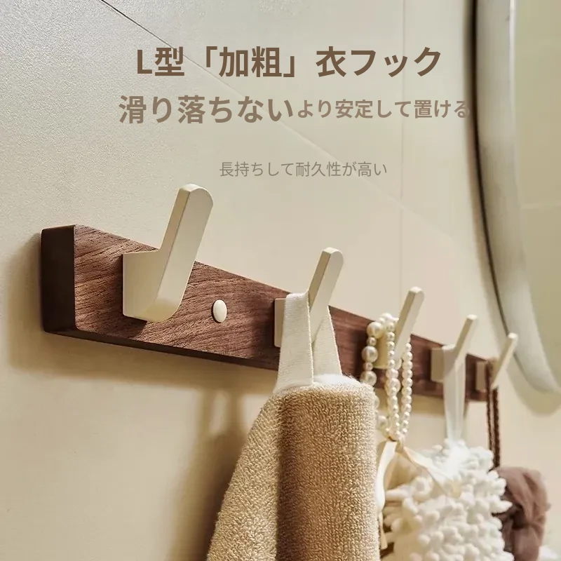 メラードのブラックウォールナット製ドア用高級フック - 穴あけ不要で簡単取り付け、エントランスや寝室にぴったりな壁掛けコートハンガー!おしゃれで実用的なデザインで、あなたの空間をグレードアップします。