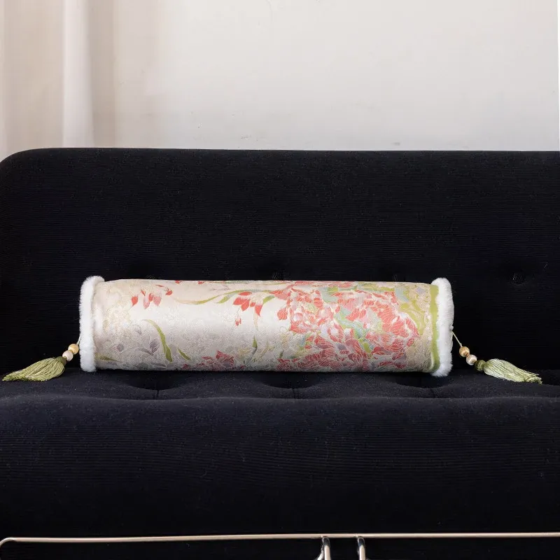 新中式デザインのクッション付き座布団 - 高級感溢れるロング抱き枕。リビングやタタミにぴったり、ソファの雰囲気を格上げするアイテムです。おしゃれな空間を演出して、心地よいひとときをお楽しみください。