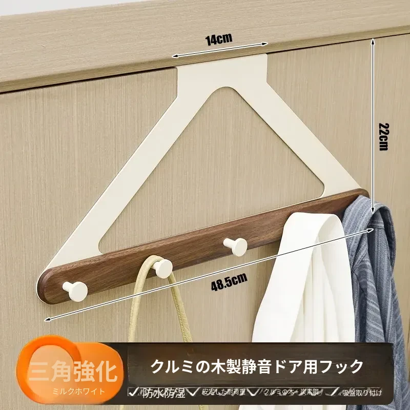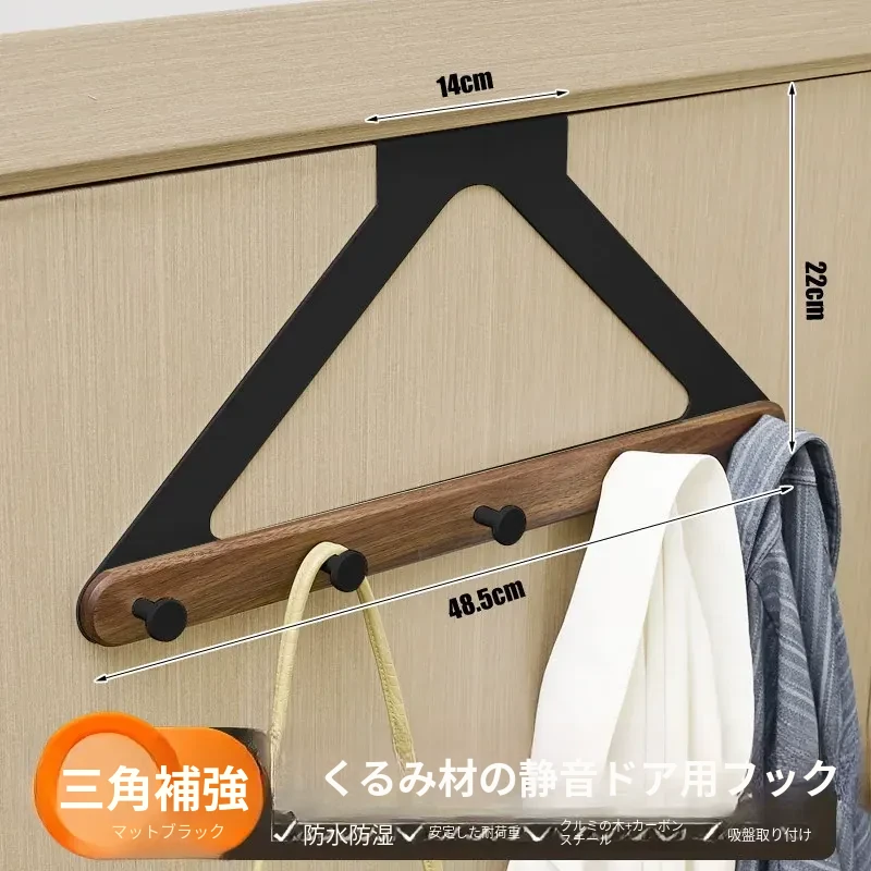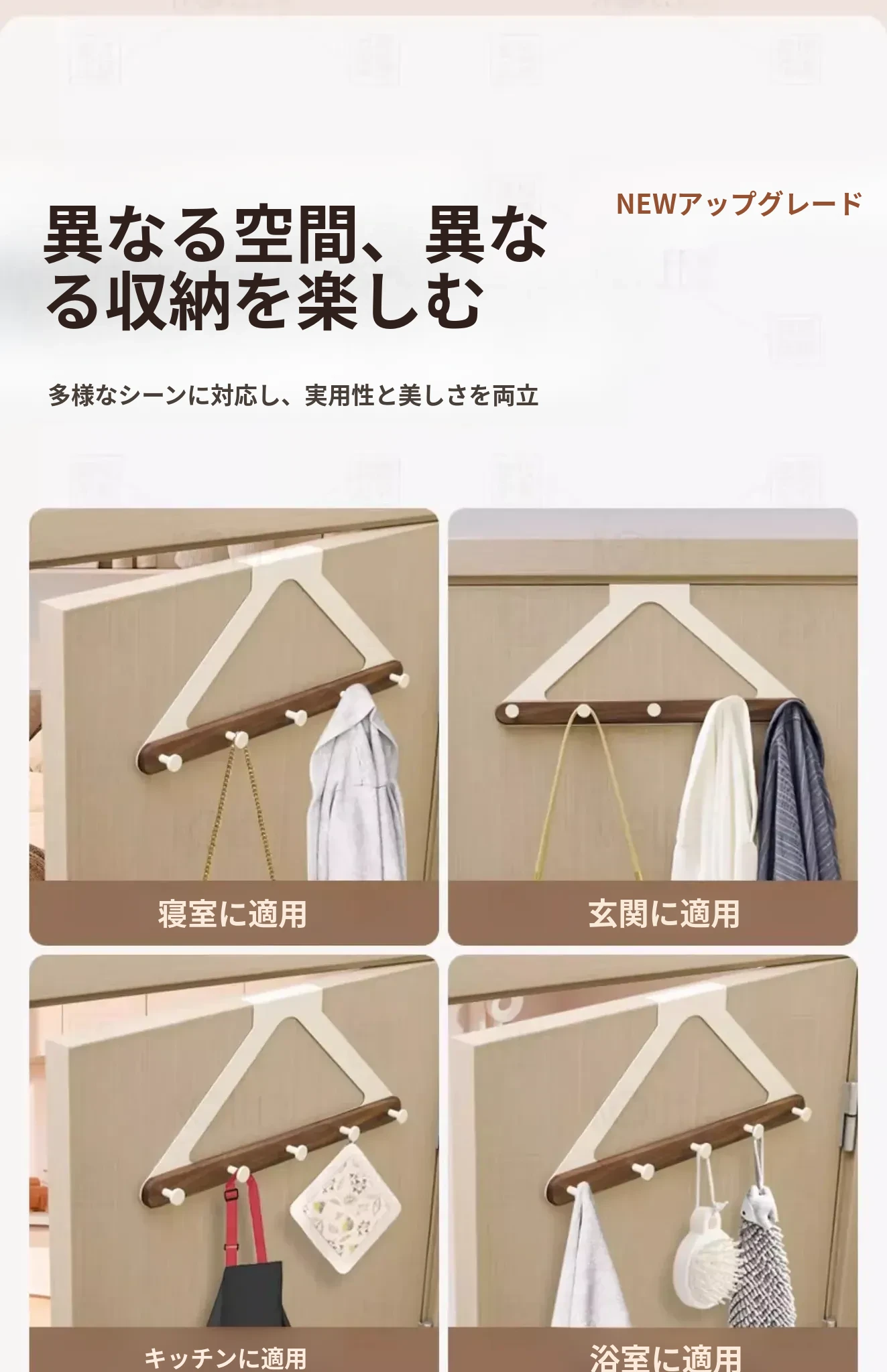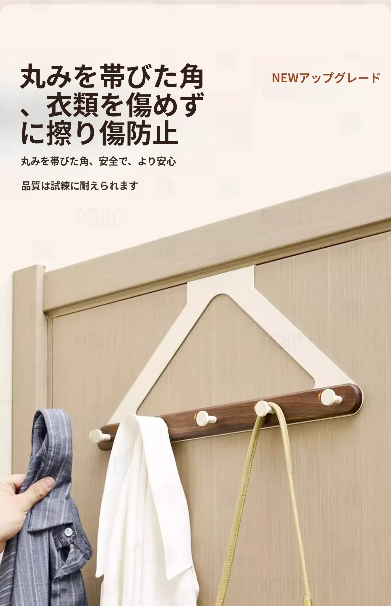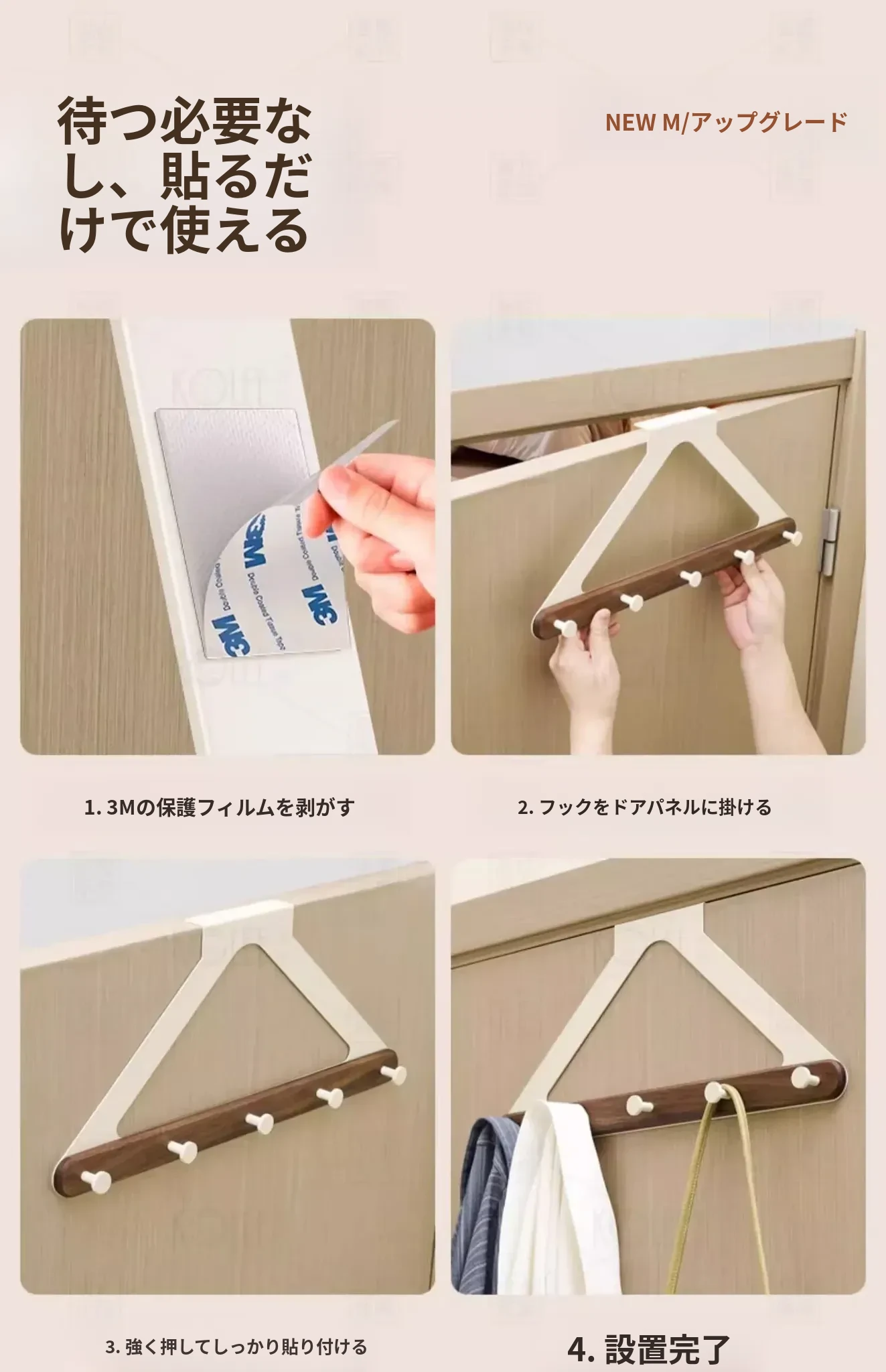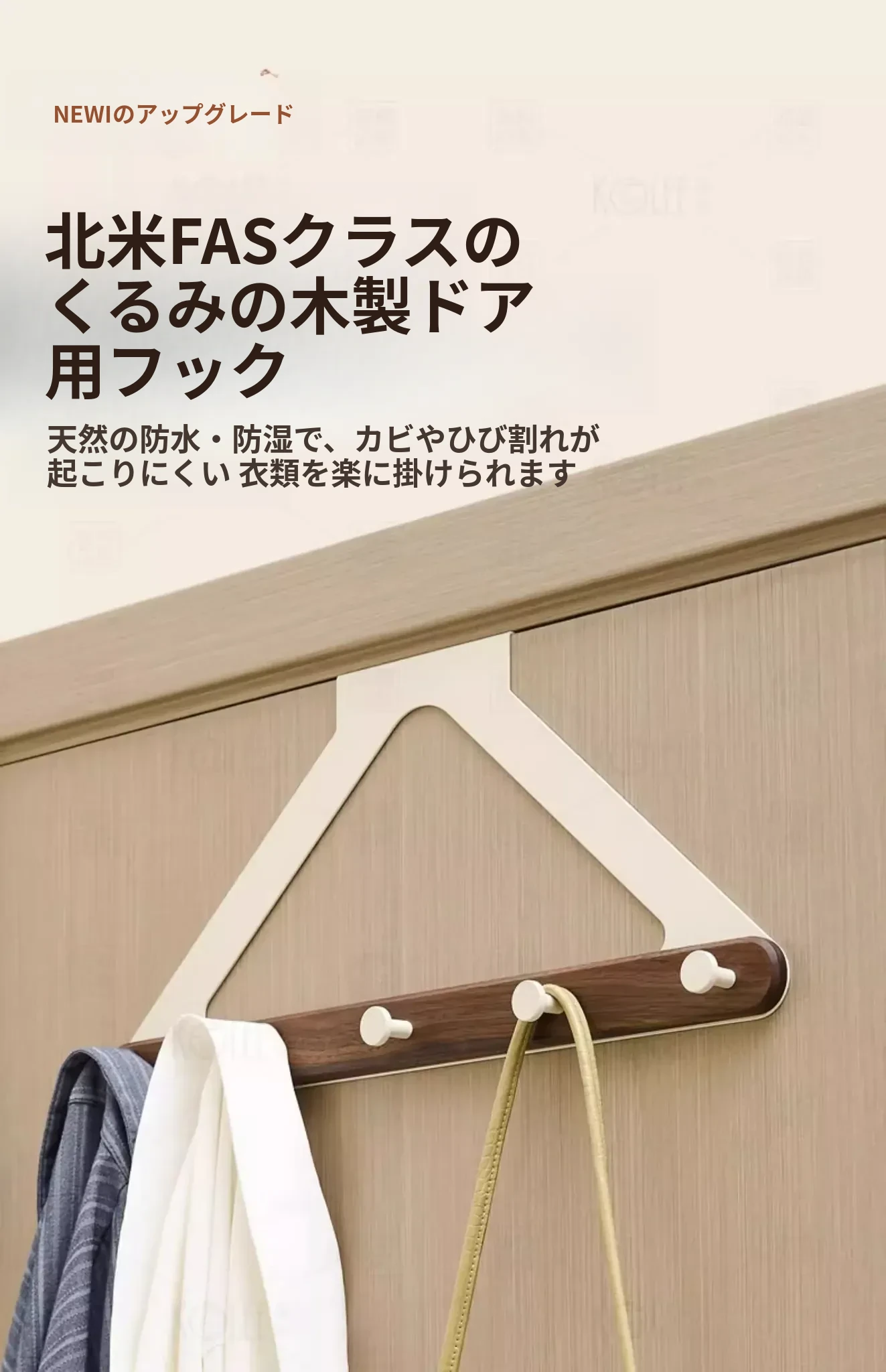 美しいミラードのウォールナットドアフックハンガー - 壁掛け・ドア裏用の衣類・帽子フック、無痕で簡単取り付け、穴あけ不要の便利収納!お部屋をスッキリ整理整頓!