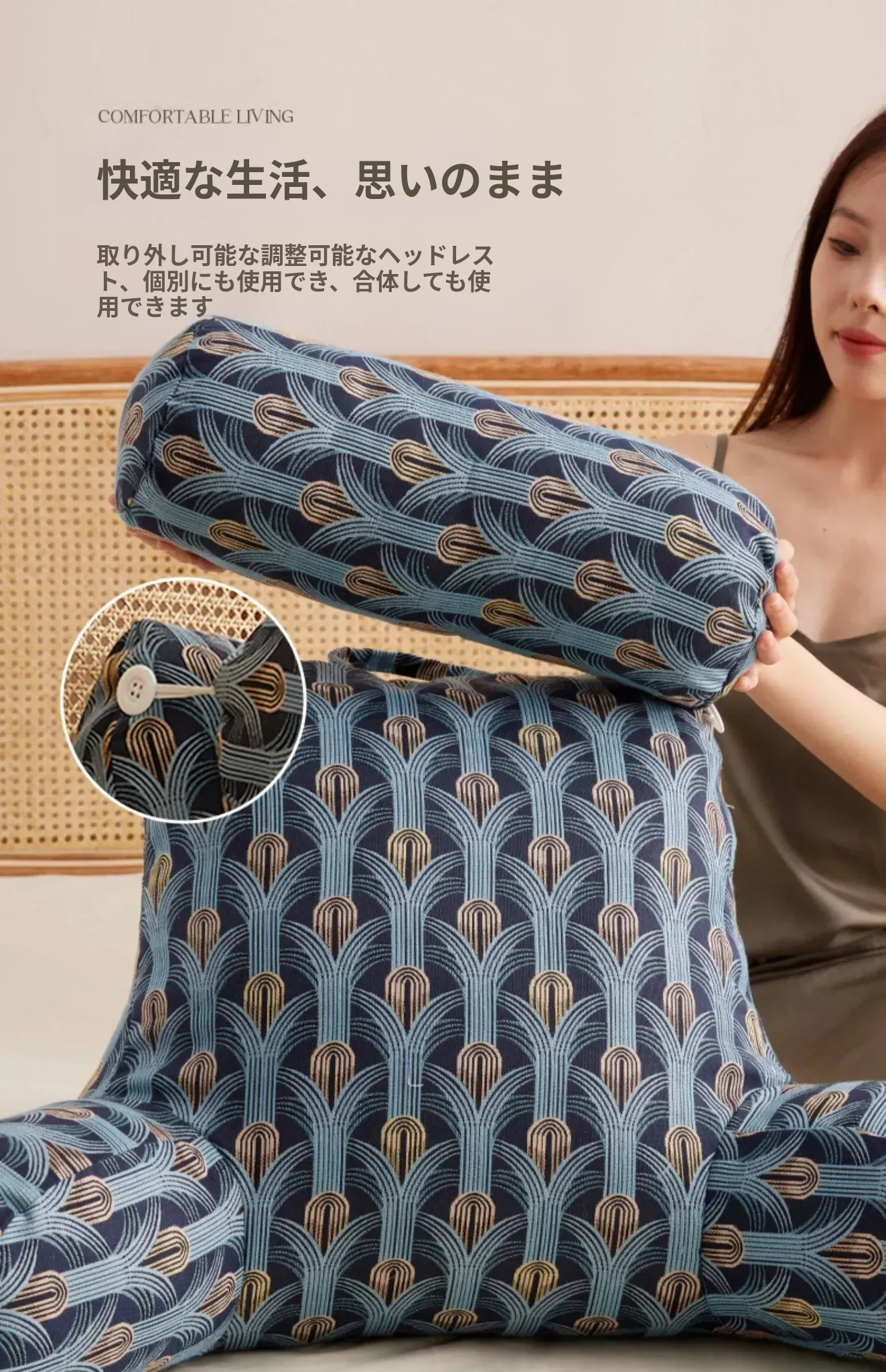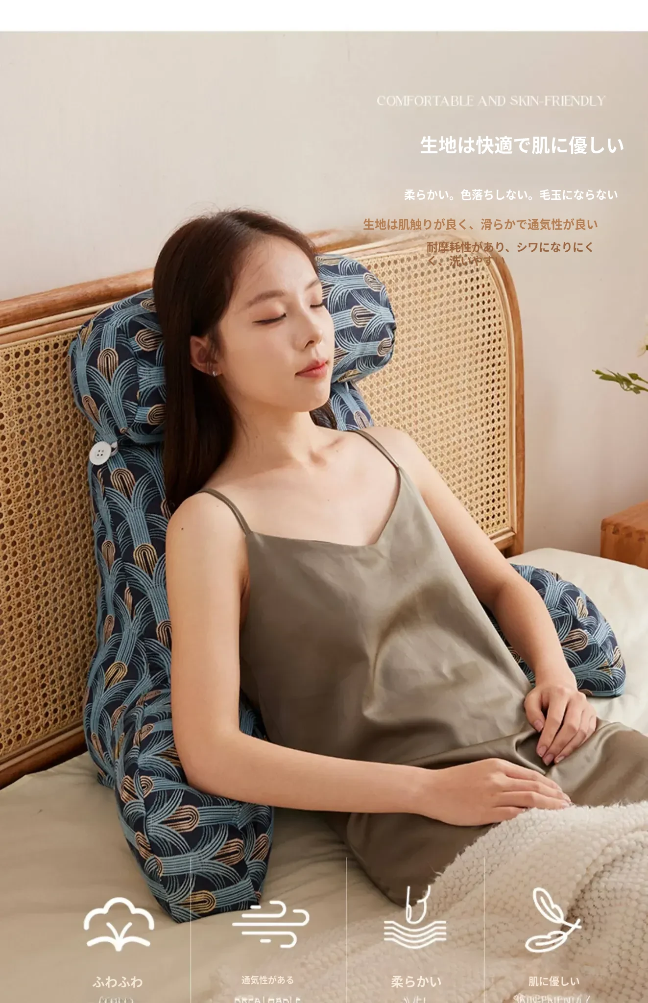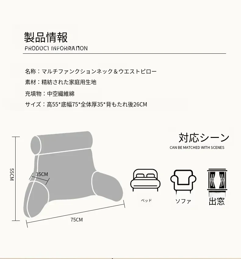 ベッドルーム用の腰サポートクッション!妊婦さんや授乳中のママに最適!ソファやベッドでのスマホ使用にもぴったり!洗える大きなバックレストで、快適なサポートを提供します。