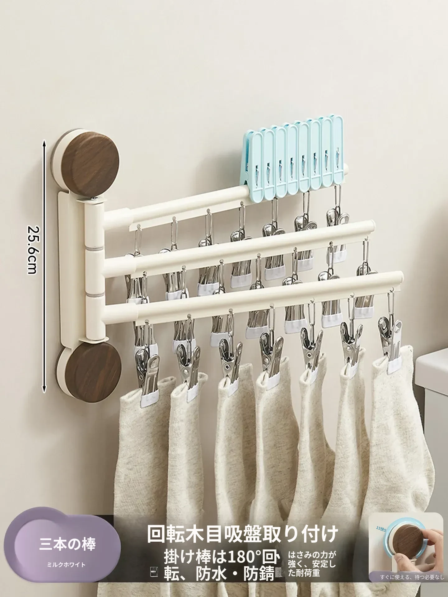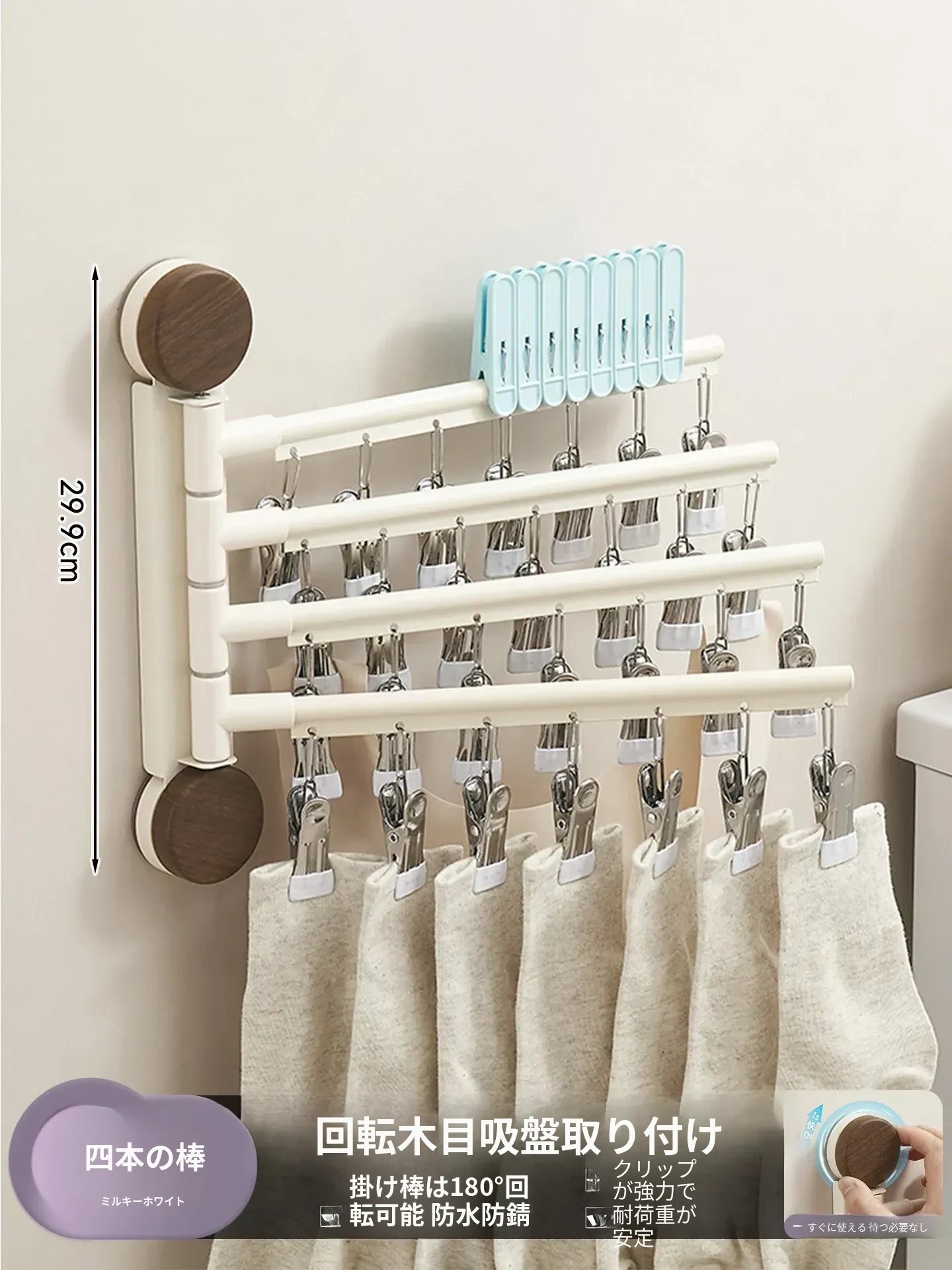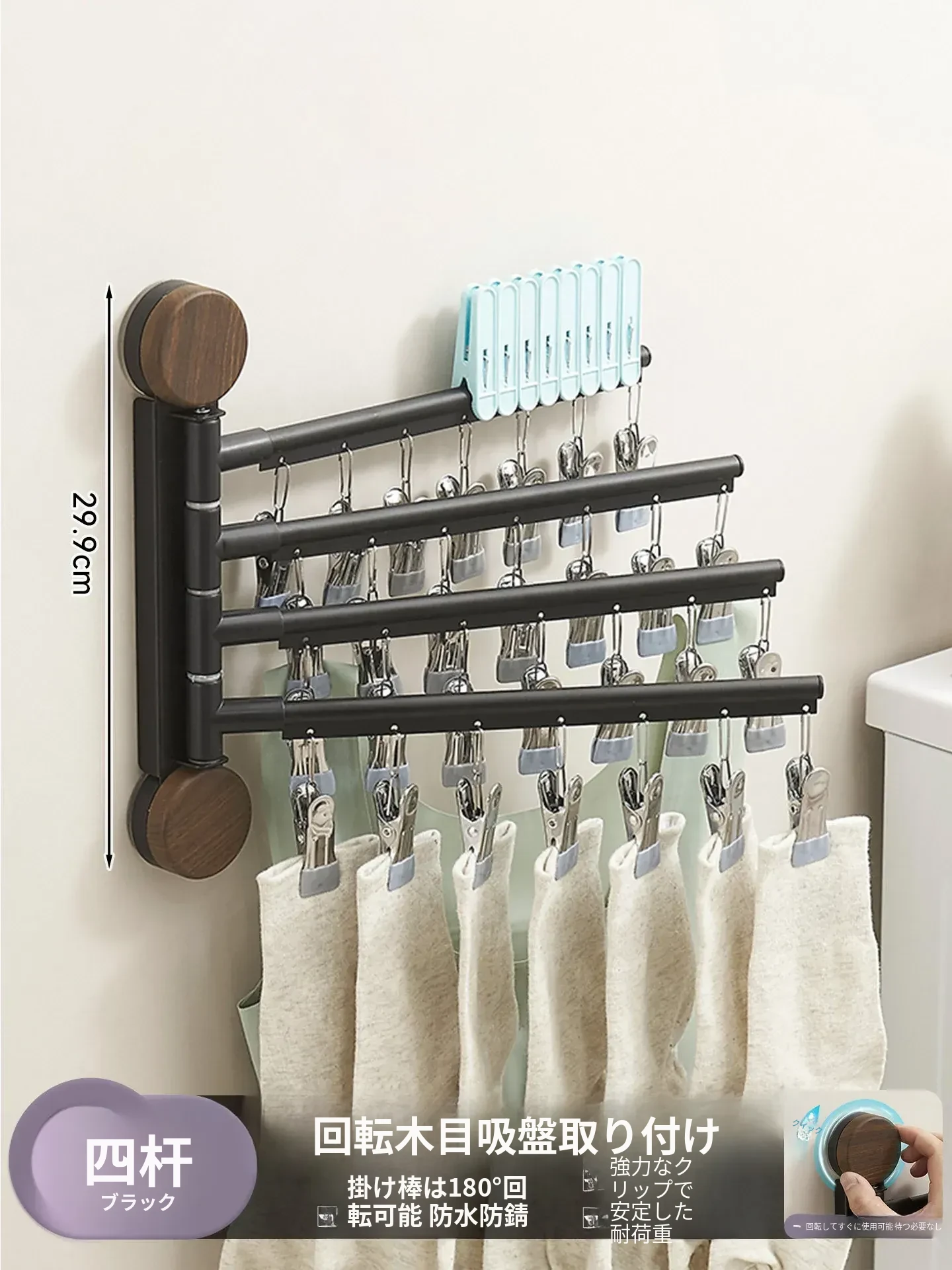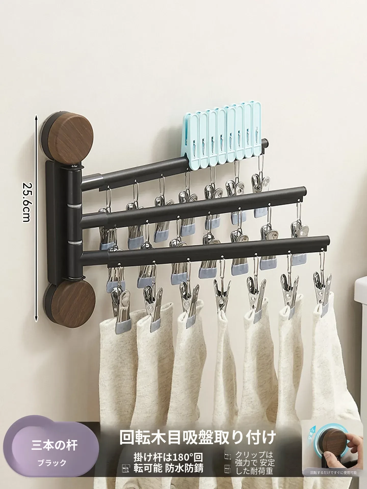 回転式吸盤付き多クリップ衣類干しラック - 家庭用バルコニーに最適!靴下や下着を効率的に乾かせる多機能折りたたみ式です。スペースを有効活用し、快適な洗濯ライフをサポートします!