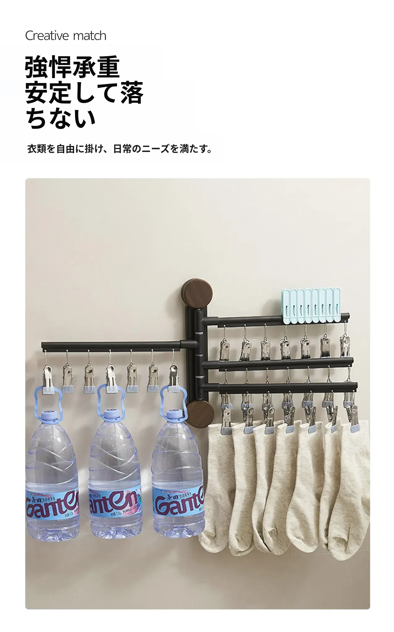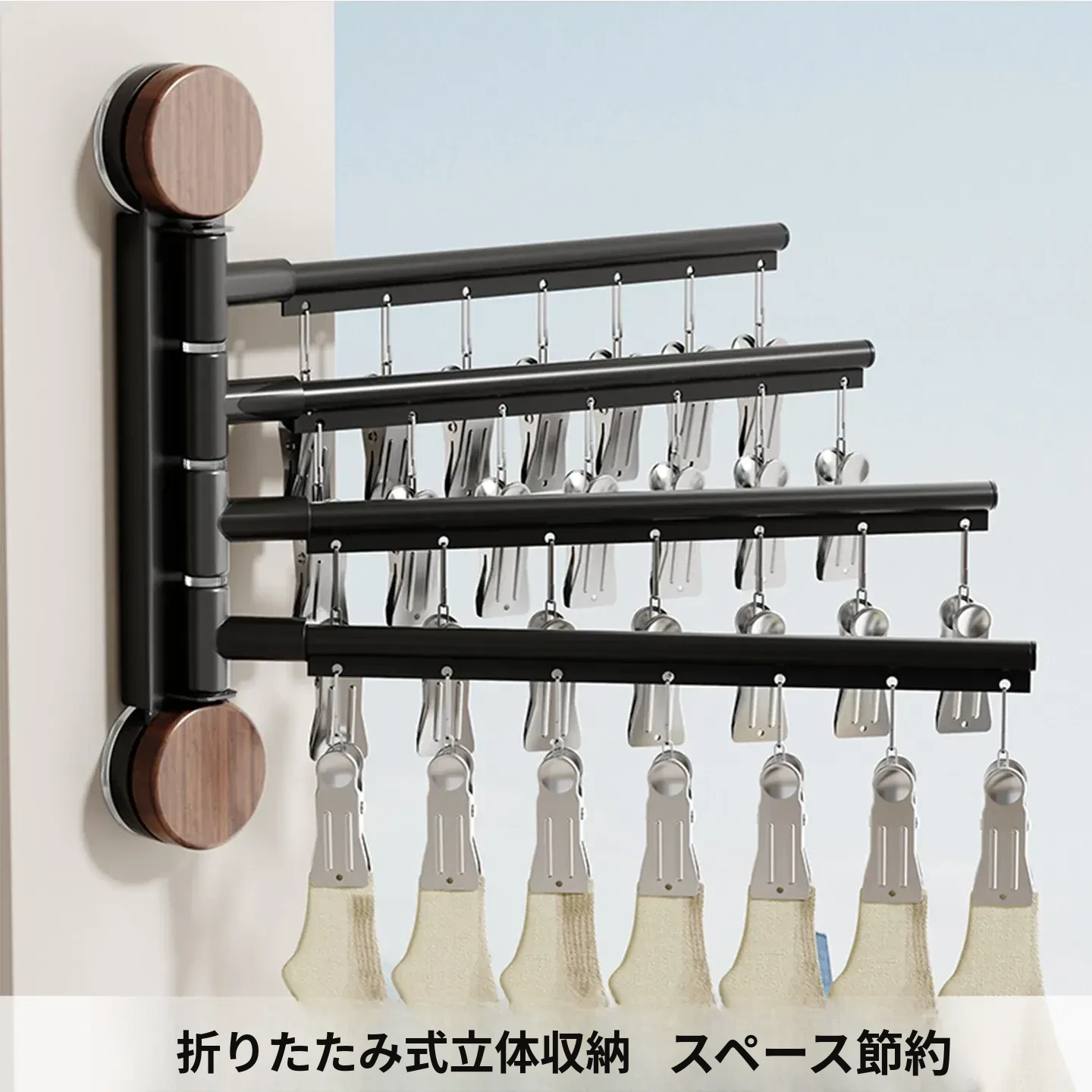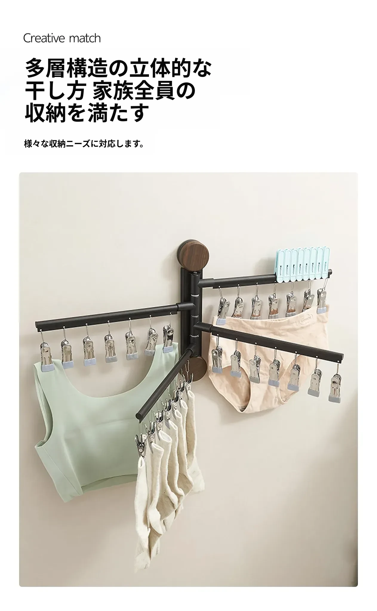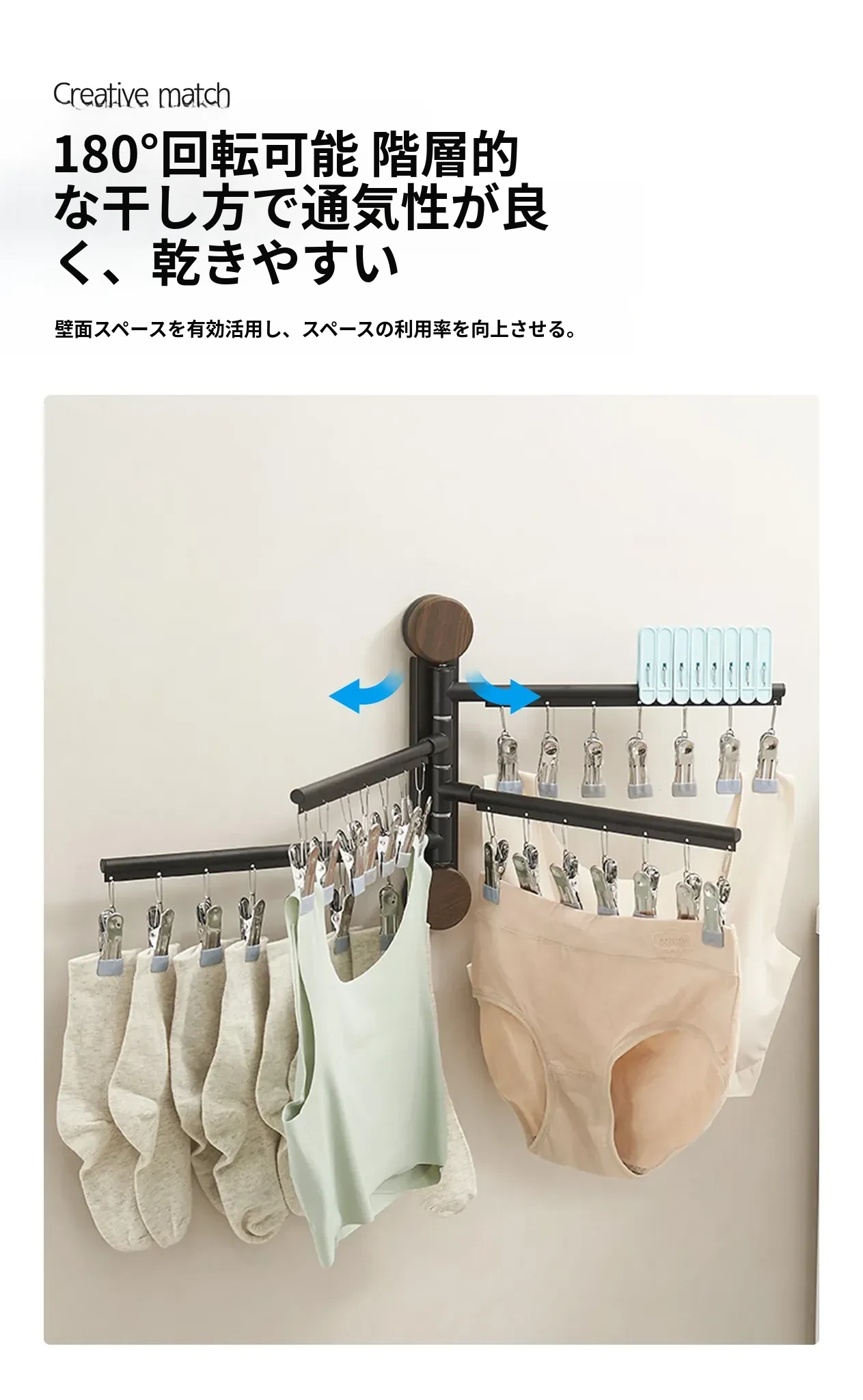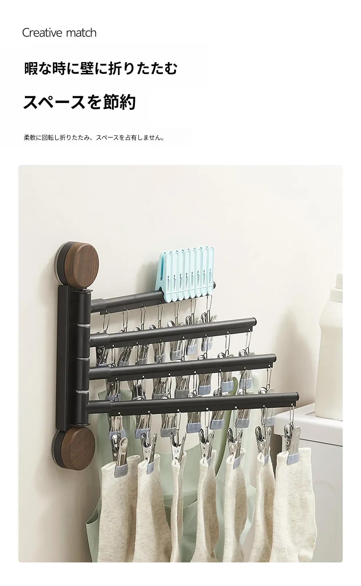 回転式吸盤付き多クリップ衣類干しラック - 家庭用バルコニーに最適!靴下や下着を効率的に乾かせる多機能折りたたみ式です。スペースを有効活用し、快適な洗濯ライフをサポートします!