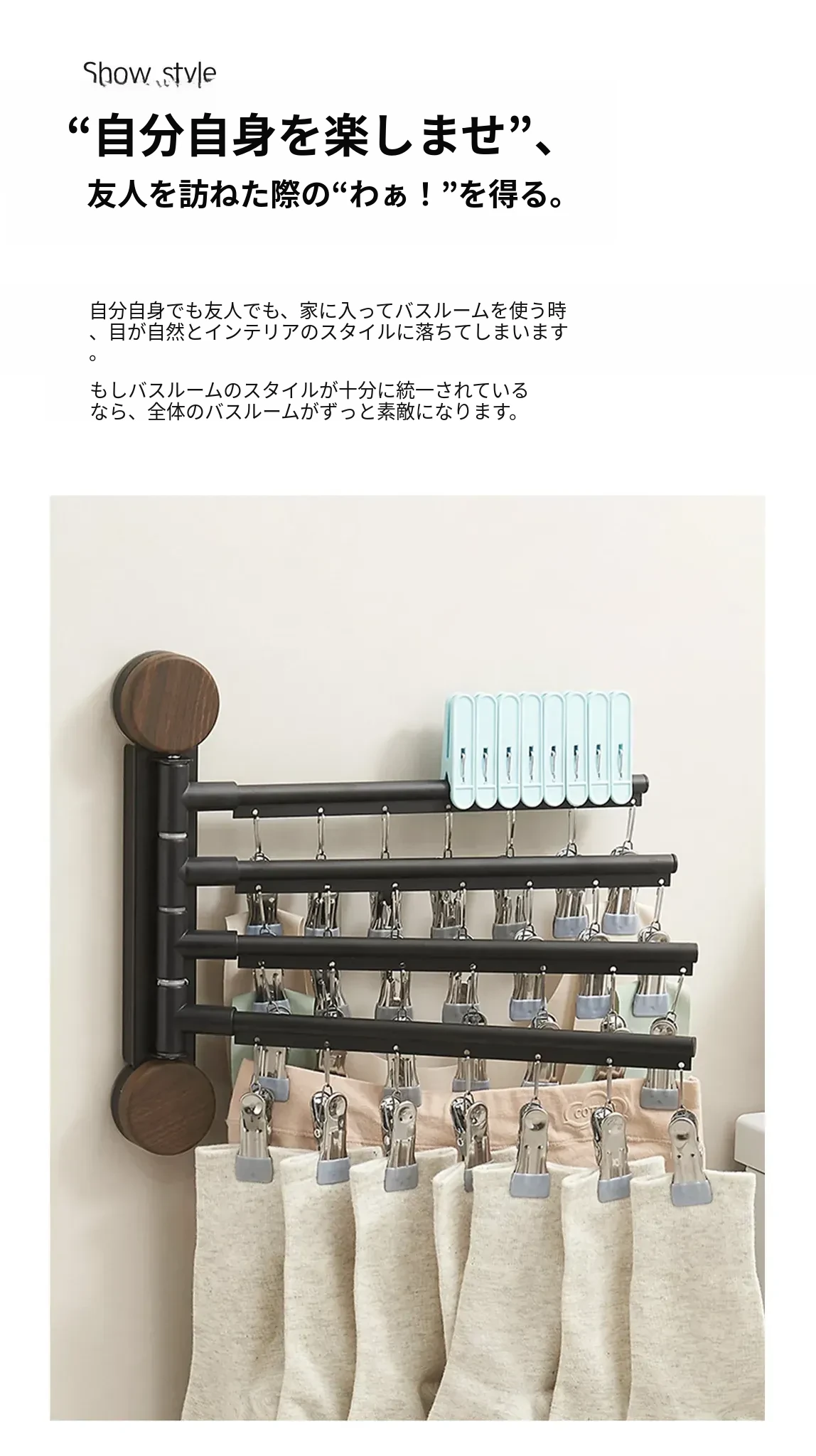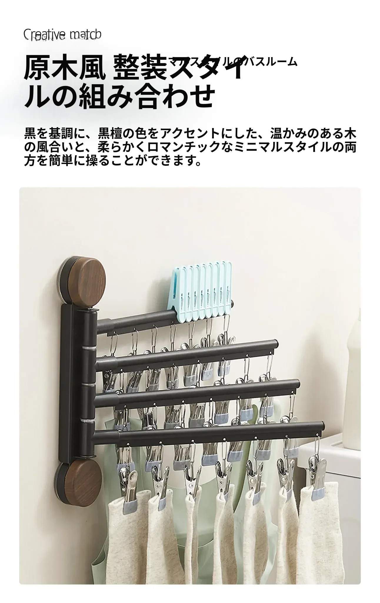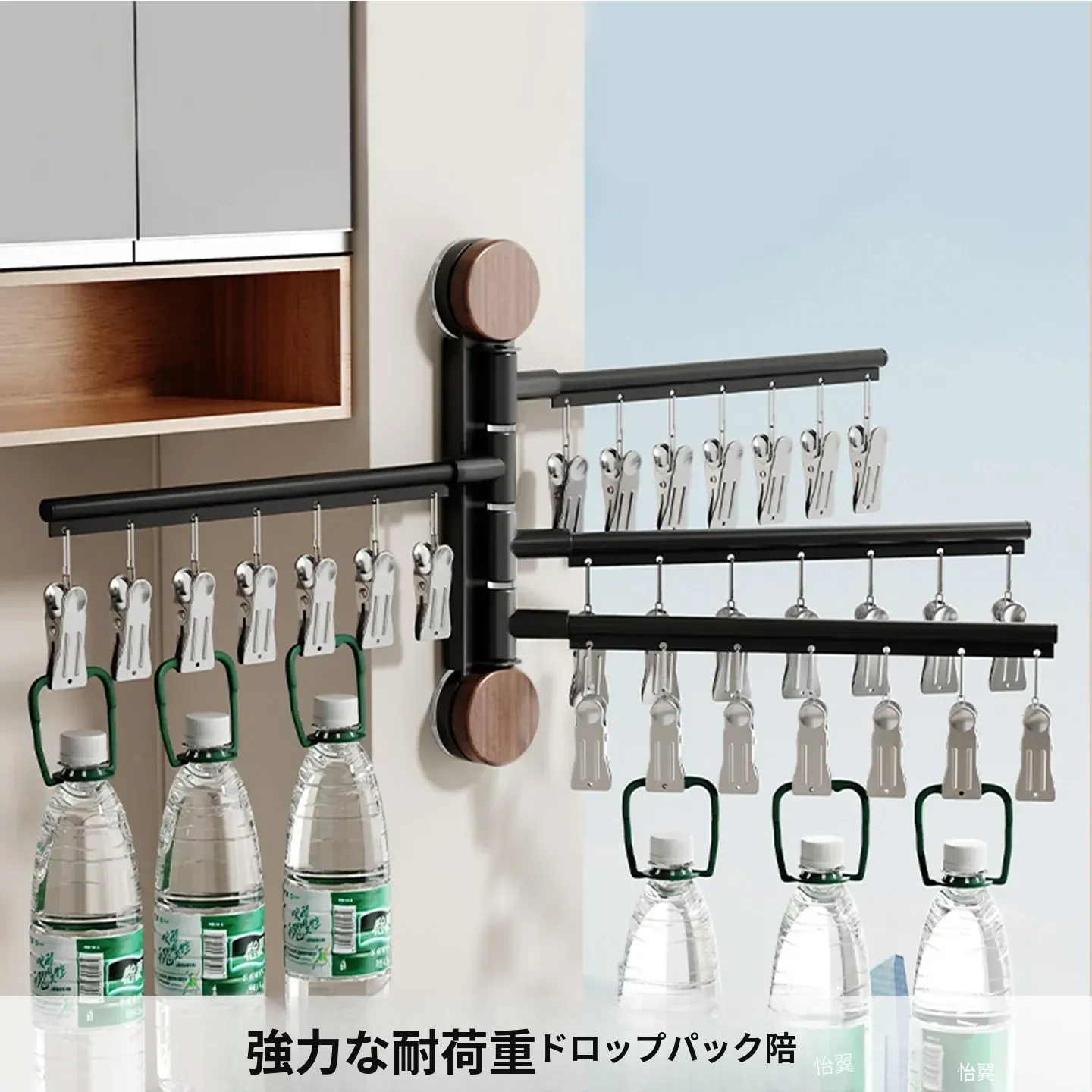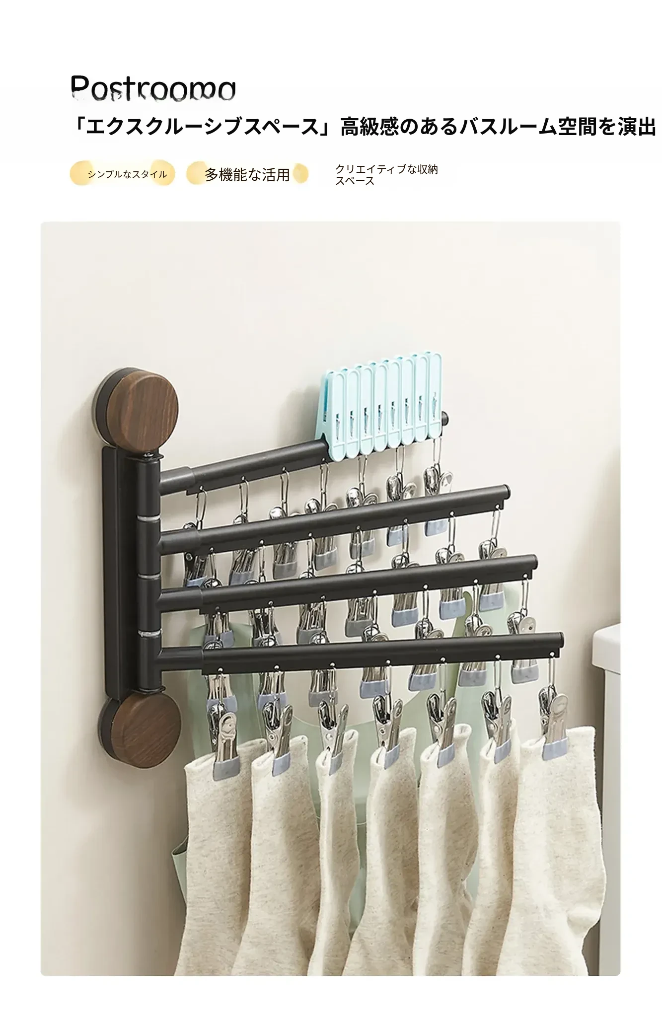 回転式吸盤付き多クリップ衣類干しラック - 家庭用バルコニーに最適!靴下や下着を効率的に乾かせる多機能折りたたみ式です。スペースを有効活用し、快適な洗濯ライフをサポートします!