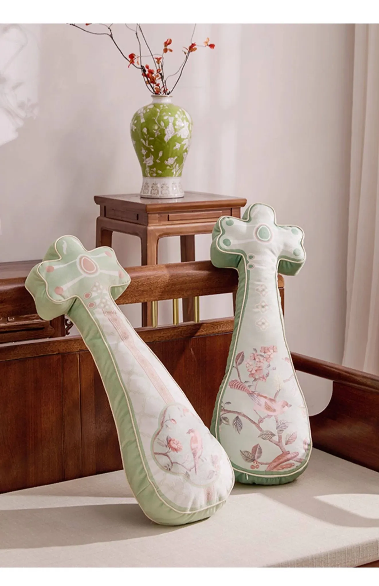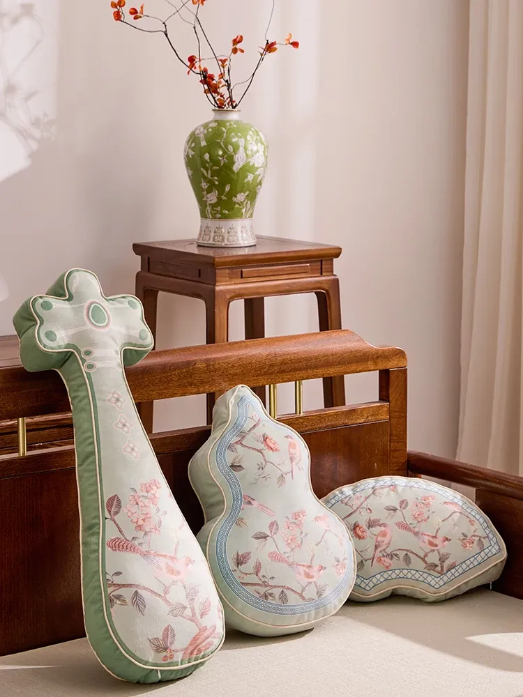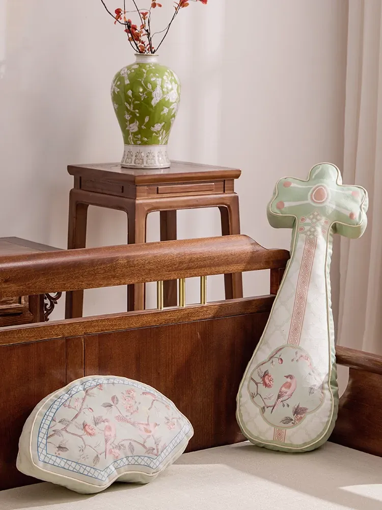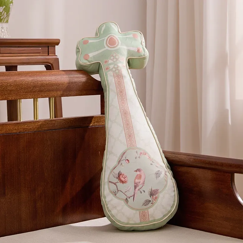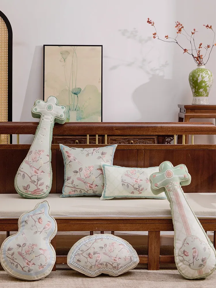 新中式2026年新作!独特デザインのリビングソファクッション、国風の雰囲気を演出する琵琶型バッククッション。クリエイティブでおしゃれな背当てクッションで、あなたの空間を格上げ!