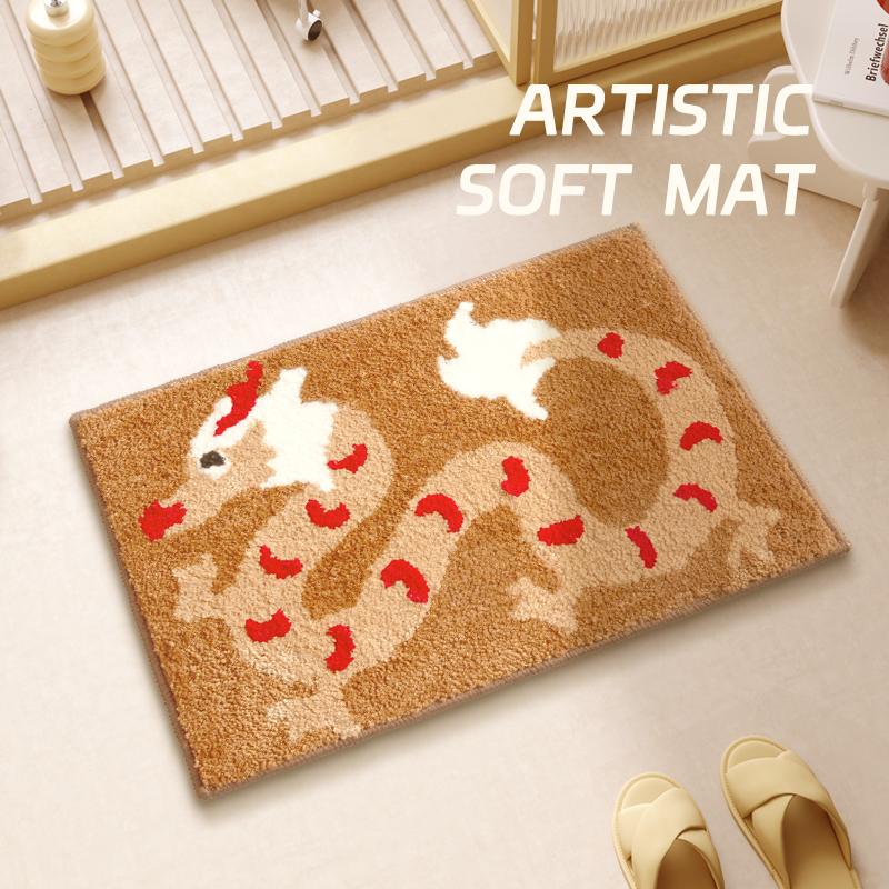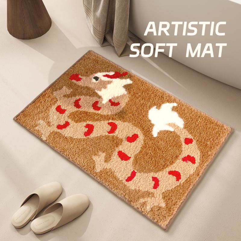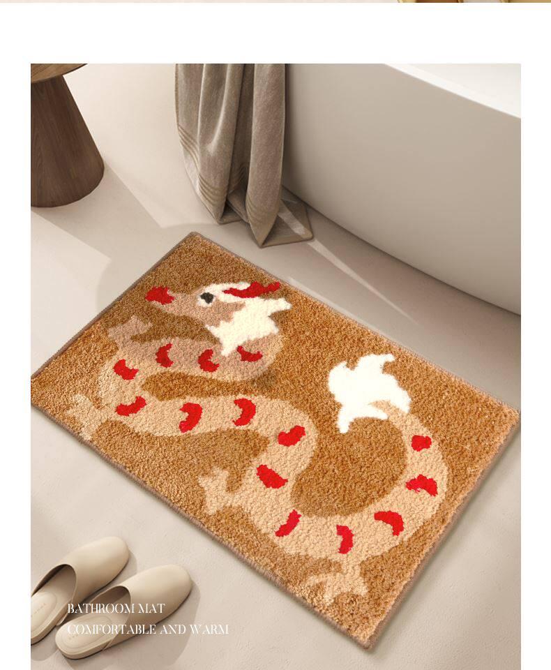 New Chinese Style Absorbent Non-Slip Bath Mat - Quick-Dry Velvet Toilet Door Mat for Home Use, Perfect for Bathroom and Restroom Safety