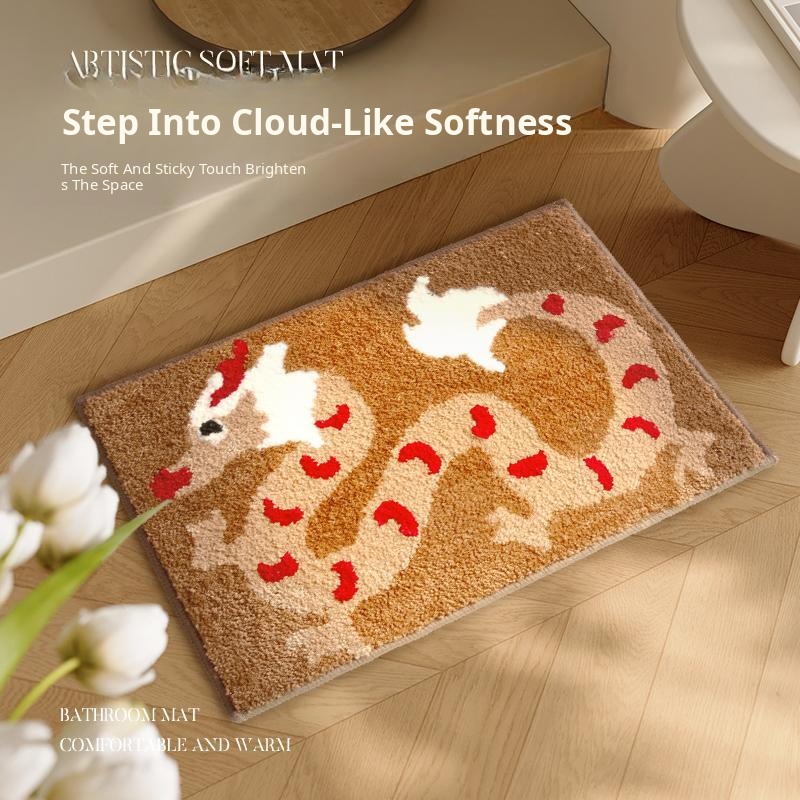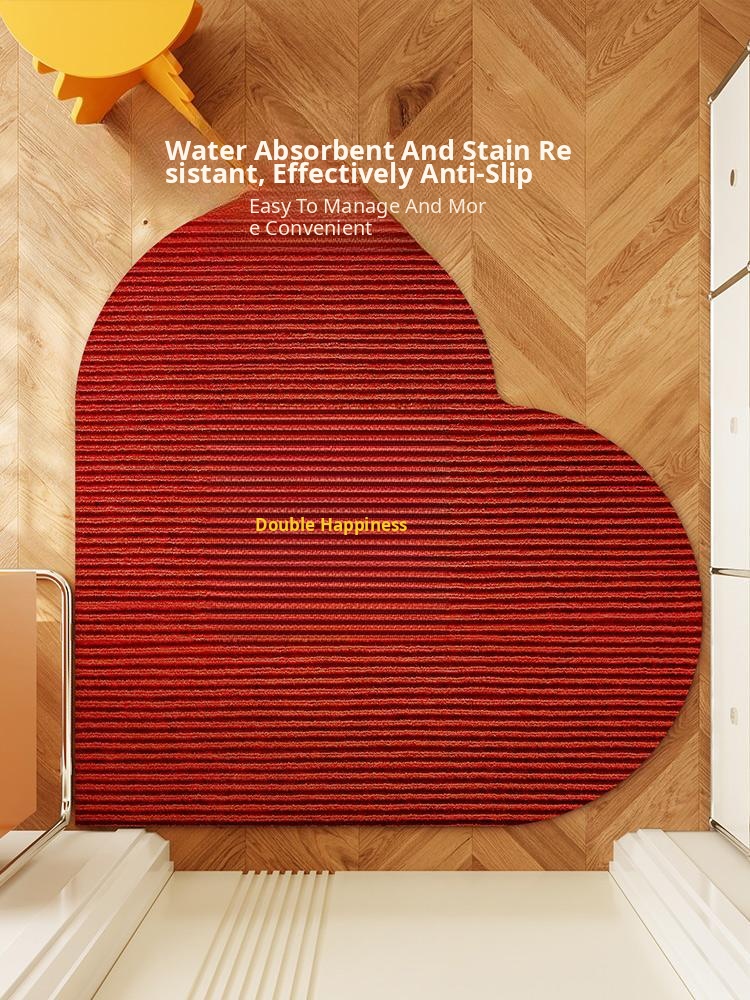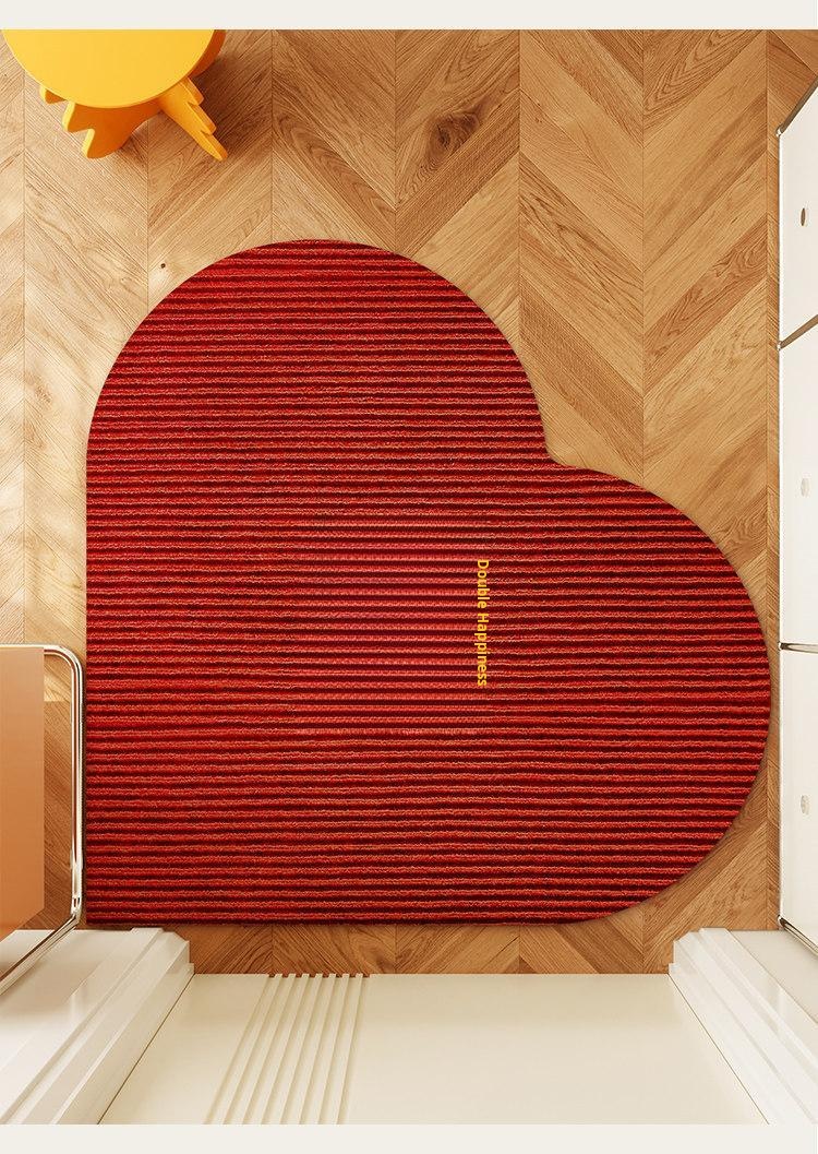 New Chinese Style Heart-Shaped Doormat for Weddings - Red Non-Slip Water-Absorbent Mat for Festive Entryway
