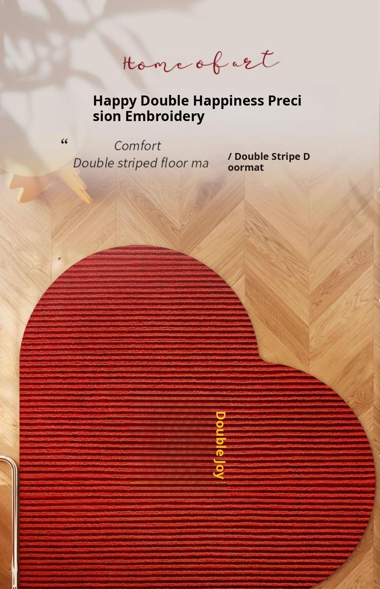 Double Happiness Double Stripe Embroidered Floor Mat-Heart Shape