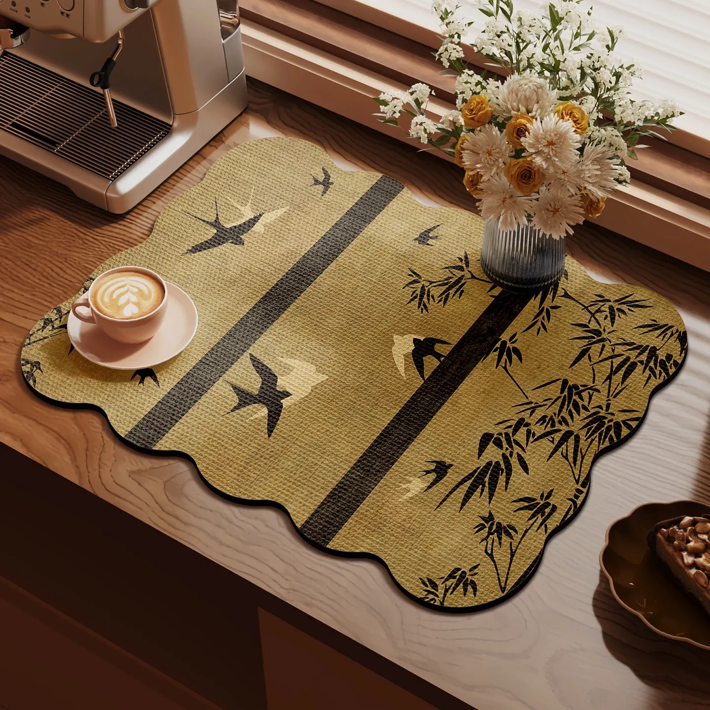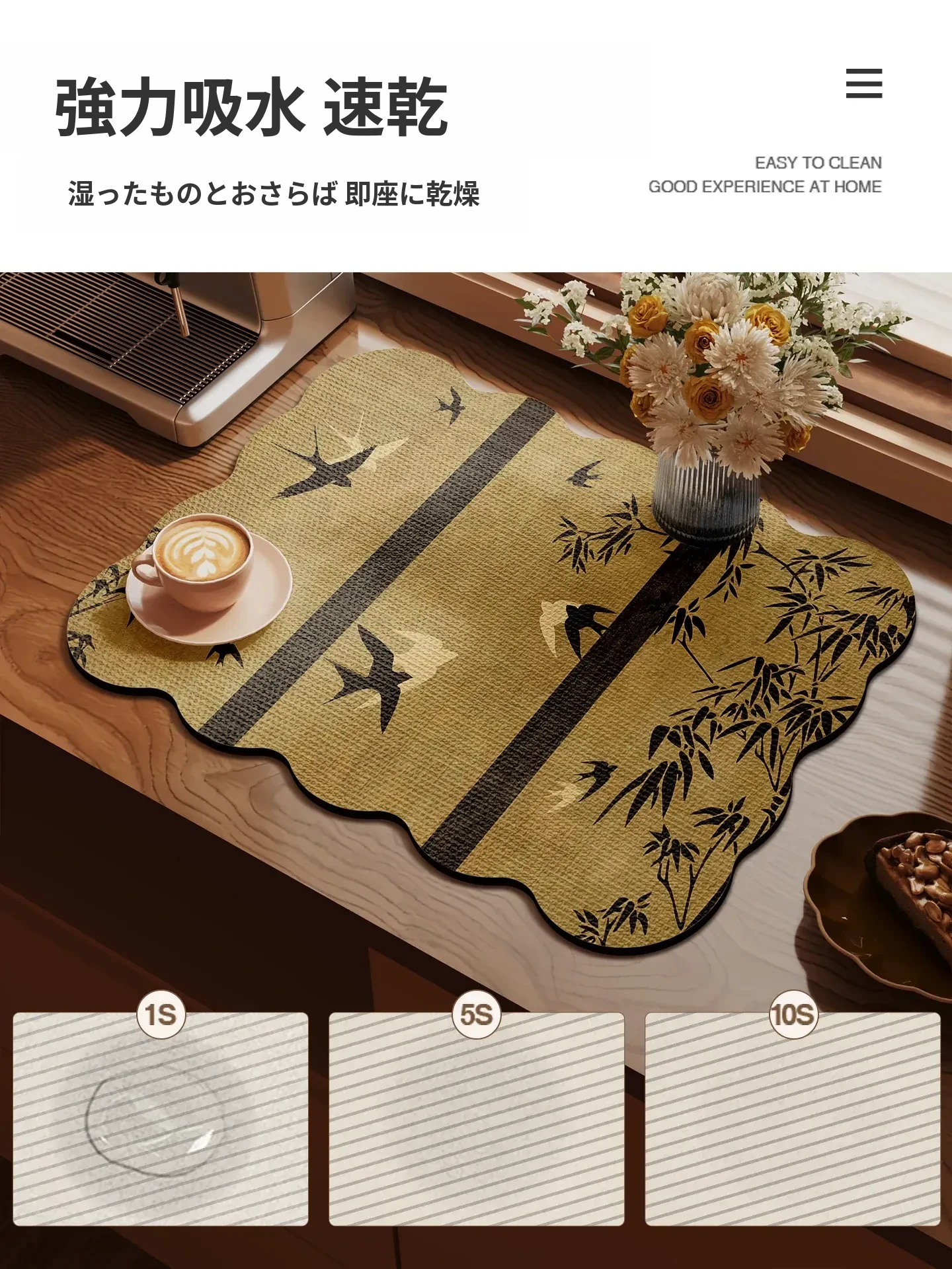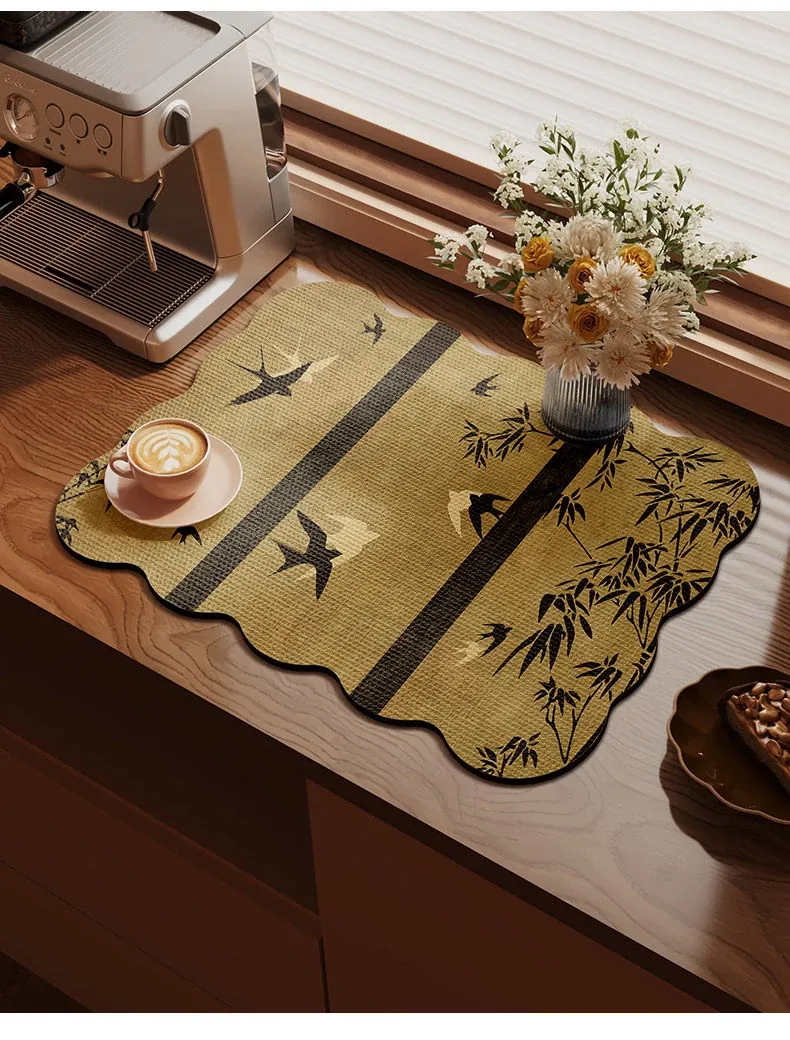 新中式キッチン用吸水マット - シリカゲル製の耐熱・防水マット、カウンタートップ保護、コーヒーメーカー専用、スタイリッシュなデザインでキッチンを美しく!