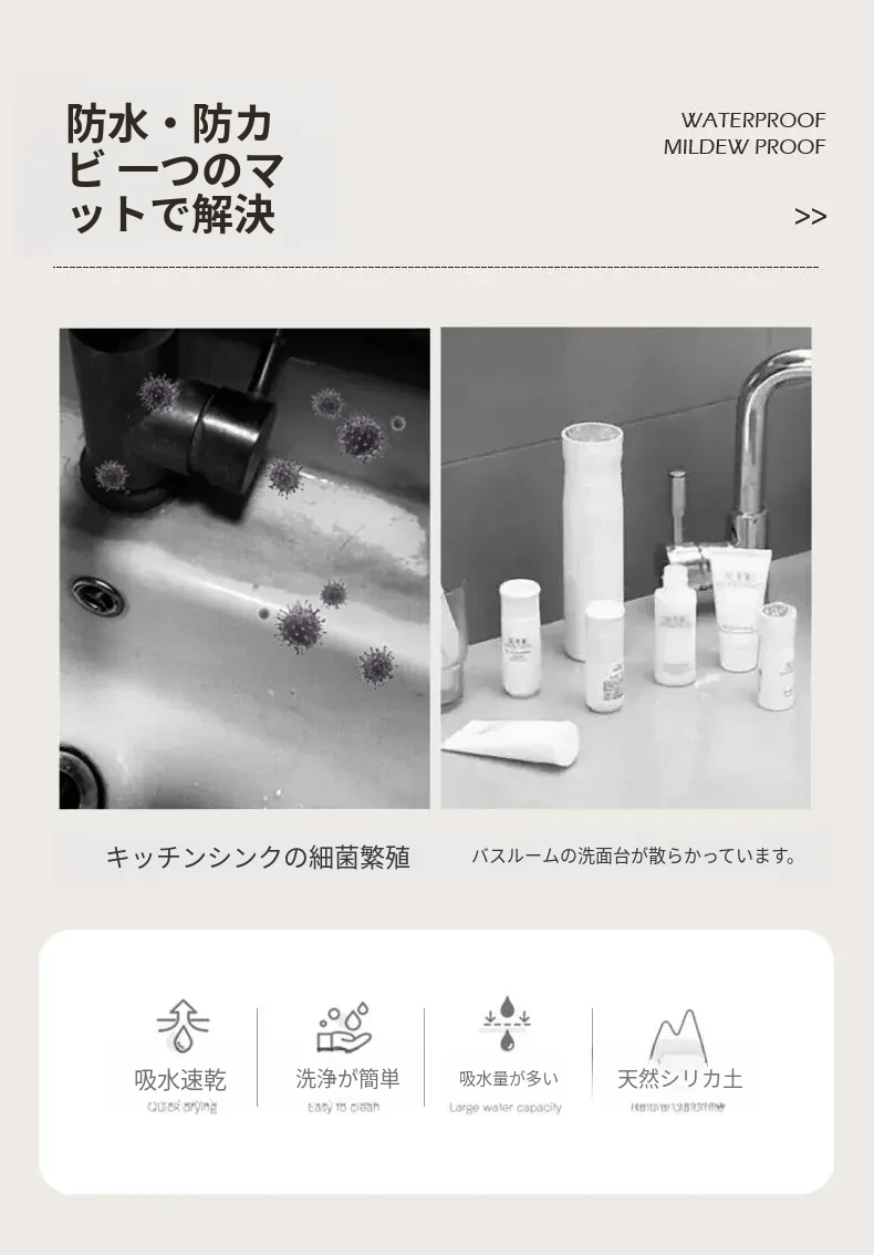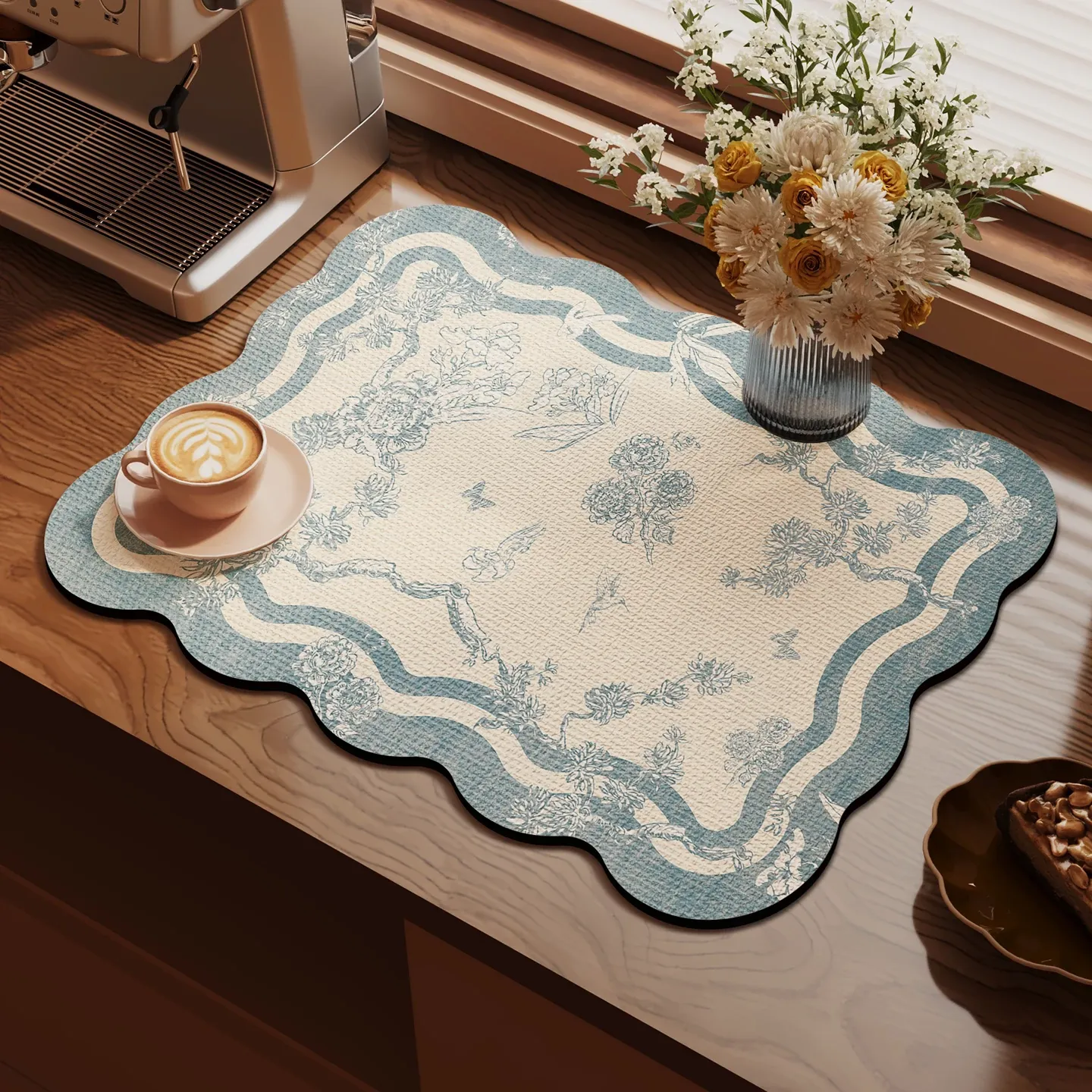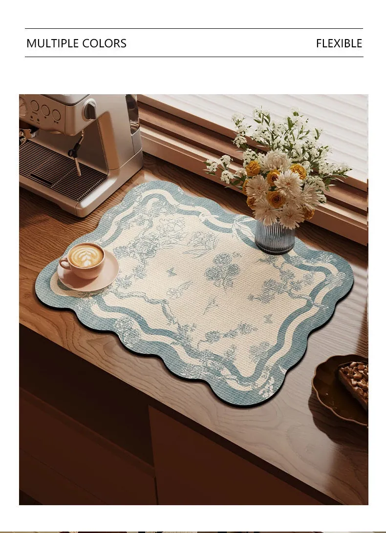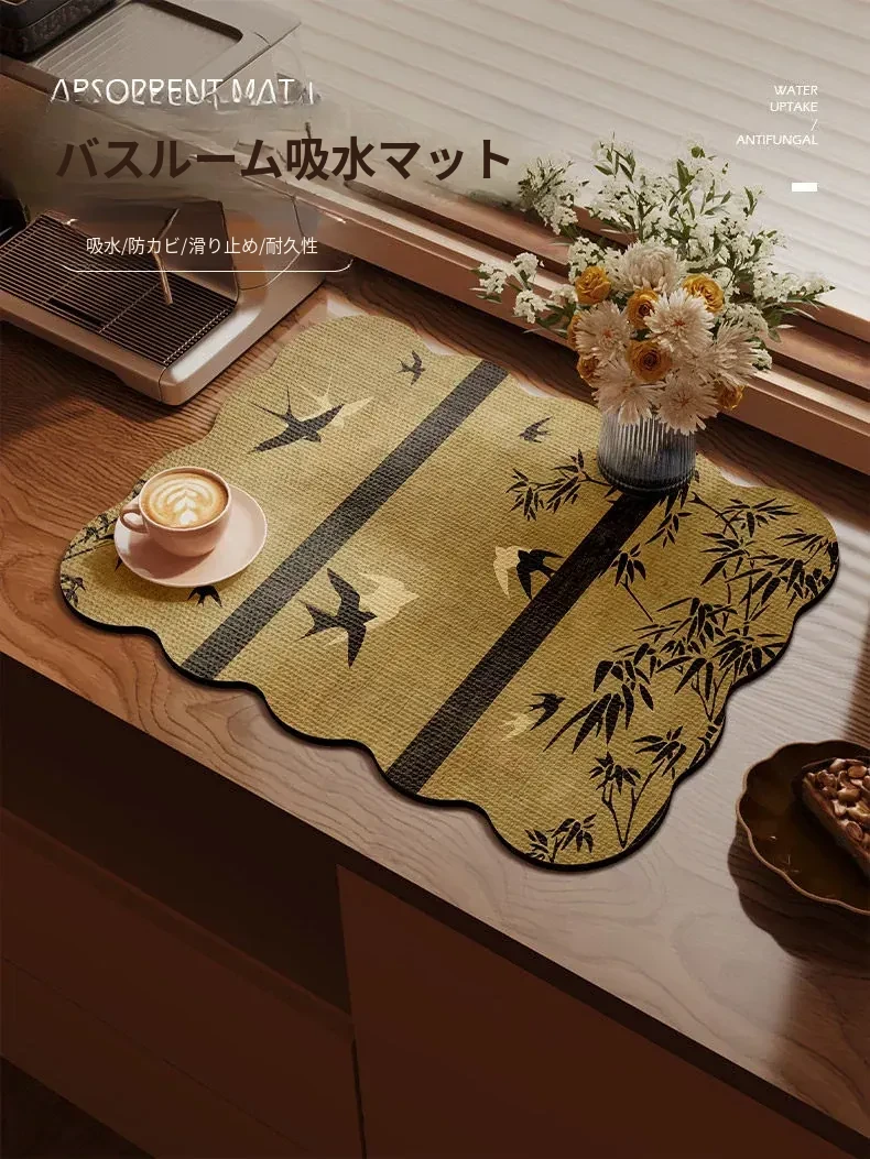 新中式キッチン用吸水マット - シリカゲル製の耐熱・防水マット、カウンタートップ保護、コーヒーメーカー専用、スタイリッシュなデザインでキッチンを美しく!