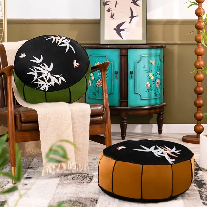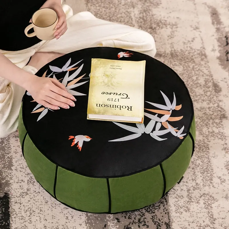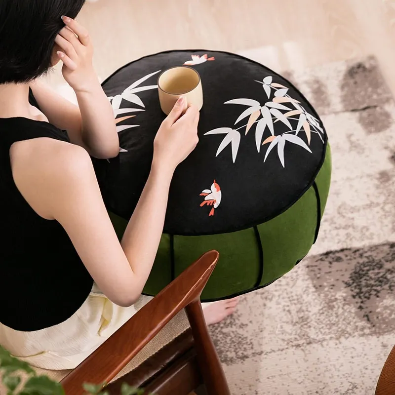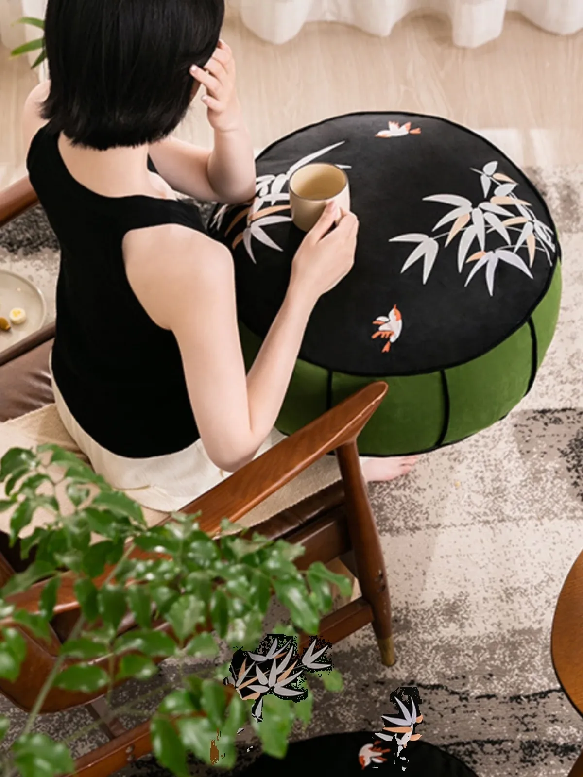 新中式デザインの丸型クッション!洗える座布団で、リビングやバルコニーにぴったり。疲れた体を癒すラウンジ用のタタミクッション、小さなスツールとしても大活躍!