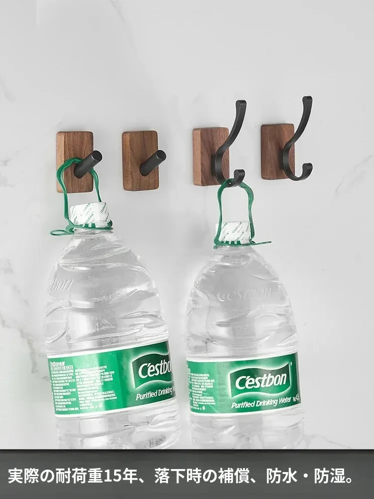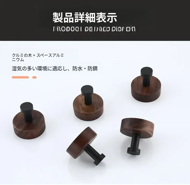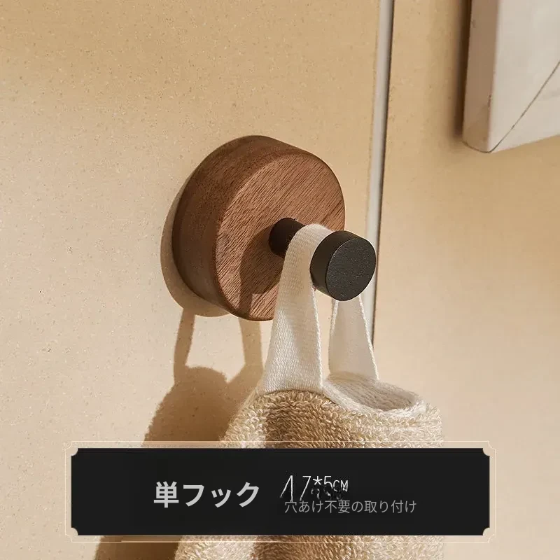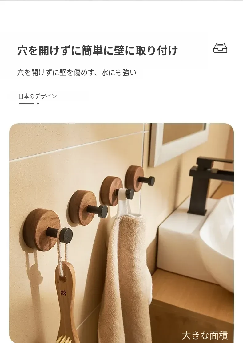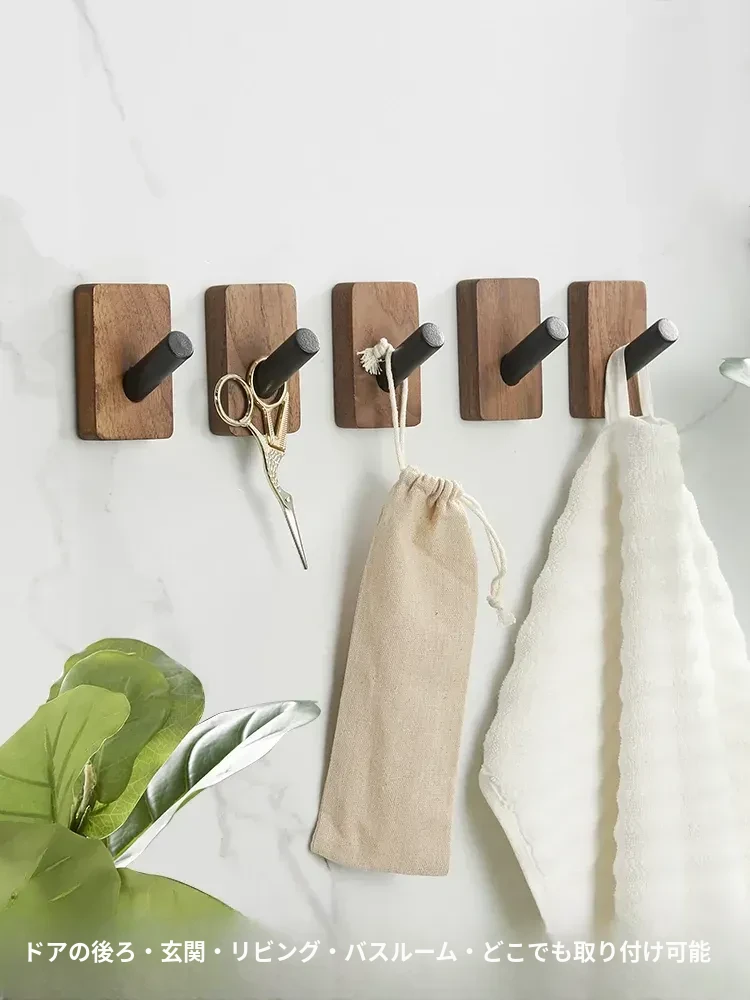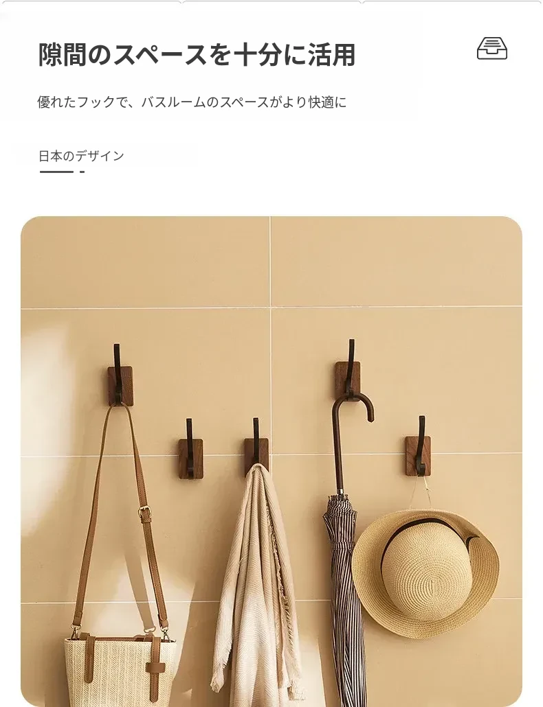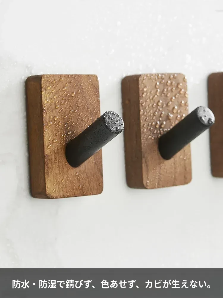 バスルームドア裏フック - 穴無し壁掛け衣類ハンガー!おしゃれで実用的なウッド製コートフックで、衣類や帽子をスッキリ収納。お部屋をスッキリ整頓して、毎日の生活をもっと快適に!