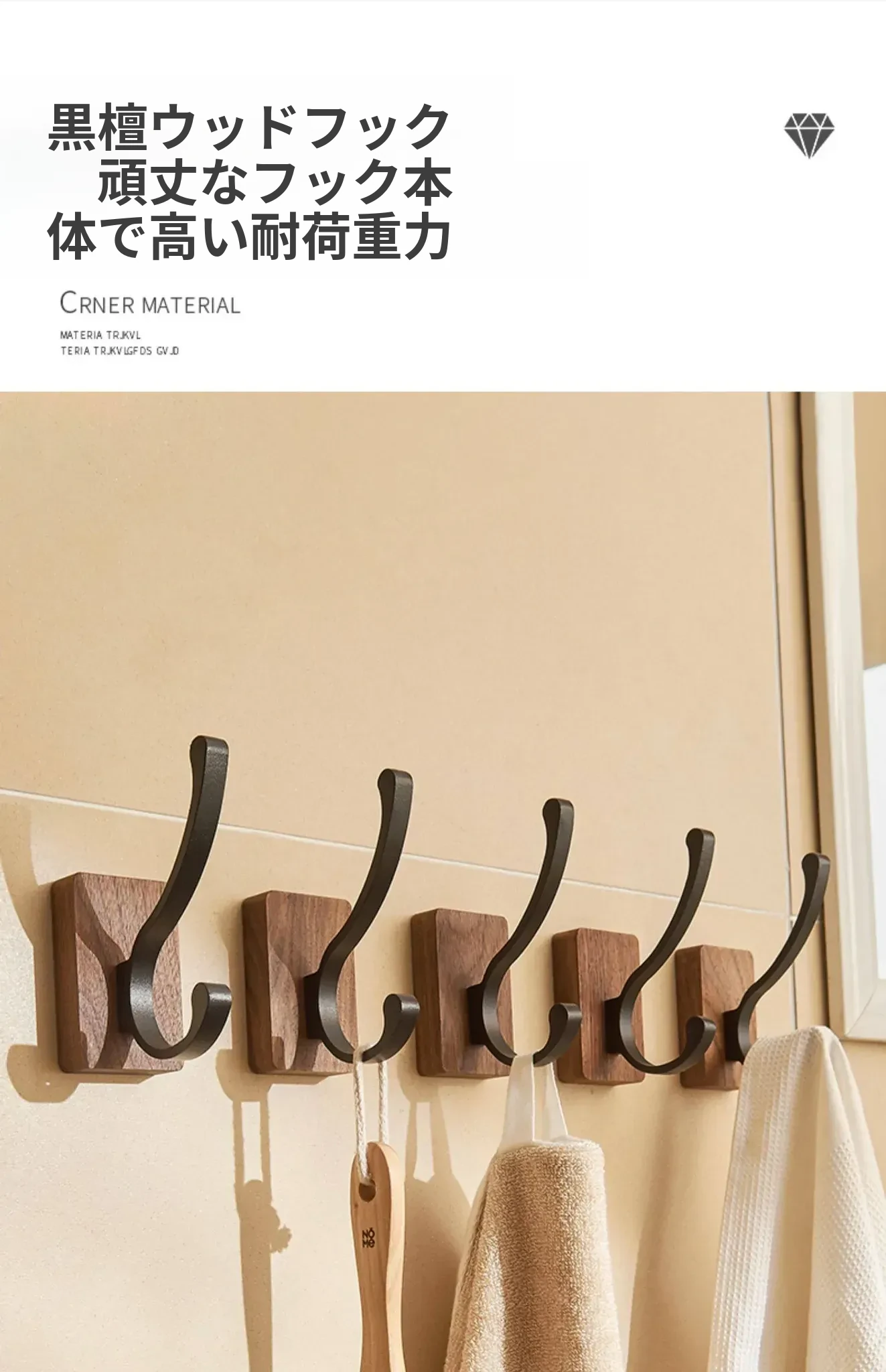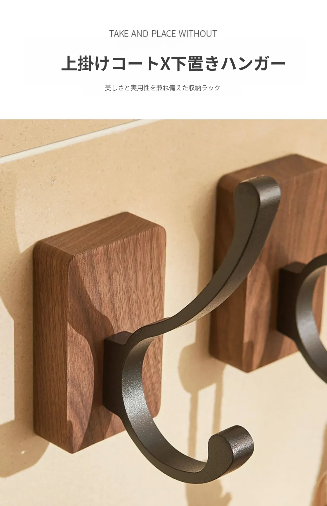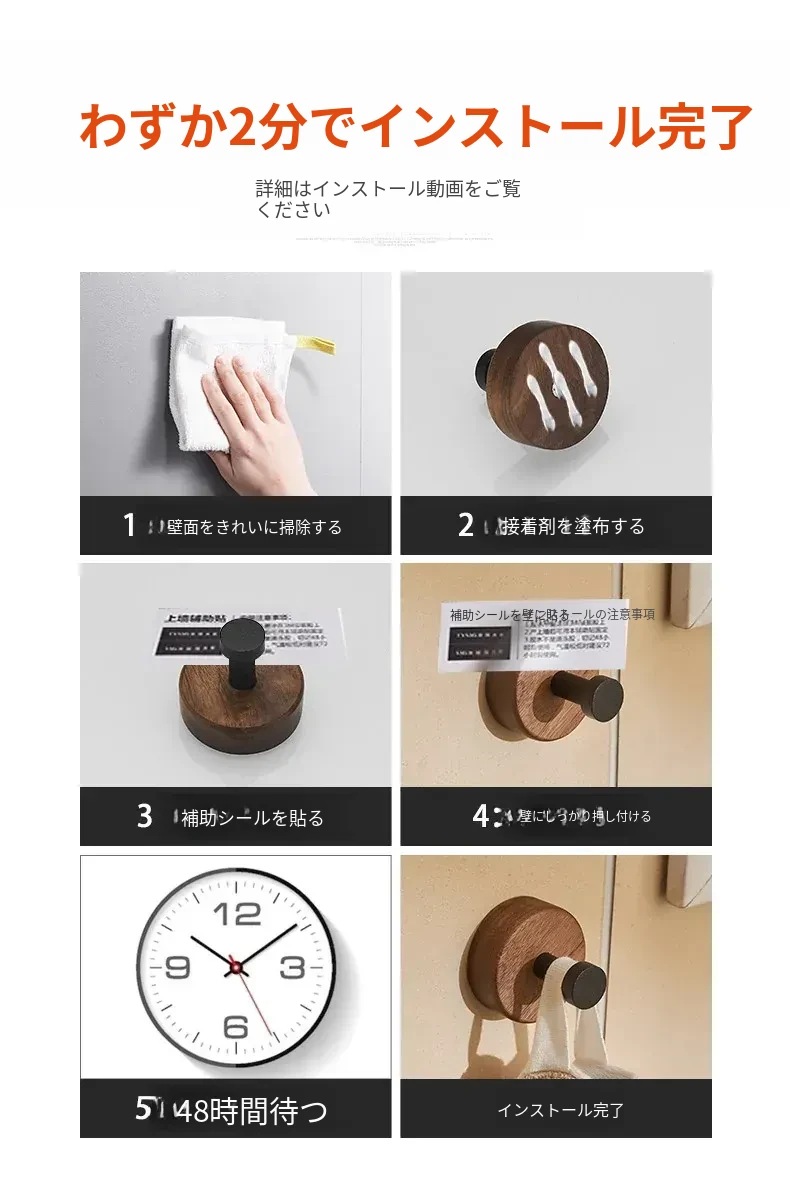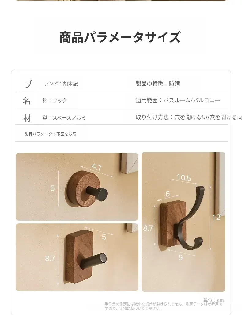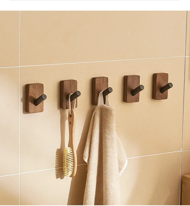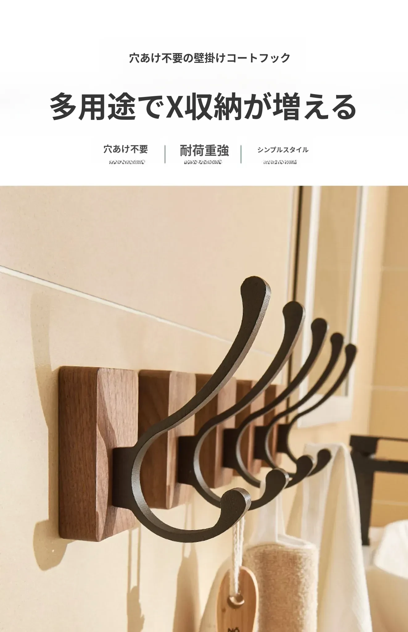 バスルームドア裏フック - 穴無し壁掛け衣類ハンガー!おしゃれで実用的なウッド製コートフックで、衣類や帽子をスッキリ収納。お部屋をスッキリ整頓して、毎日の生活をもっと快適に!