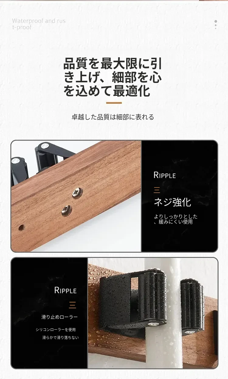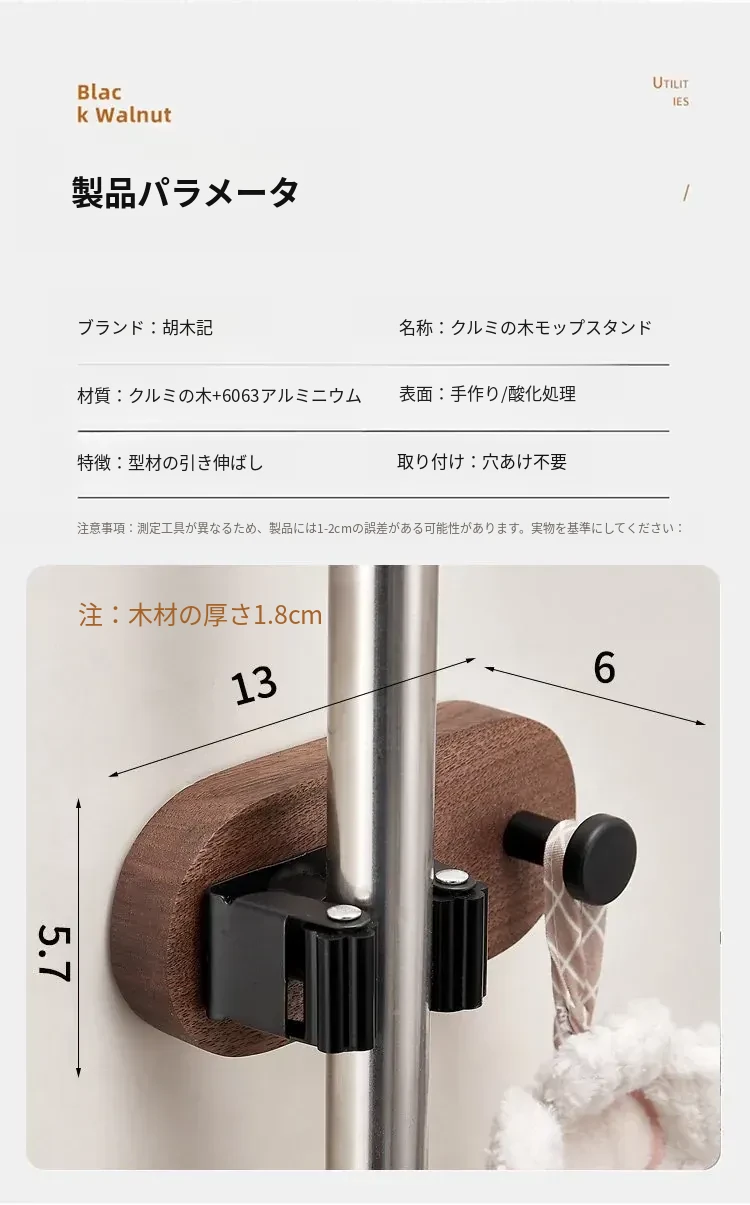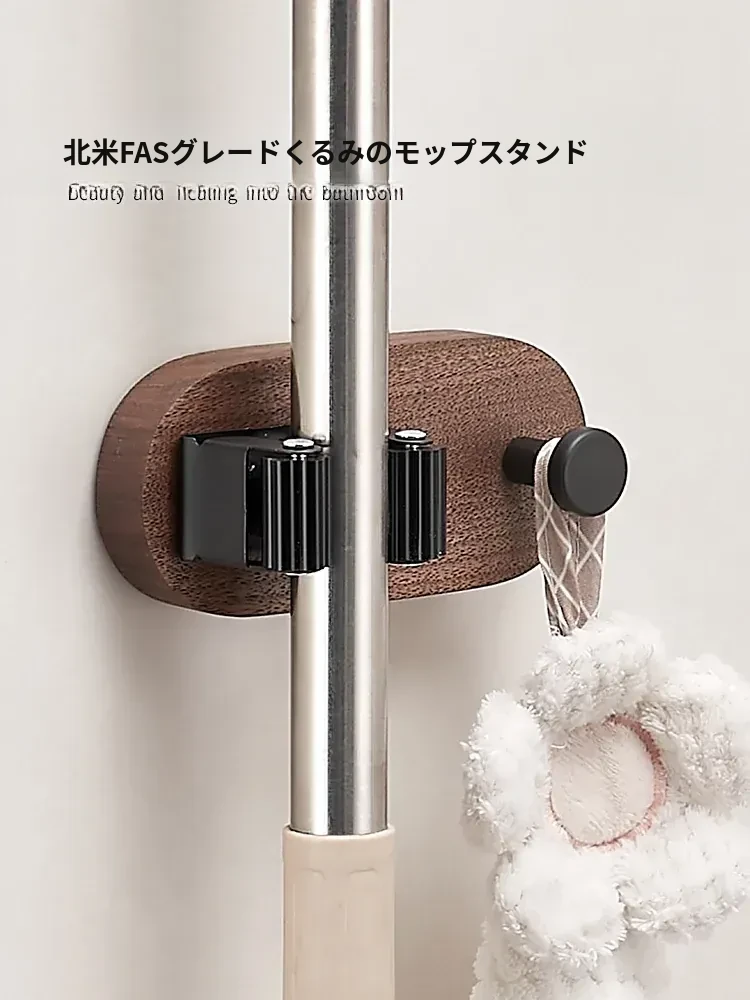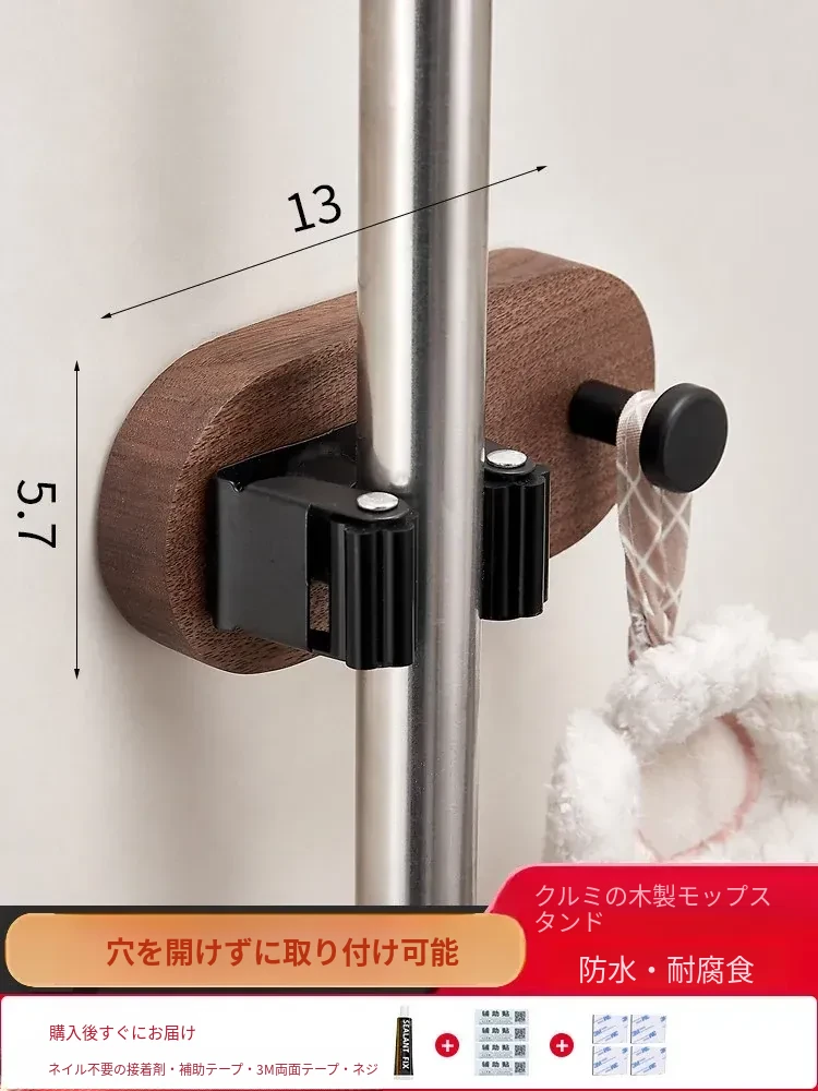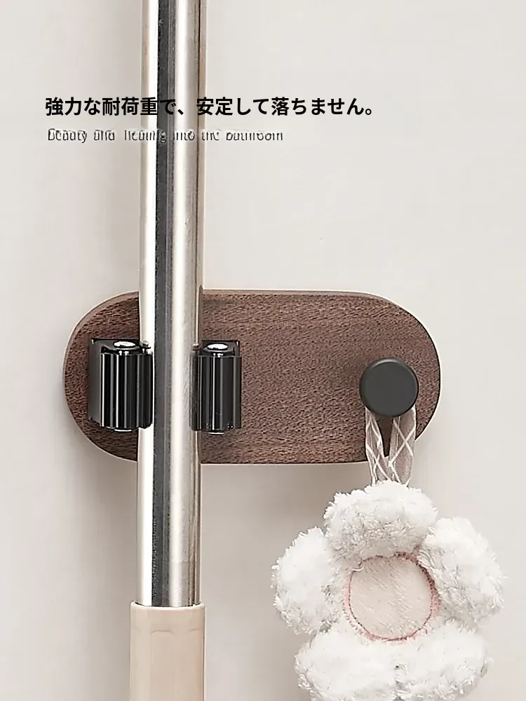 トイレやキッチンに最適!穴なしで簡単取り付け、強力粘着のモップハンガー!お掃除用具をスッキリ収納できる便利なドラッグフック。