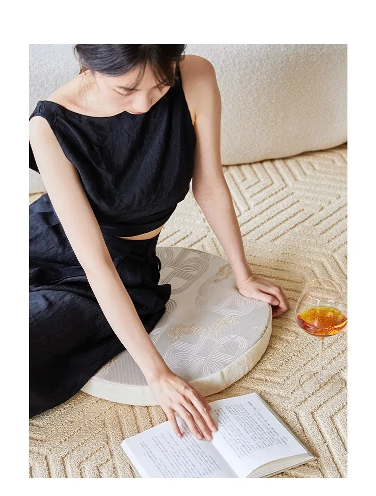 北欧風シンプルラグジュアリー椅子クッション|オフィスにも最適な麻素材の円形布製座布団|四季折々の快適さを提供する万能マット
