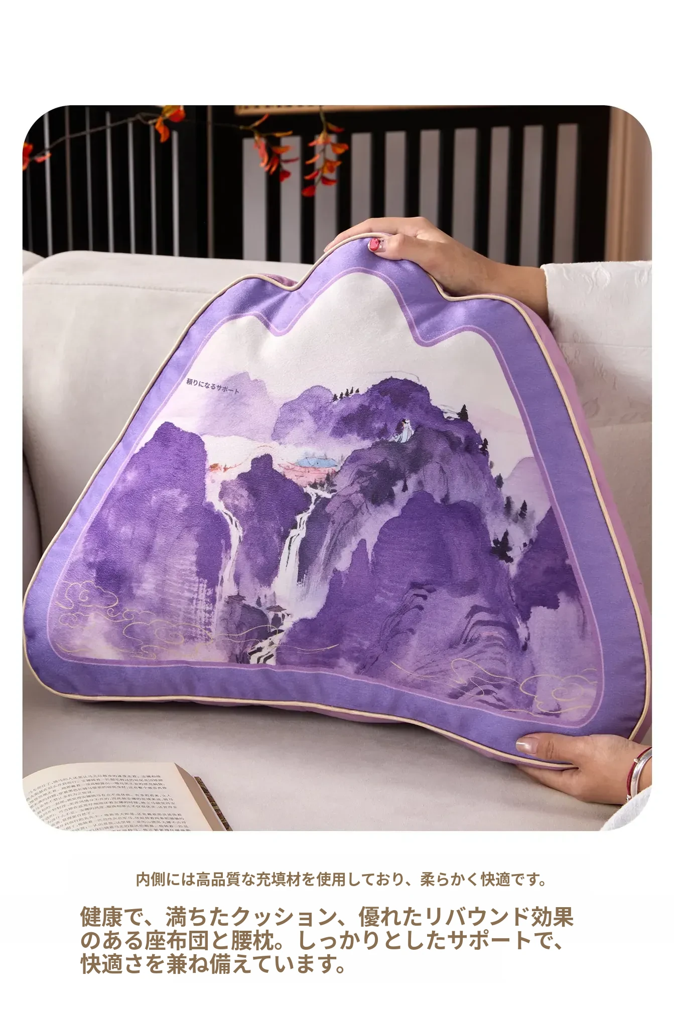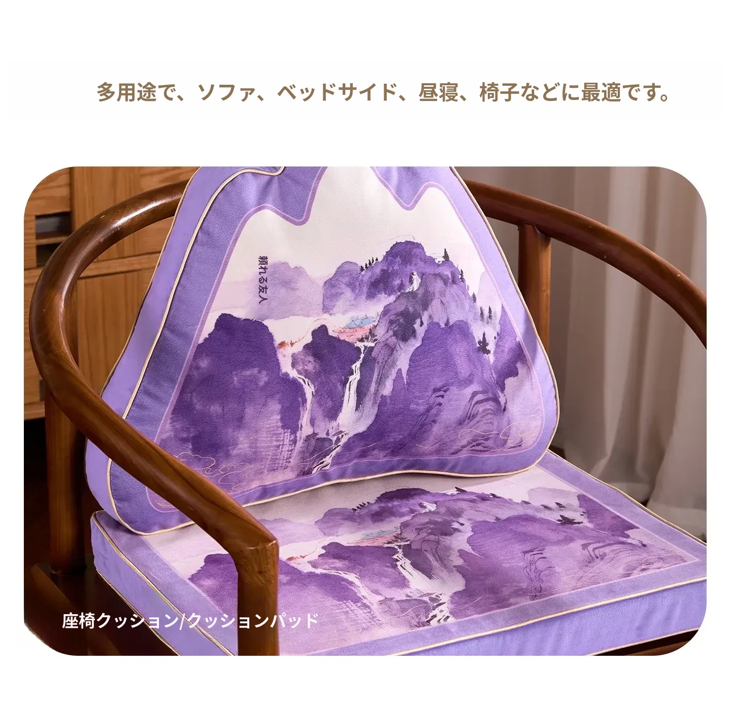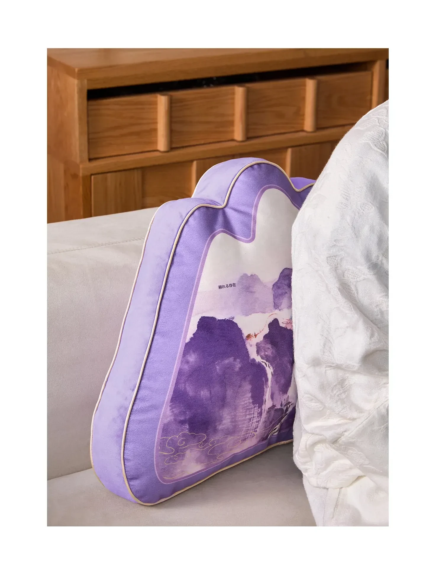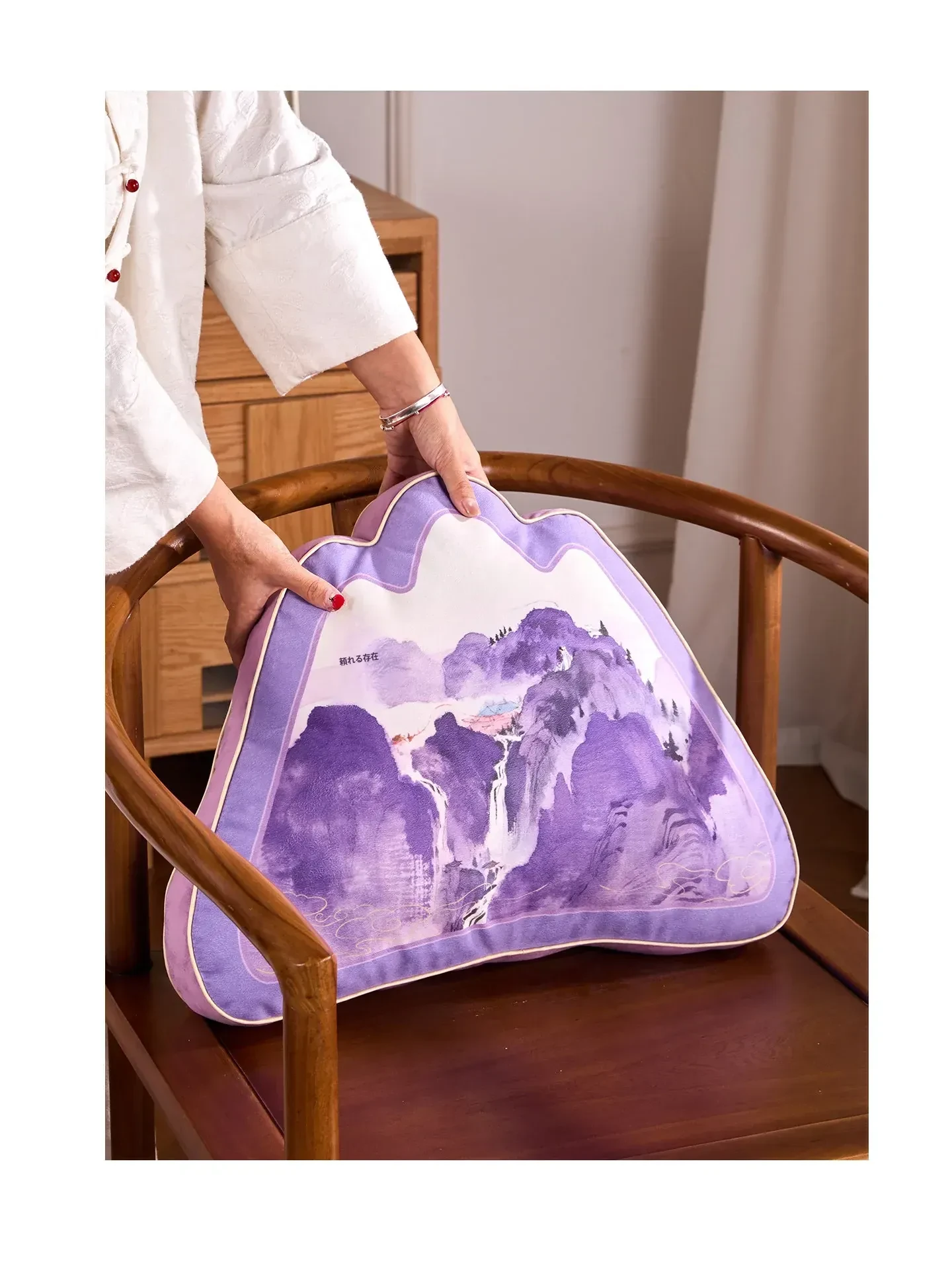 中華風デザインの紫色異形クッション|オフィスやソファに最適な背もたれクッション|腰をしっかりサポートする快適な抱き枕!