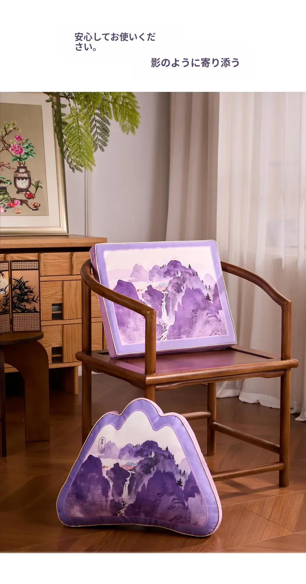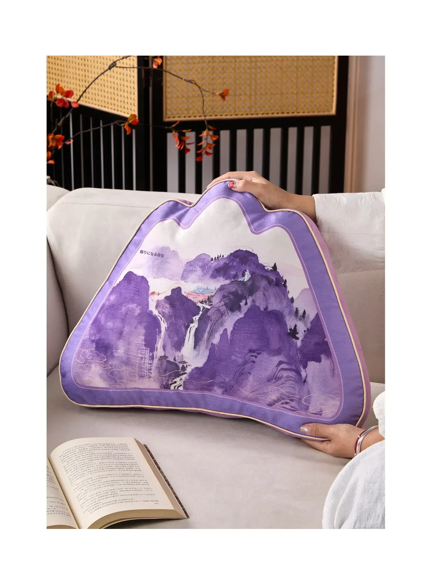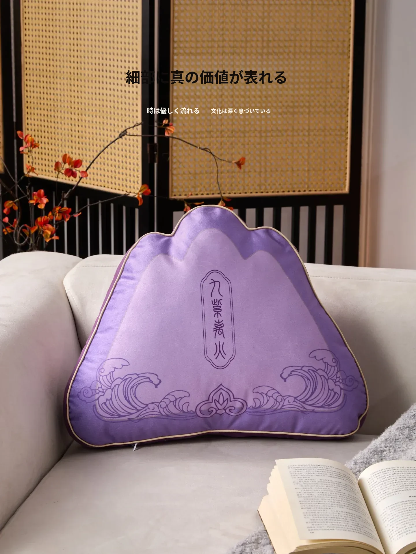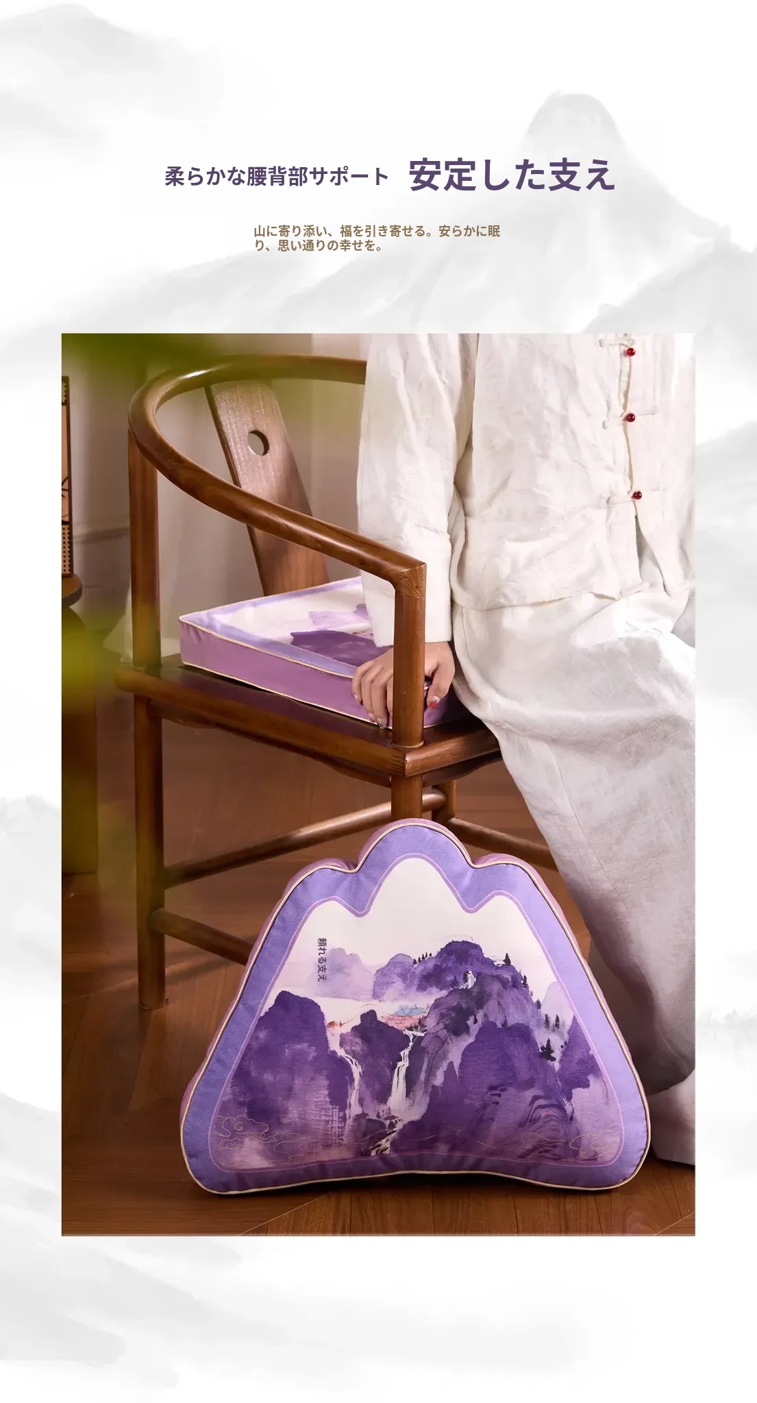 中華風デザインの紫色異形クッション|オフィスやソファに最適な背もたれクッション|腰をしっかりサポートする快適な抱き枕!