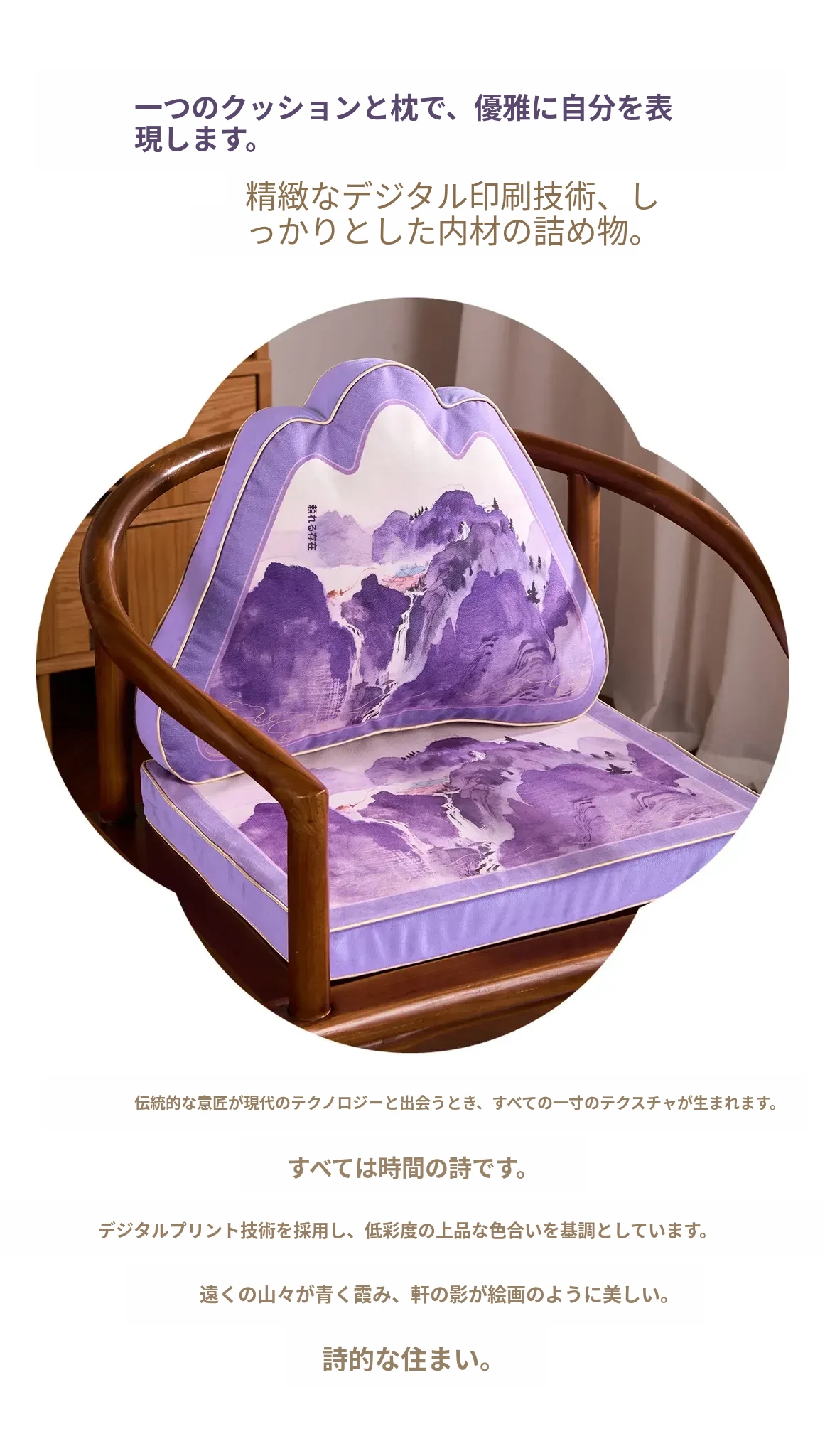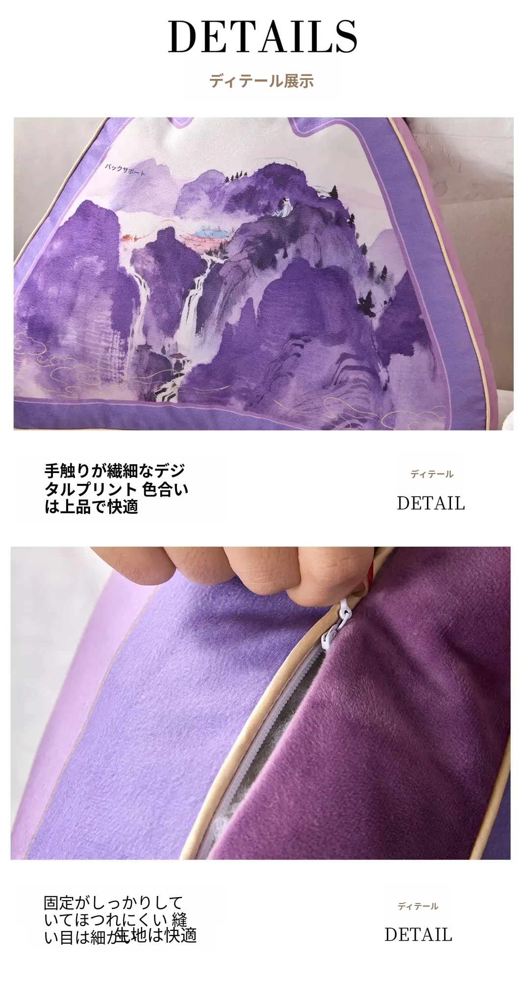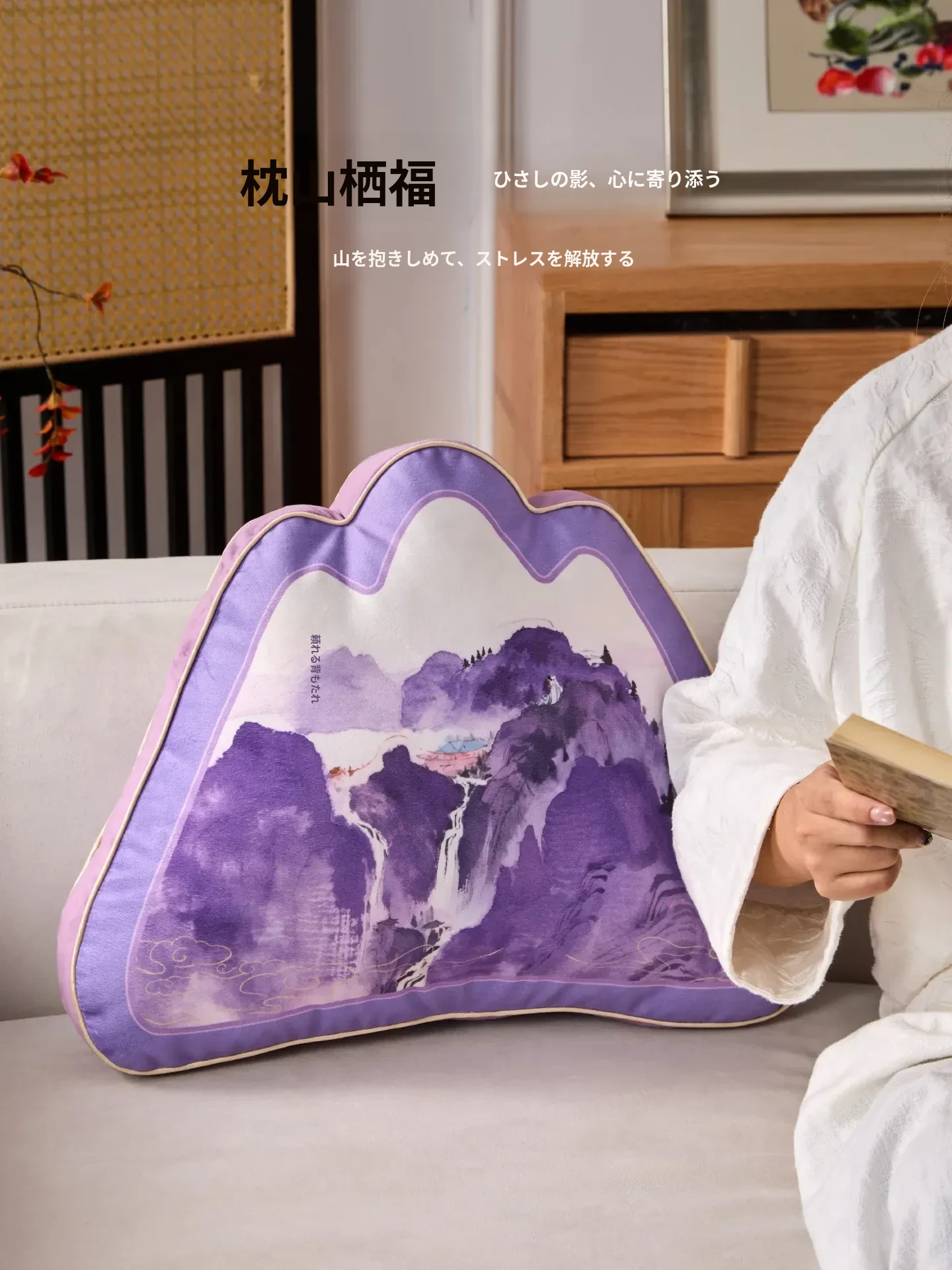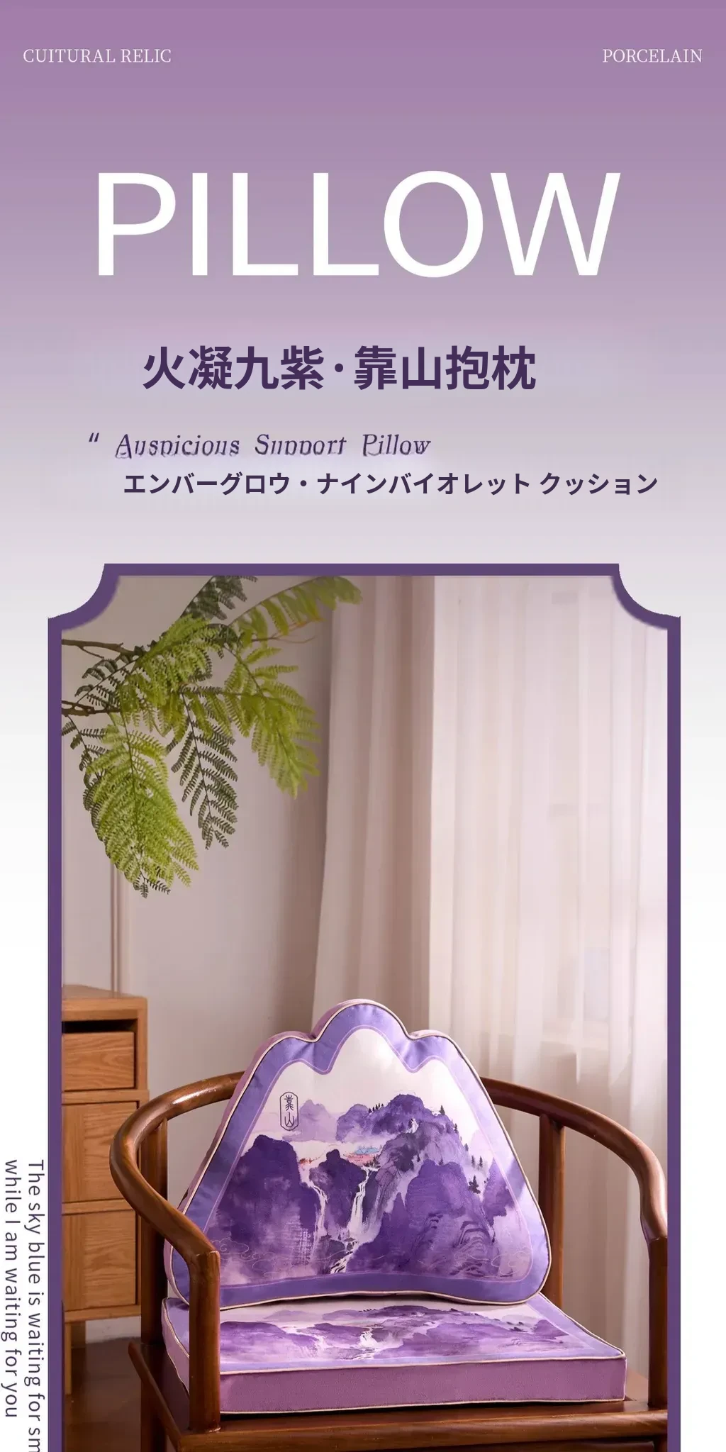 中華風デザインの紫色異形クッション|オフィスやソファに最適な背もたれクッション|腰をしっかりサポートする快適な抱き枕!