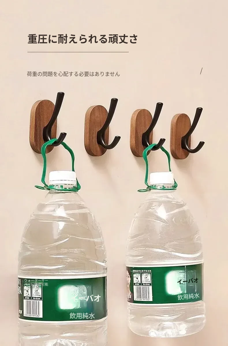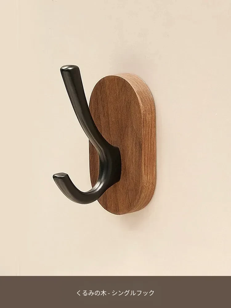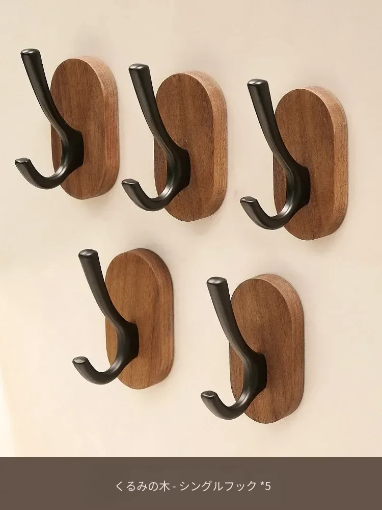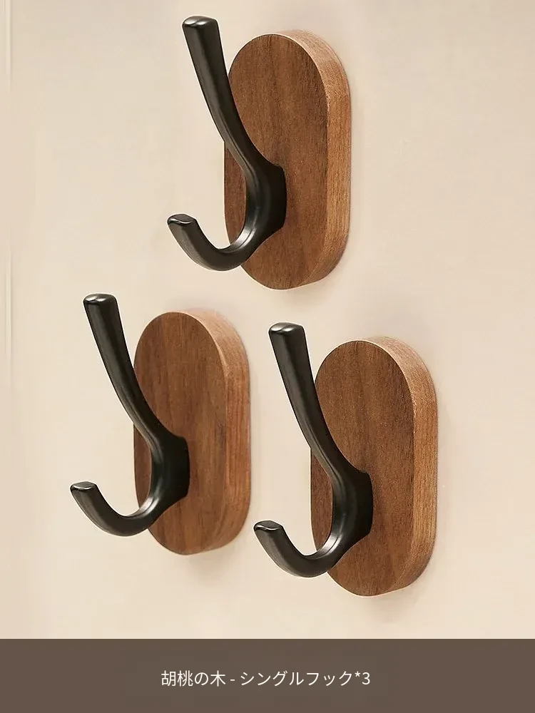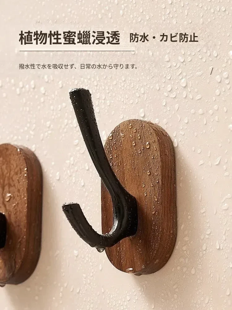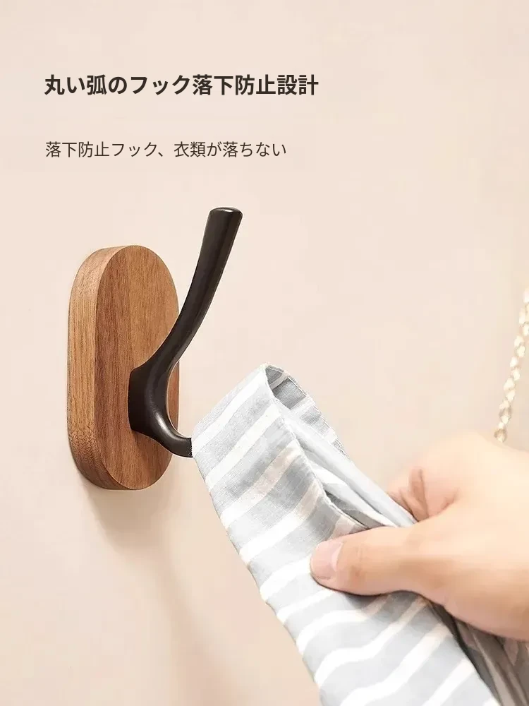 ウォールマウントフック - 強力な接着剤で取り付け簡単!クルミの木製コートフック、穴あけ不要でバスルームや玄関に最適。衣類をしっかりと支え、美しいデザインでお部屋をおしゃれに演出。