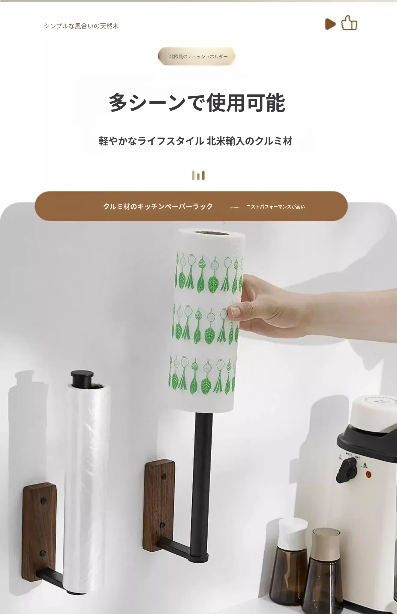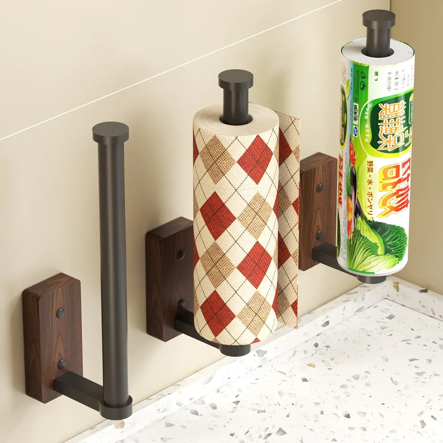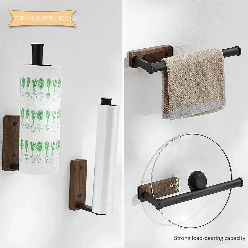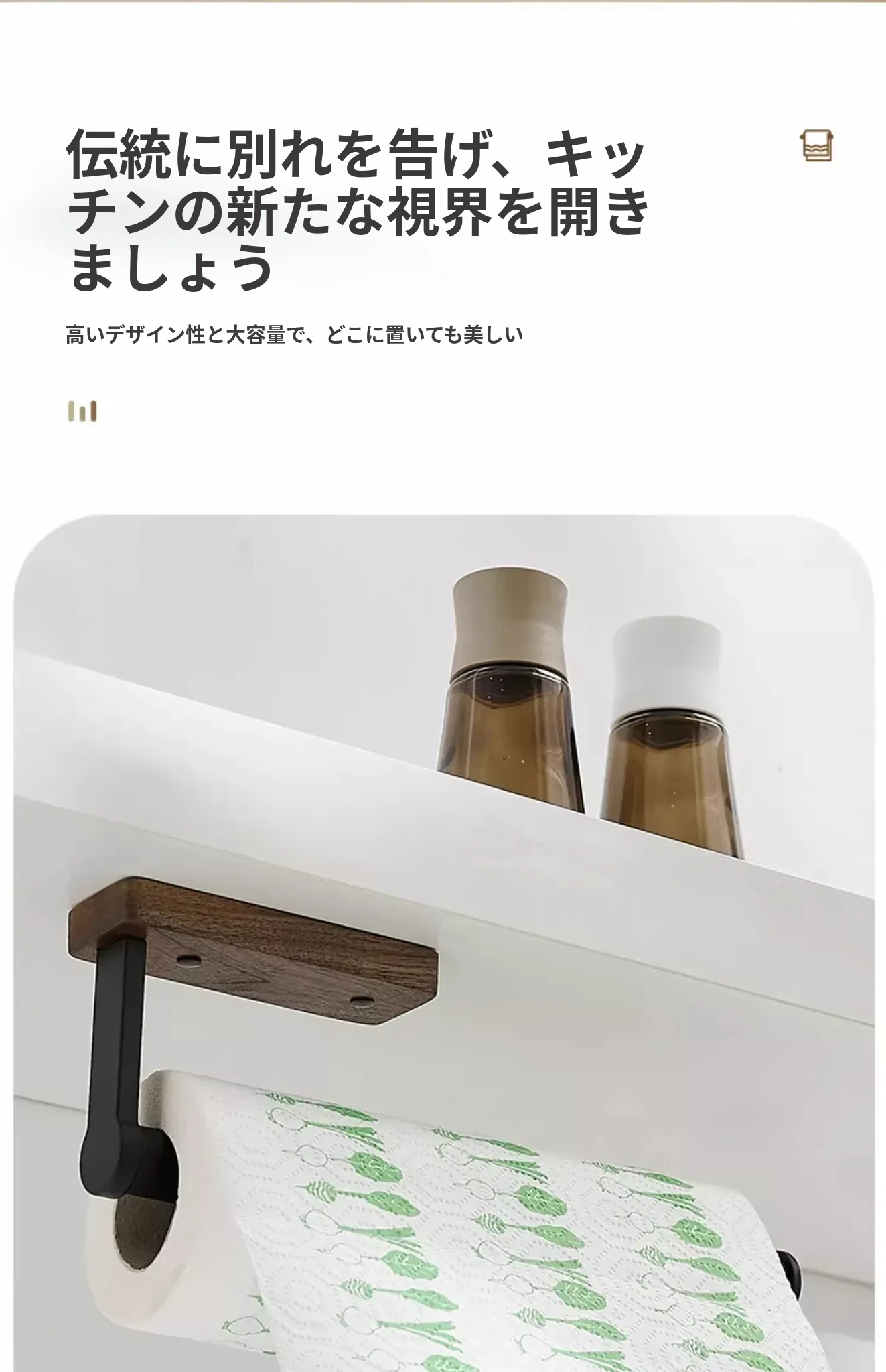 キッチンペーパー専用ホルダー|ラップや袋も収納可能!おしゃれなナチュラルウッドデザインで、穴あけ不要の簡単取り付け。便利でスタイリッシュな収納を実現!