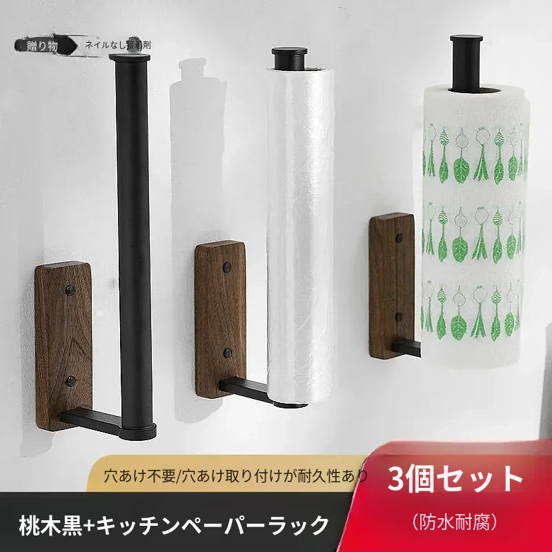 黒胡桃木●キッチンペーパーラック【3個セット】