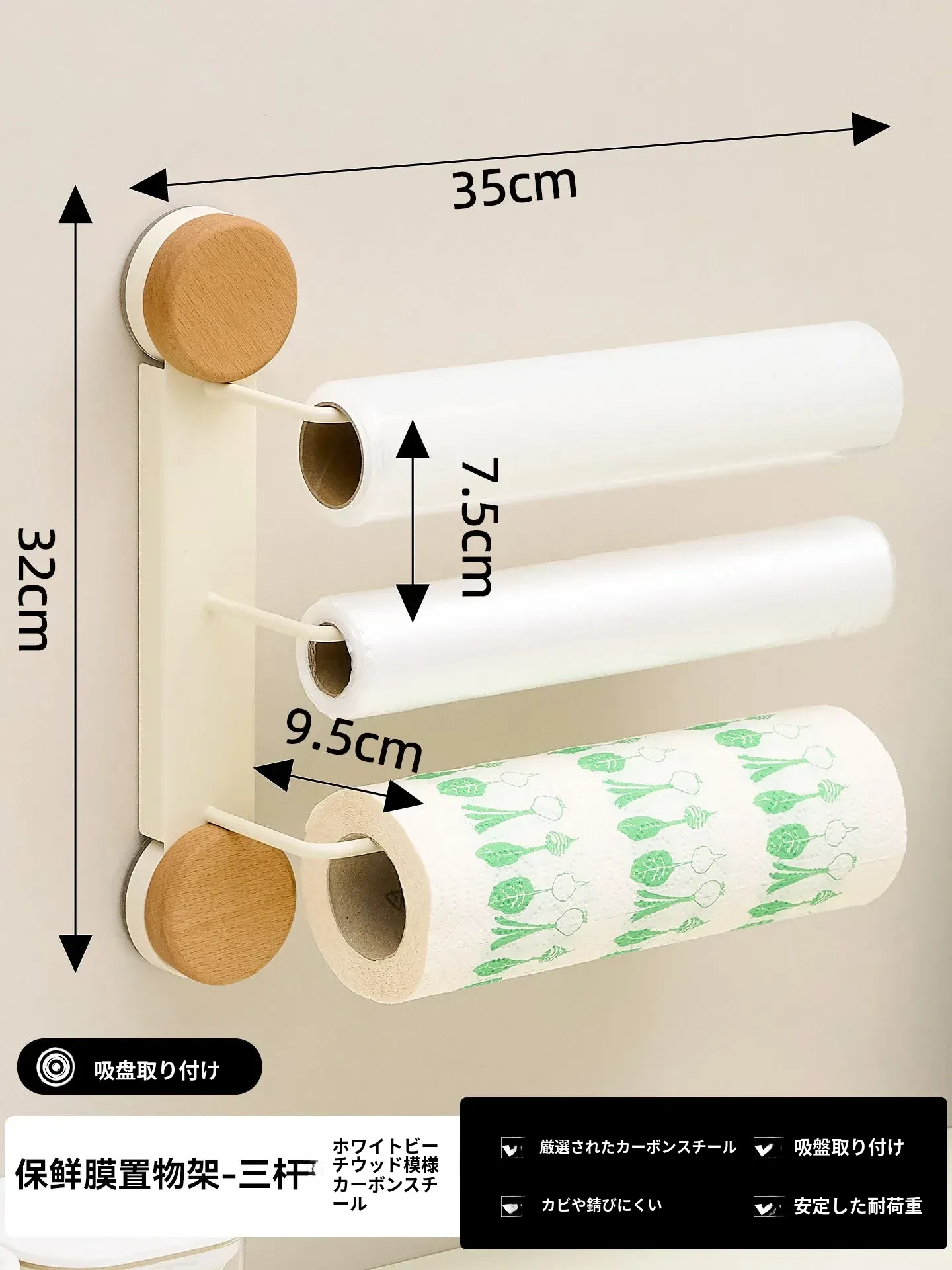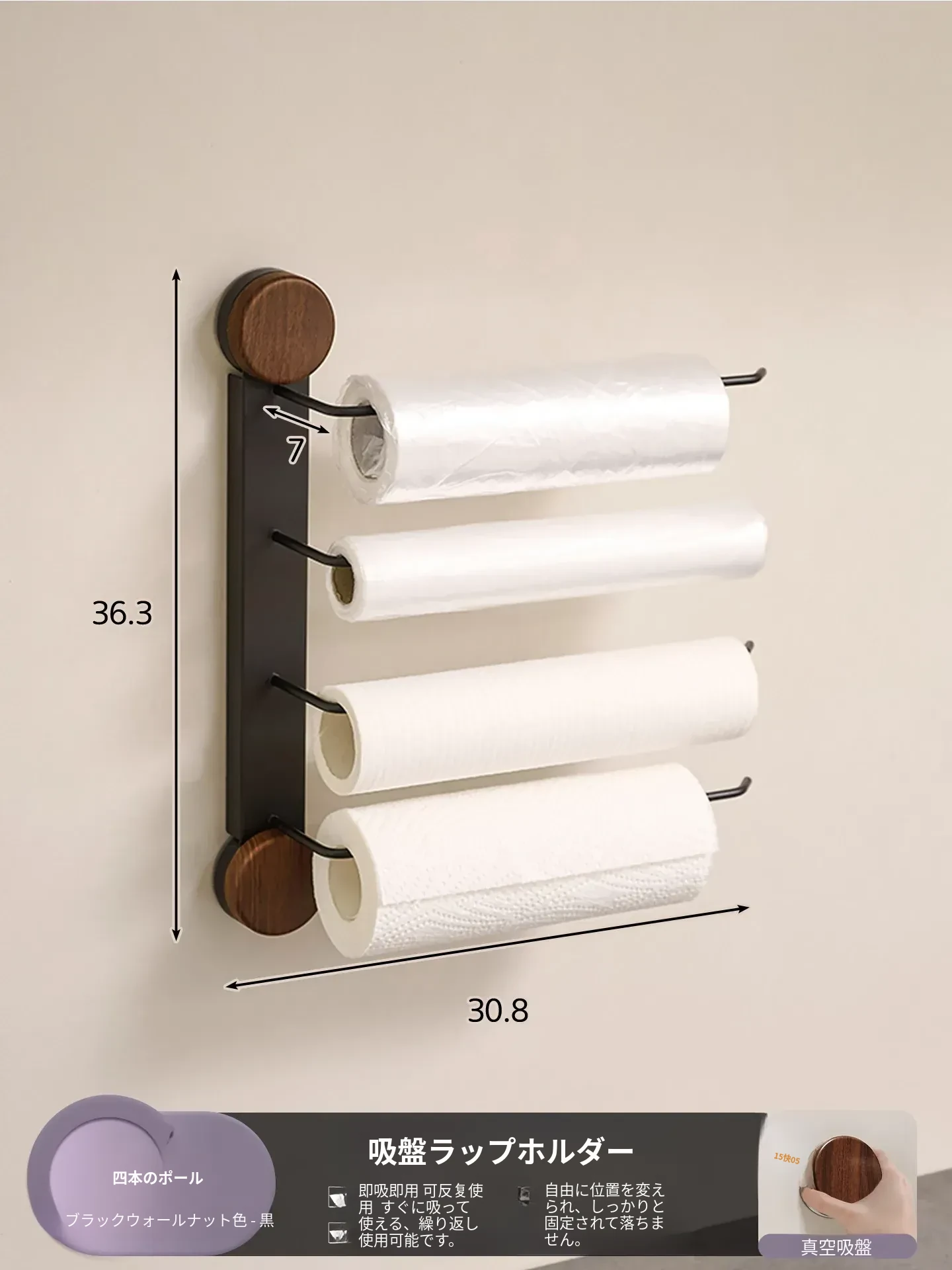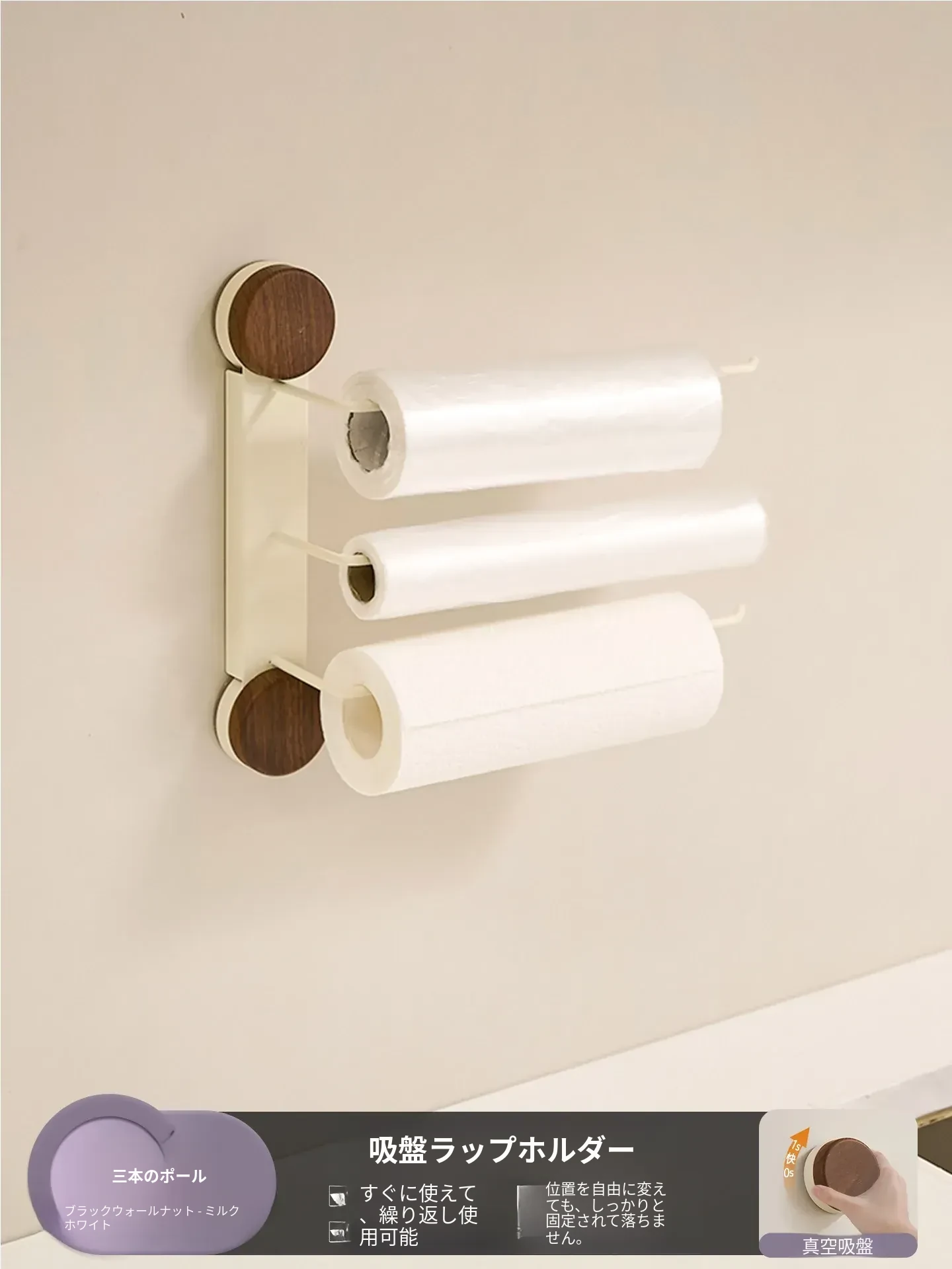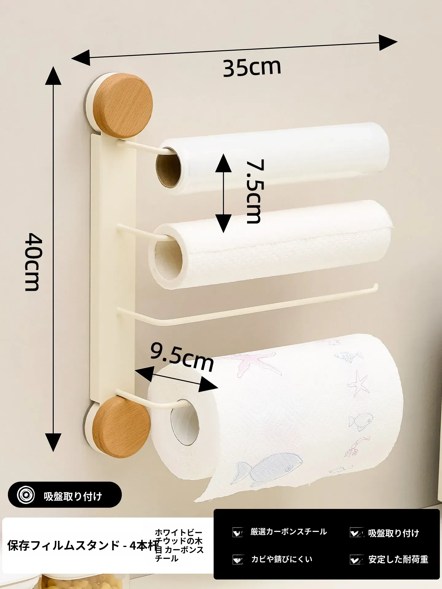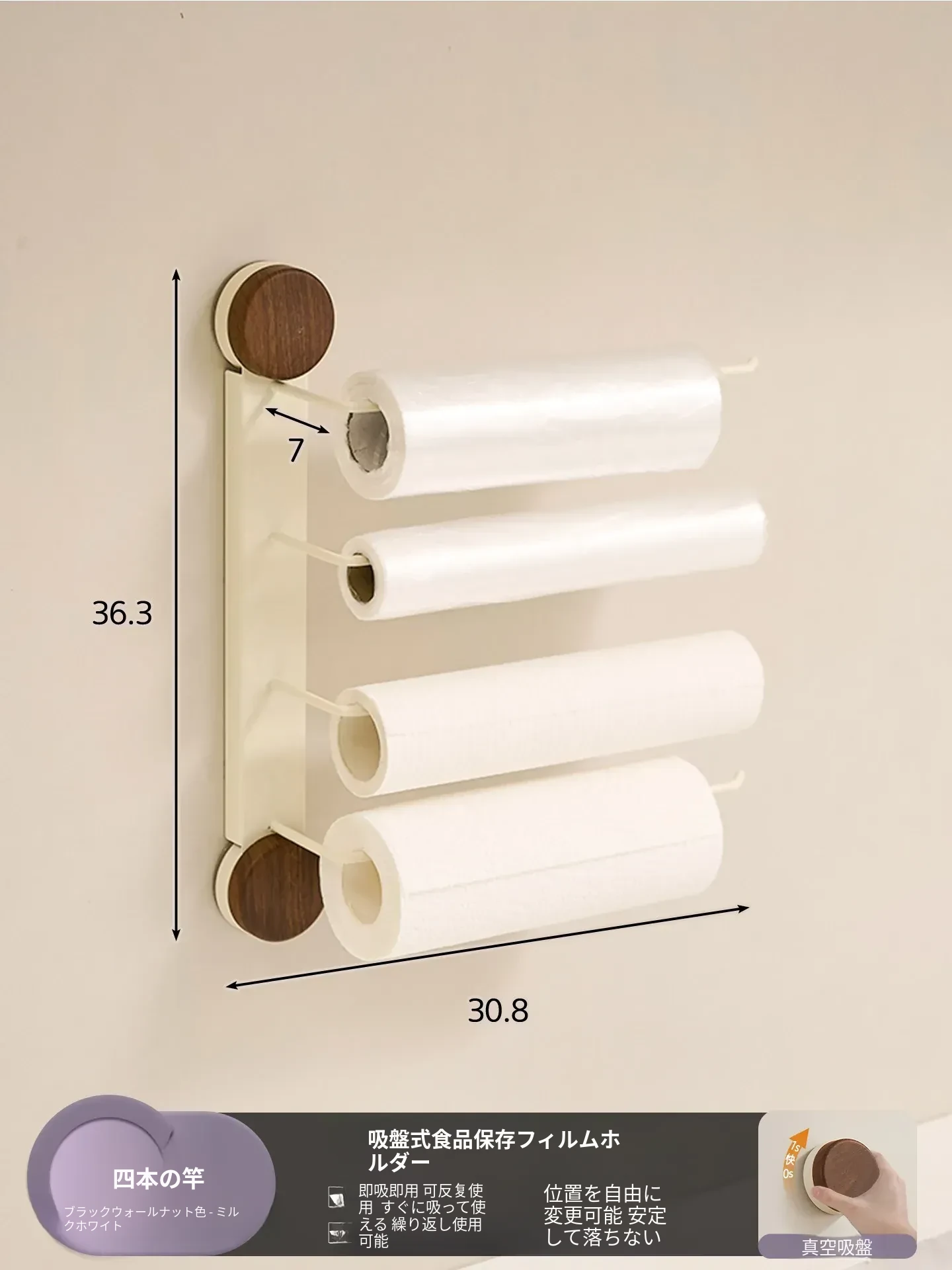 吸盤式キッチンペーパーラック - 簡単取り付け、穴あけ不要!収納力抜群の多機能ハンガーで、ラップや布巾もスッキリ整理。美しいキッチンを実現する壁掛け収納!