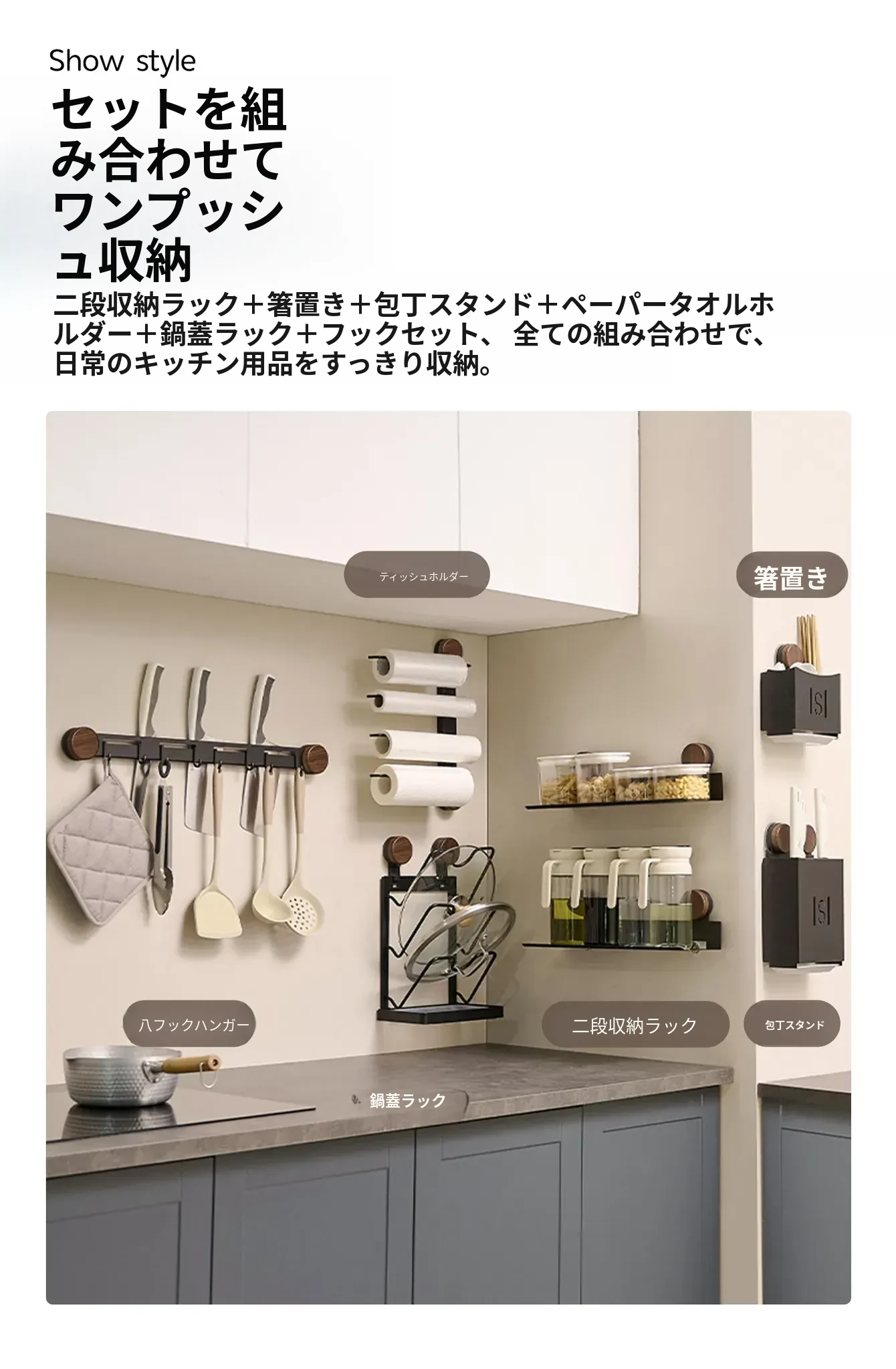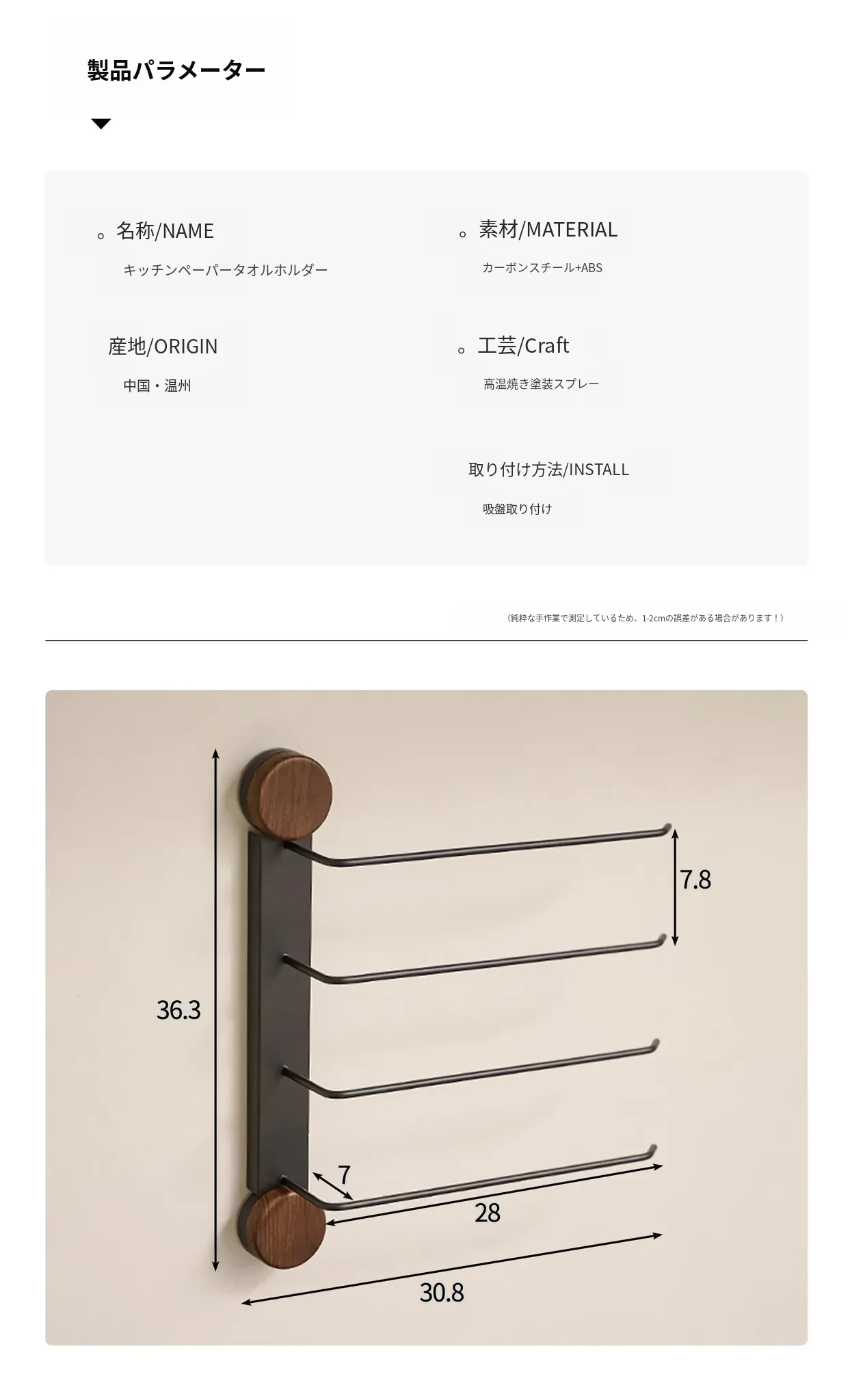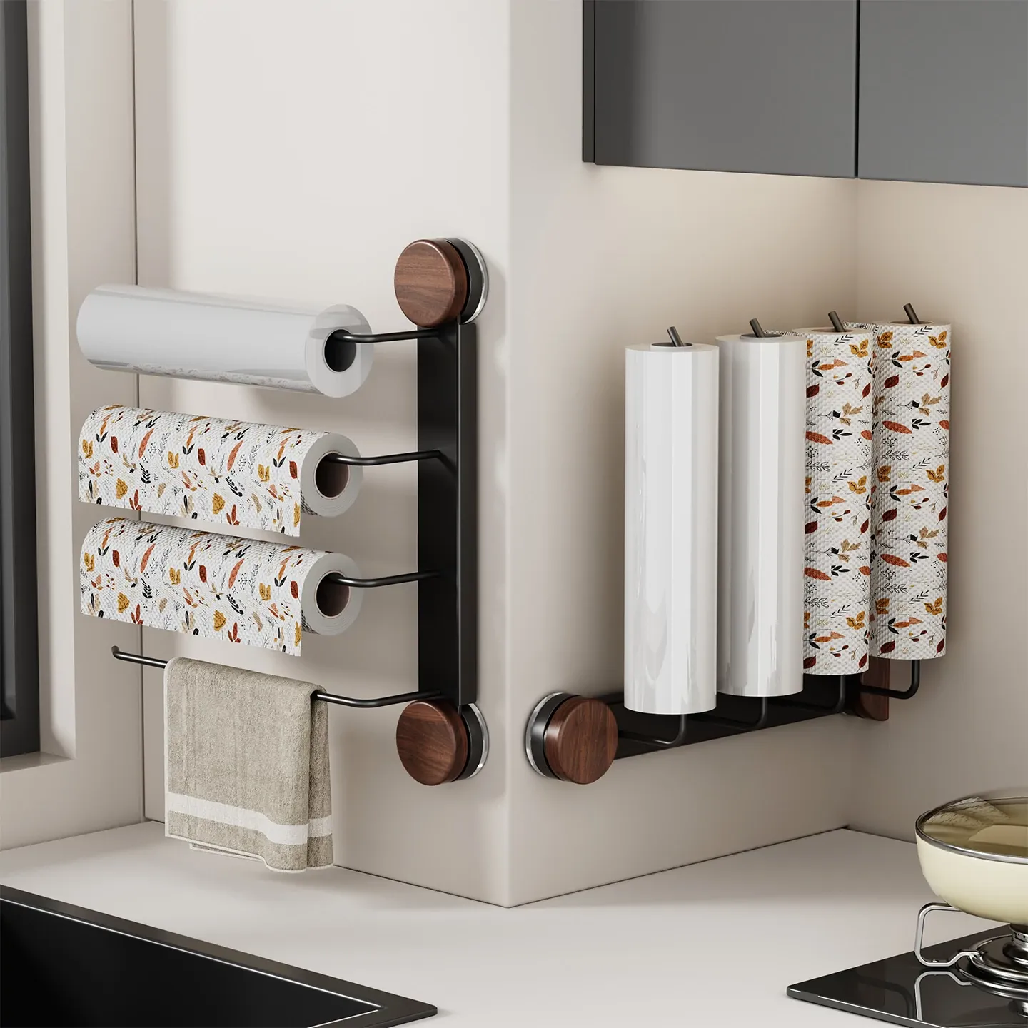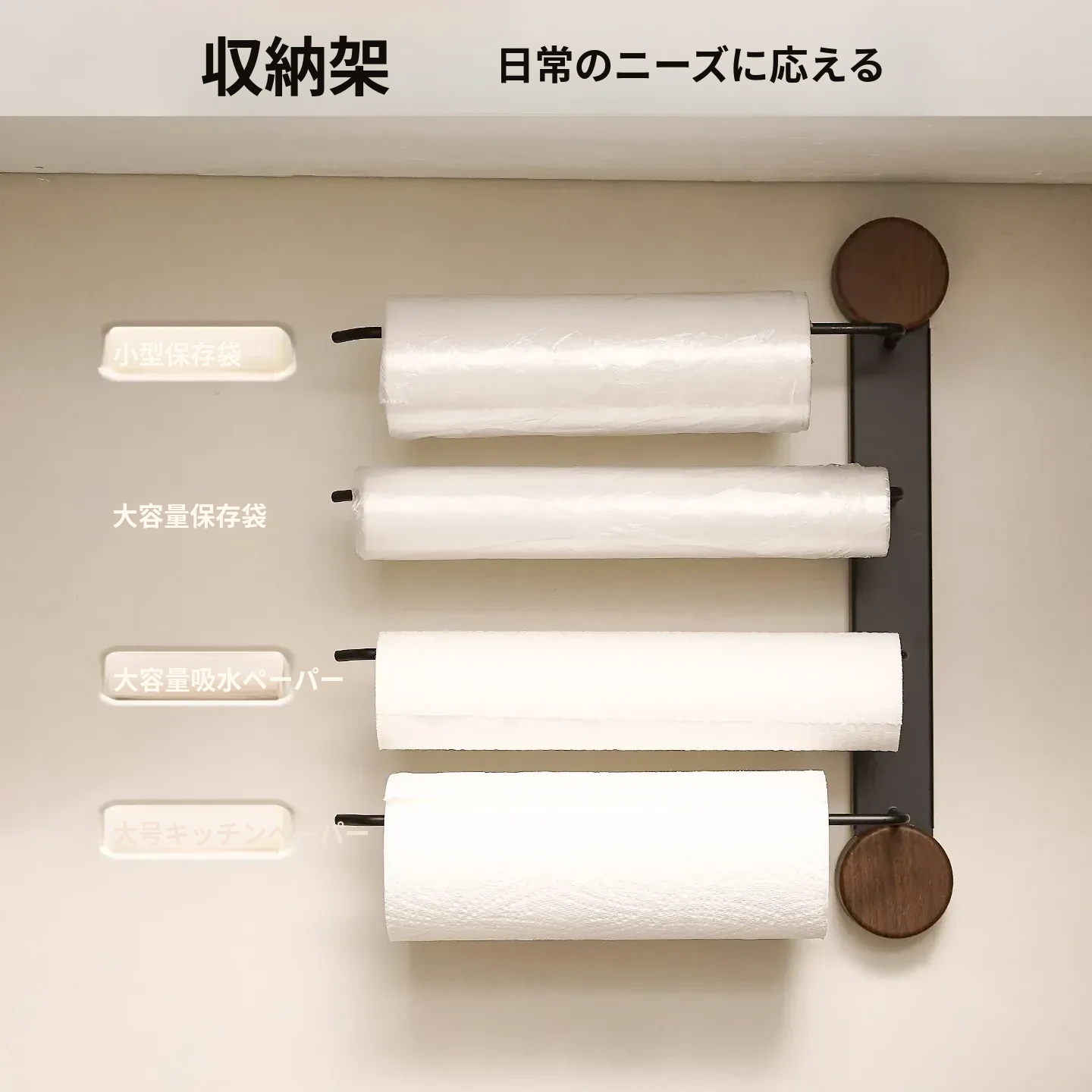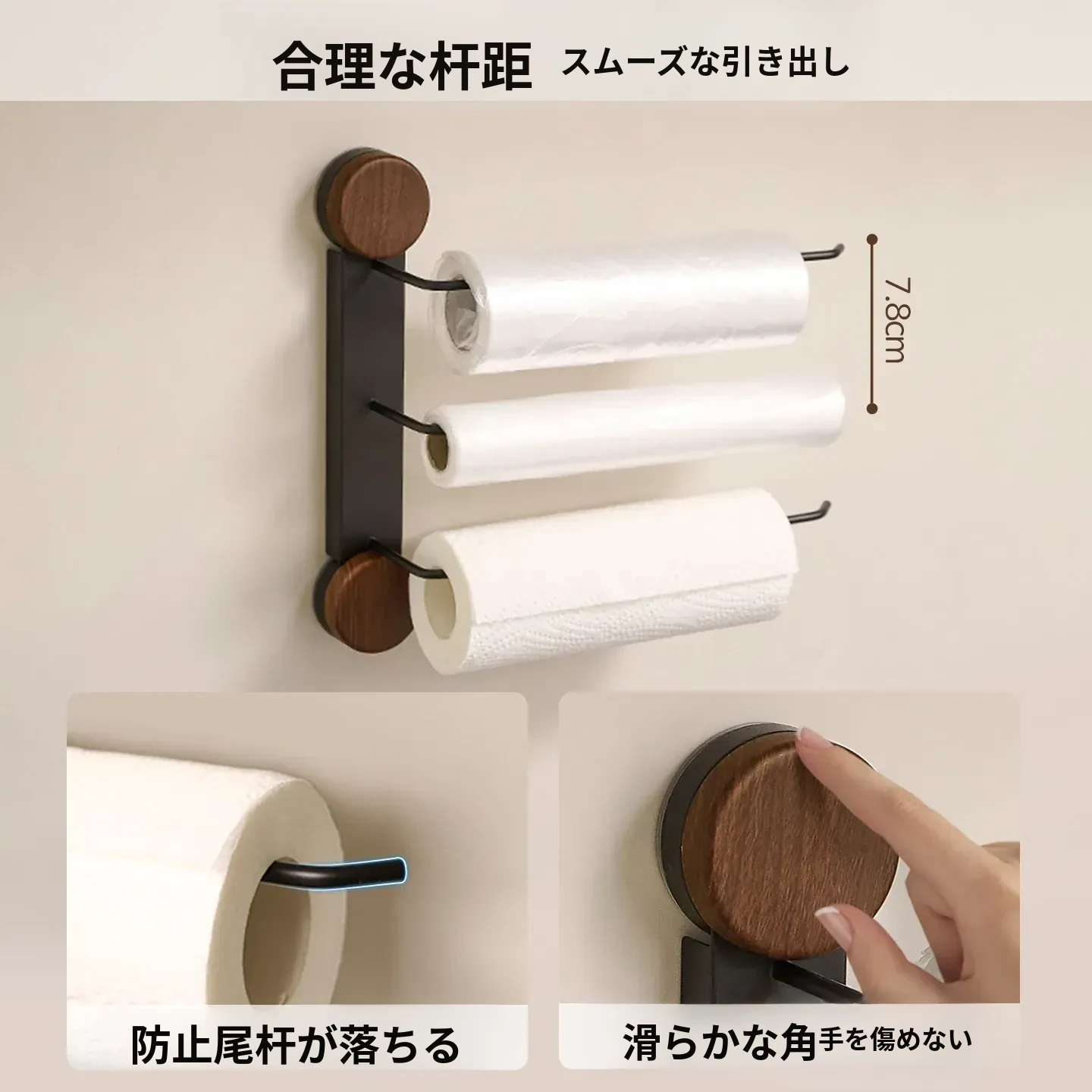 吸盤式キッチンペーパーラック - 簡単取り付け、穴あけ不要!収納力抜群の多機能ハンガーで、ラップや布巾もスッキリ整理。美しいキッチンを実現する壁掛け収納!