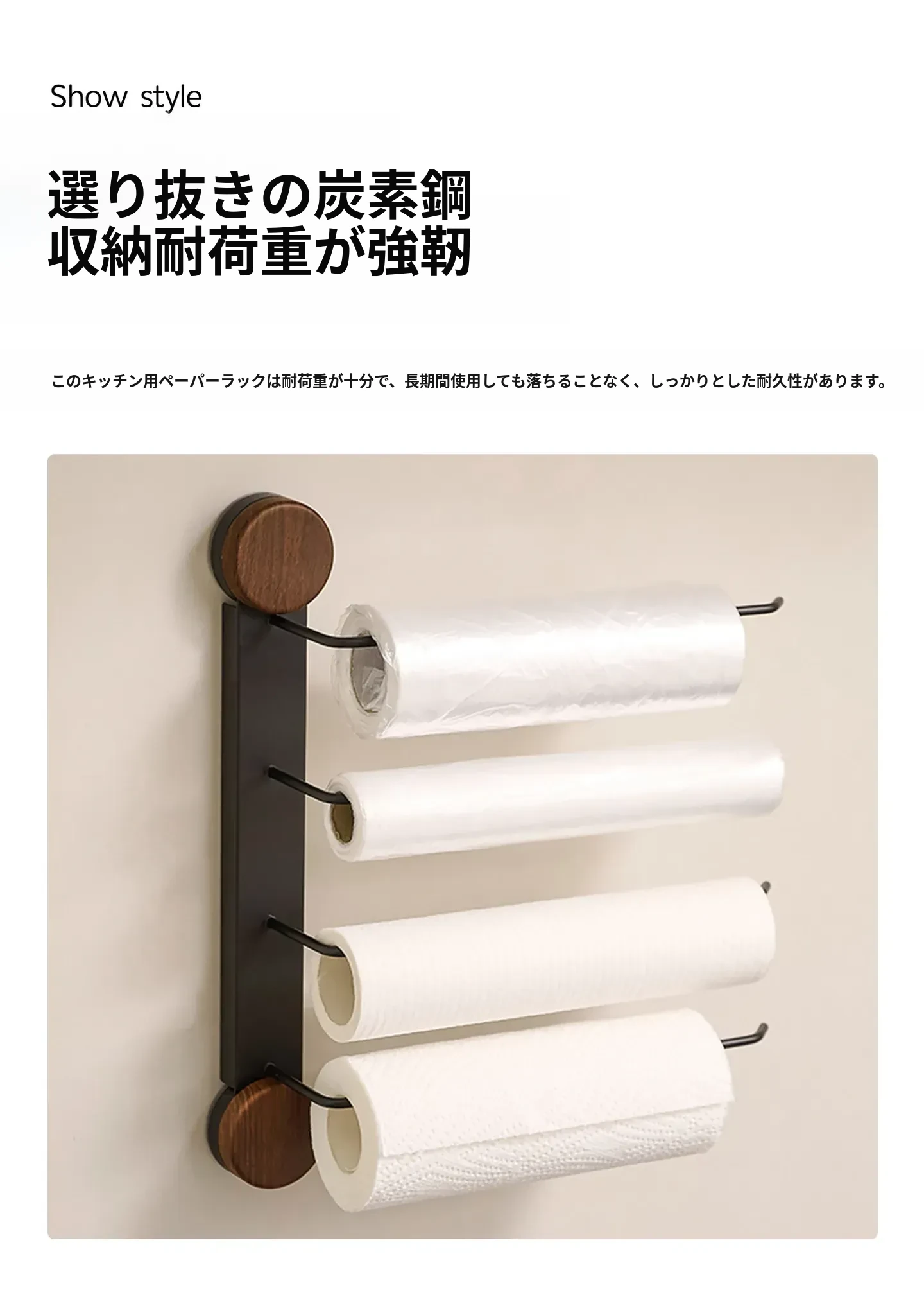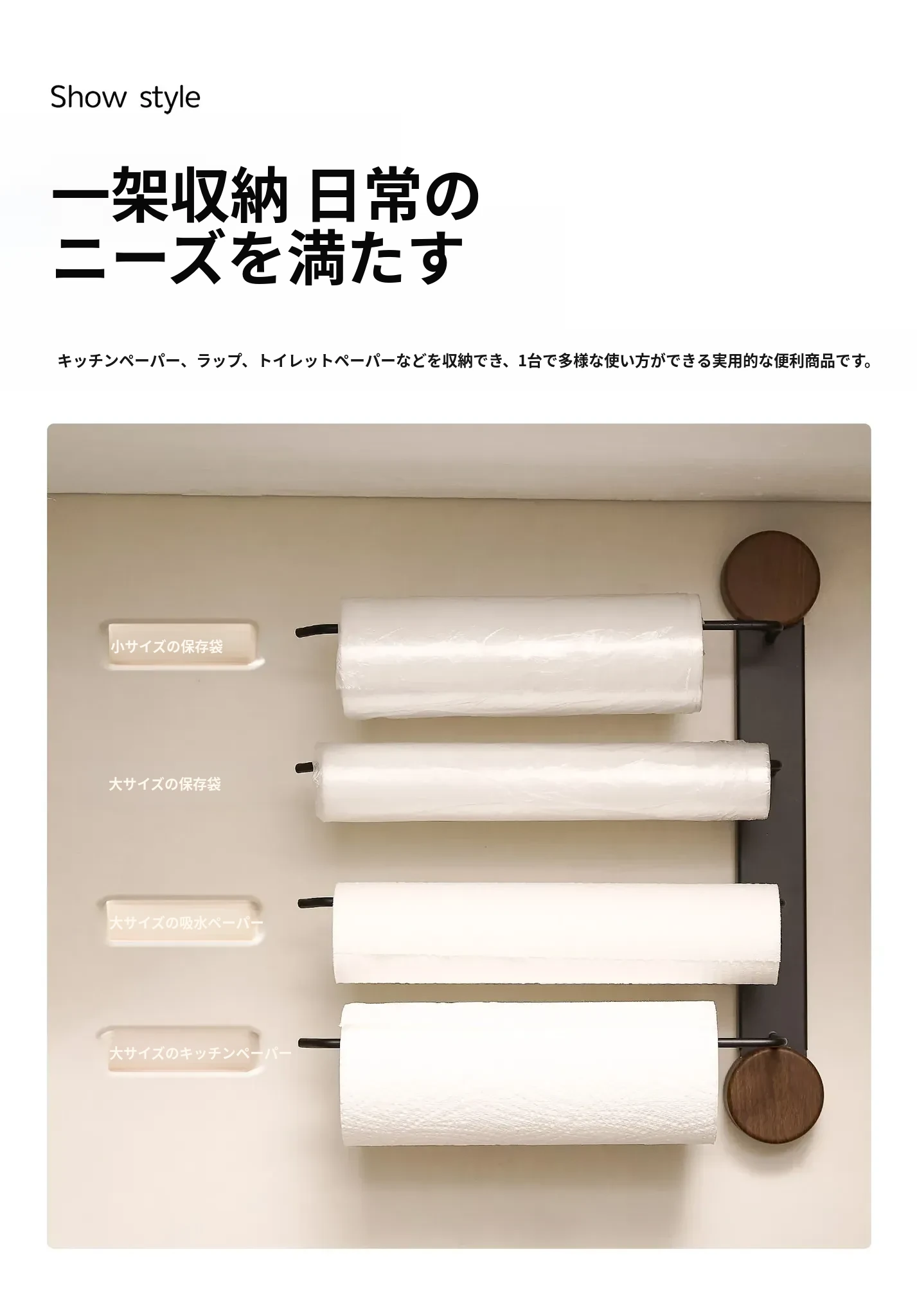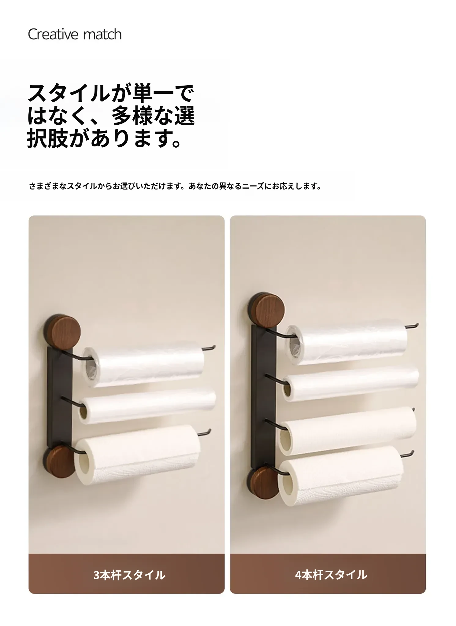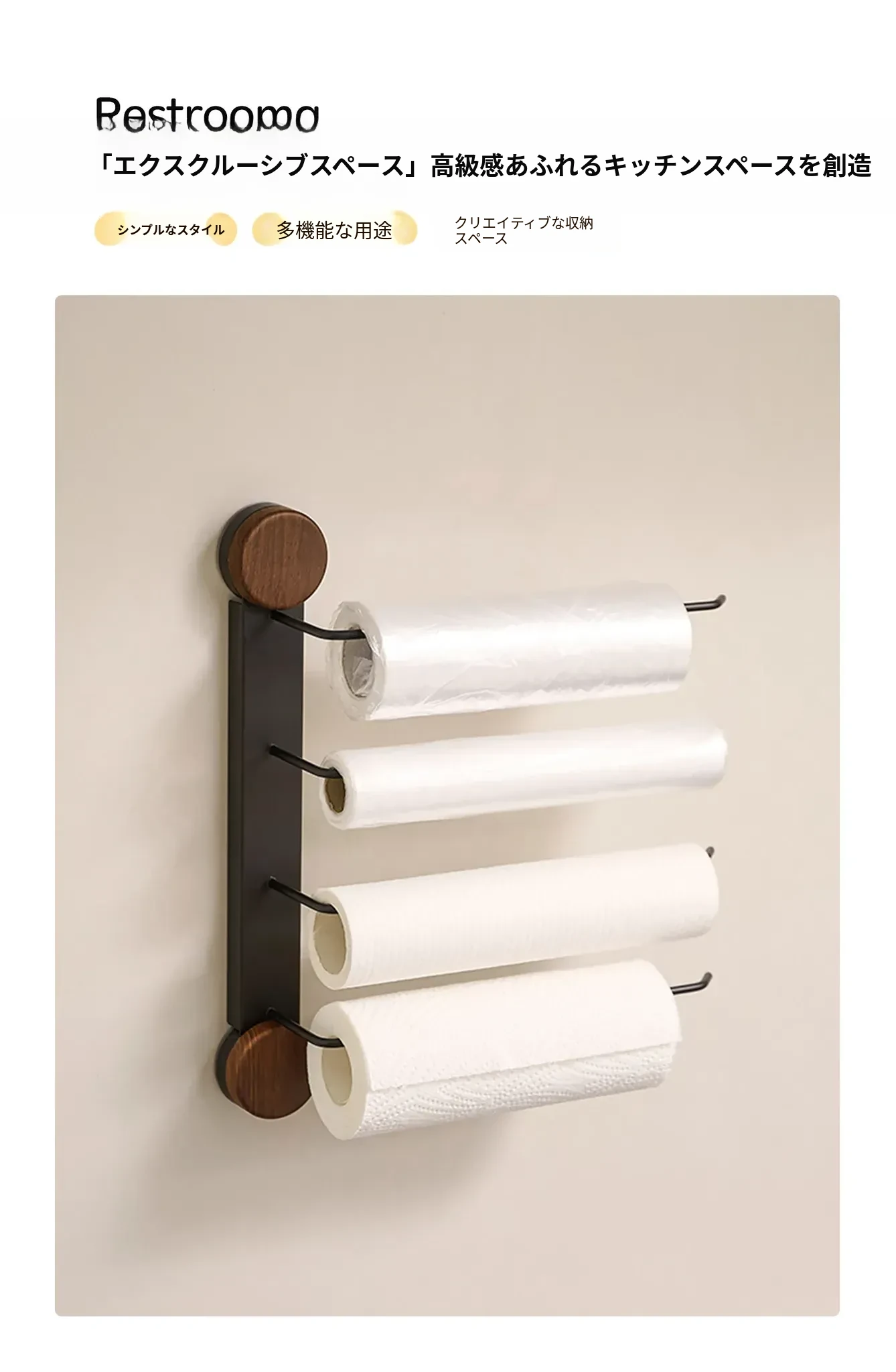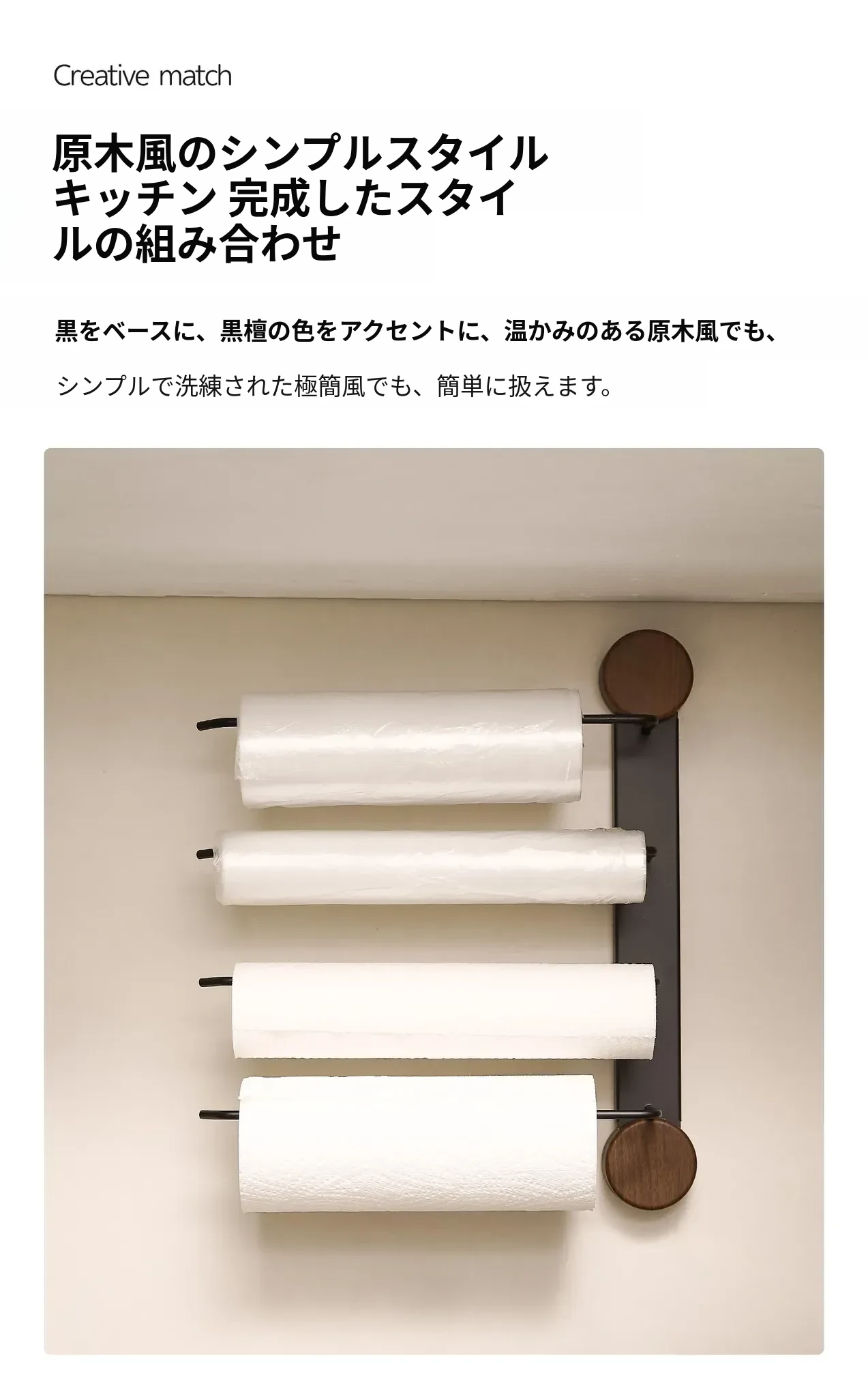 ブラックウォールナット色-キッチンペーパーラック四杆【クリームホワイト】