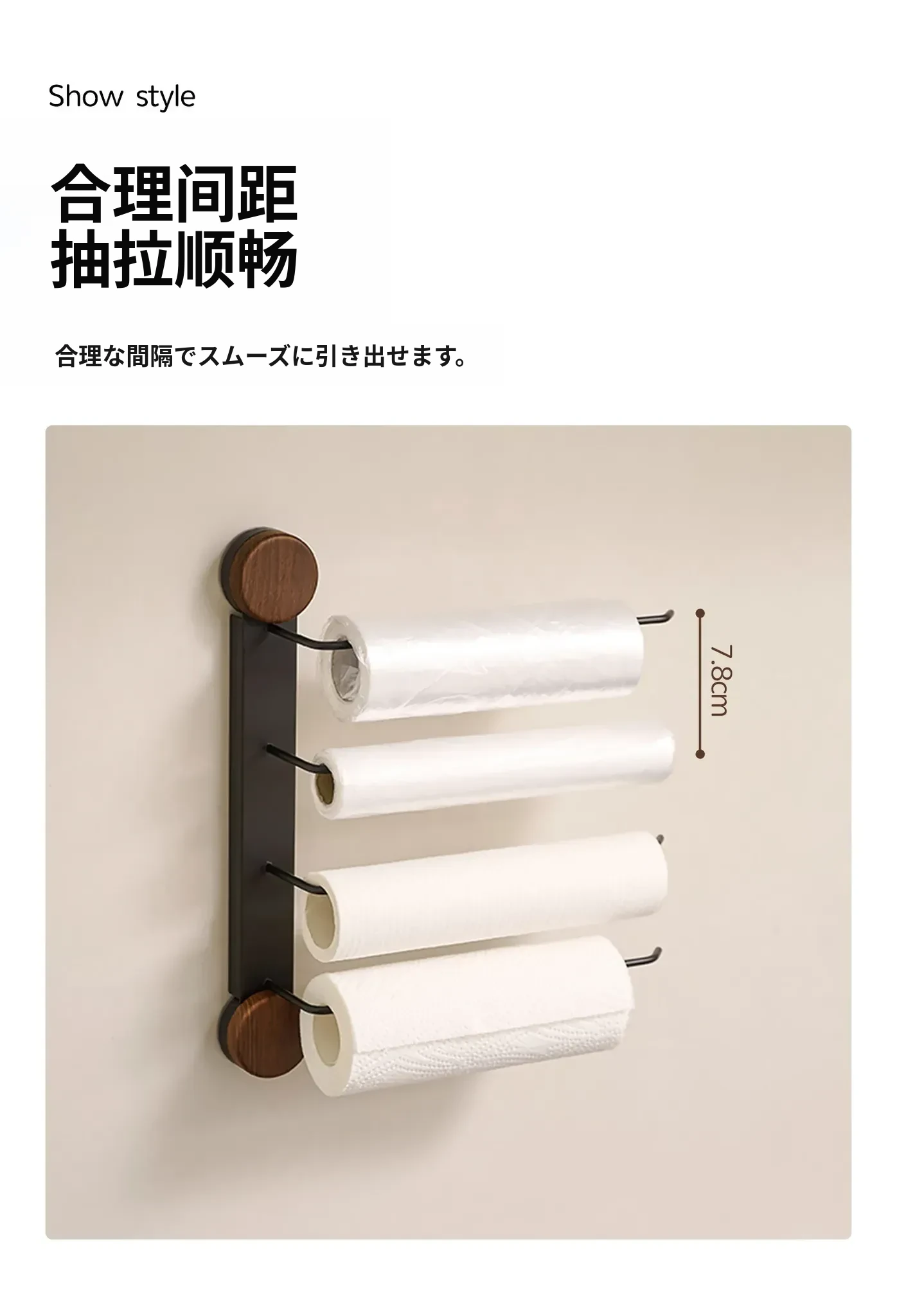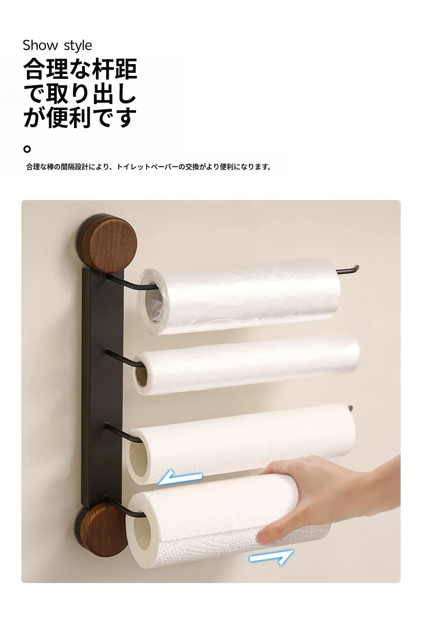 ブラックウォールナット色-キッチンペーパーラック四杆【黒】