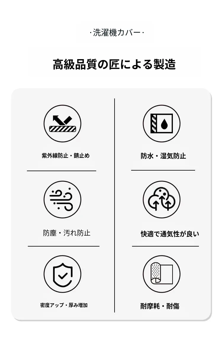 全包防水防晒洗濯機カバー | 便利な遮光・防塵機能付き | 開運中も取らずに使える!あなたの洗濯機をしっかり守る高品質カバー!