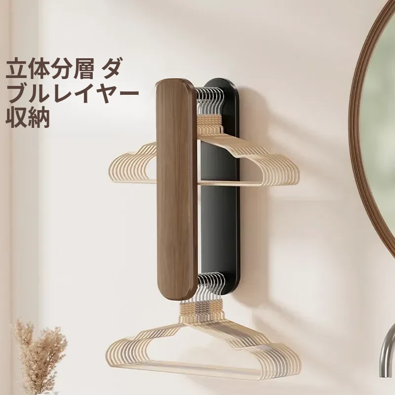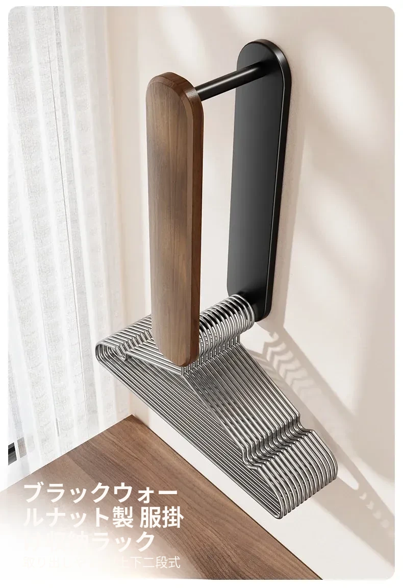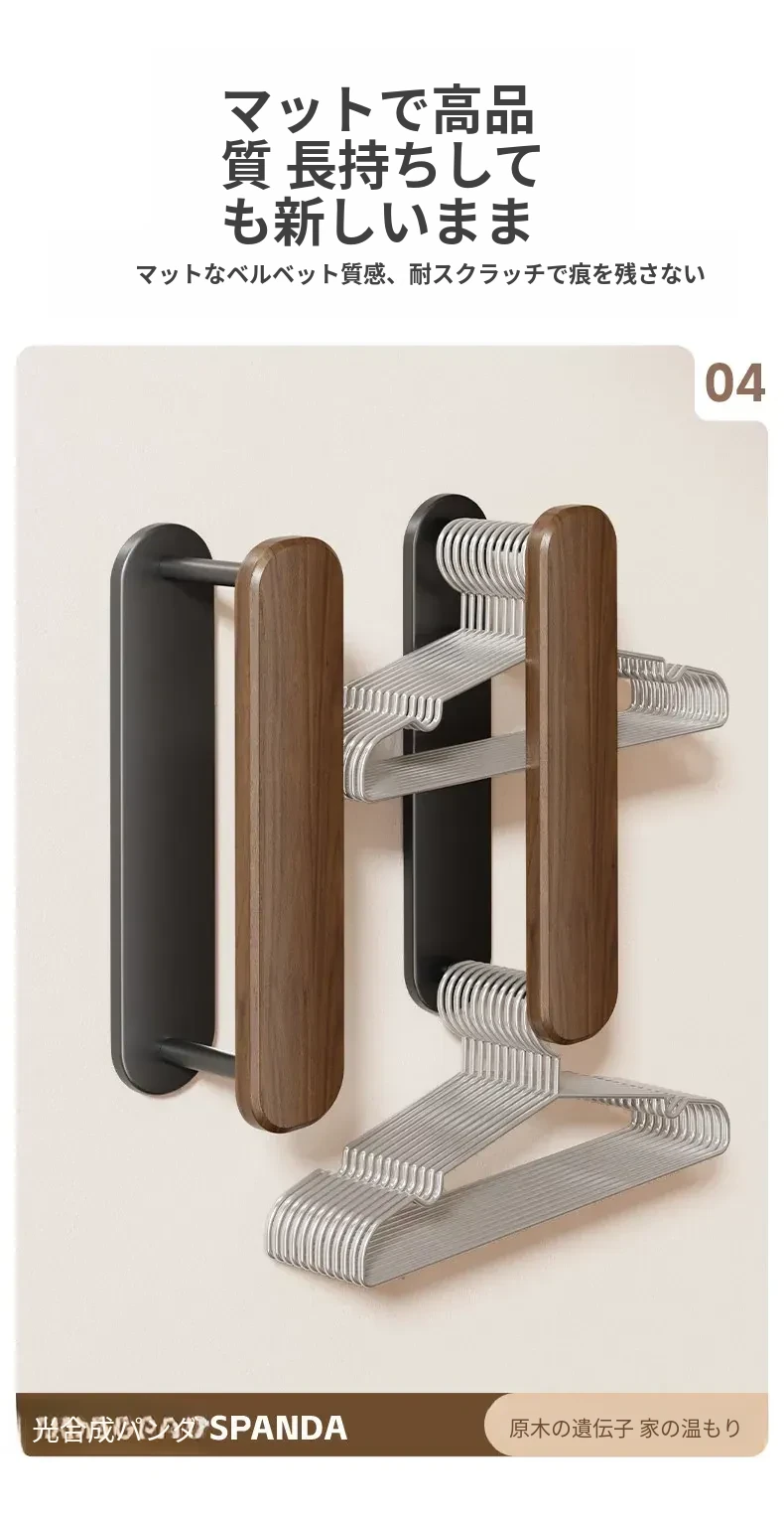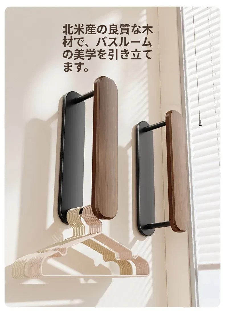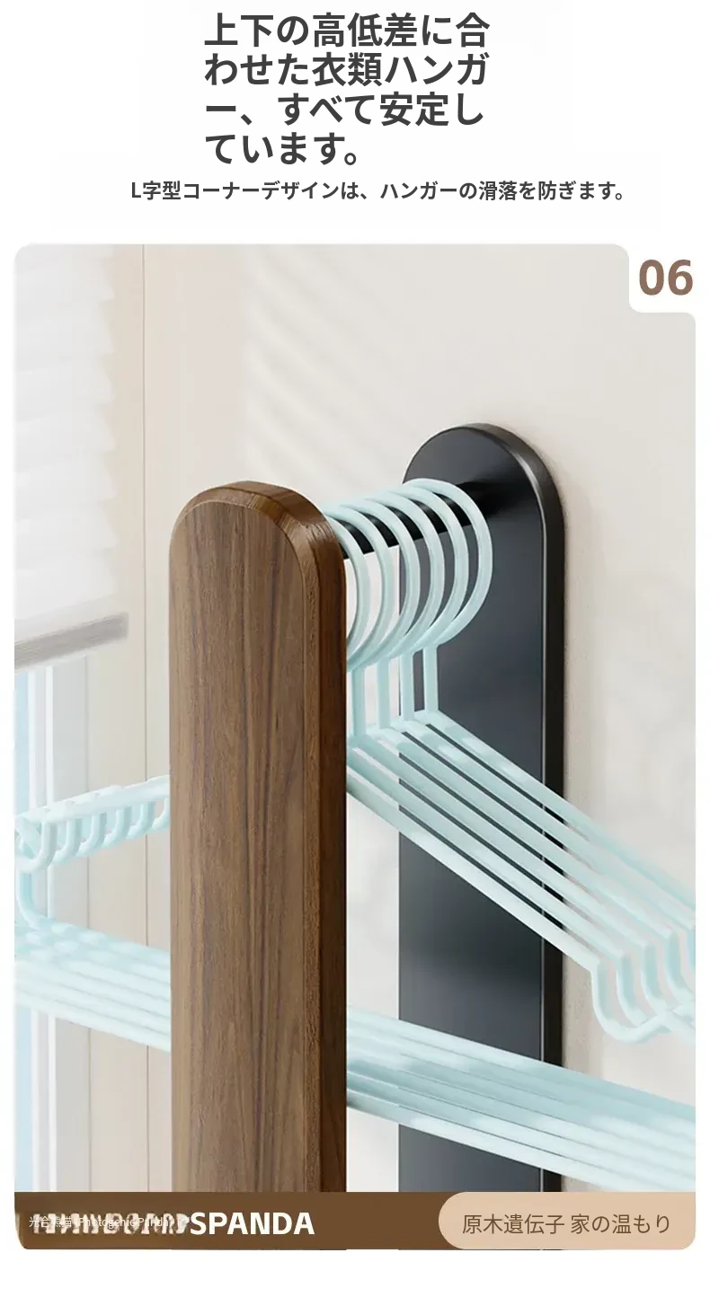 ウォールナット製ハンガー収納ラック - ナチュラルな木の風合いで、バルコニーや家庭での収納をスマートに!丈夫な無垢材使用、衣類をおしゃれに整理整頓できる便利アイテムです。
