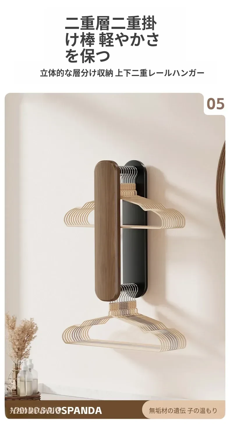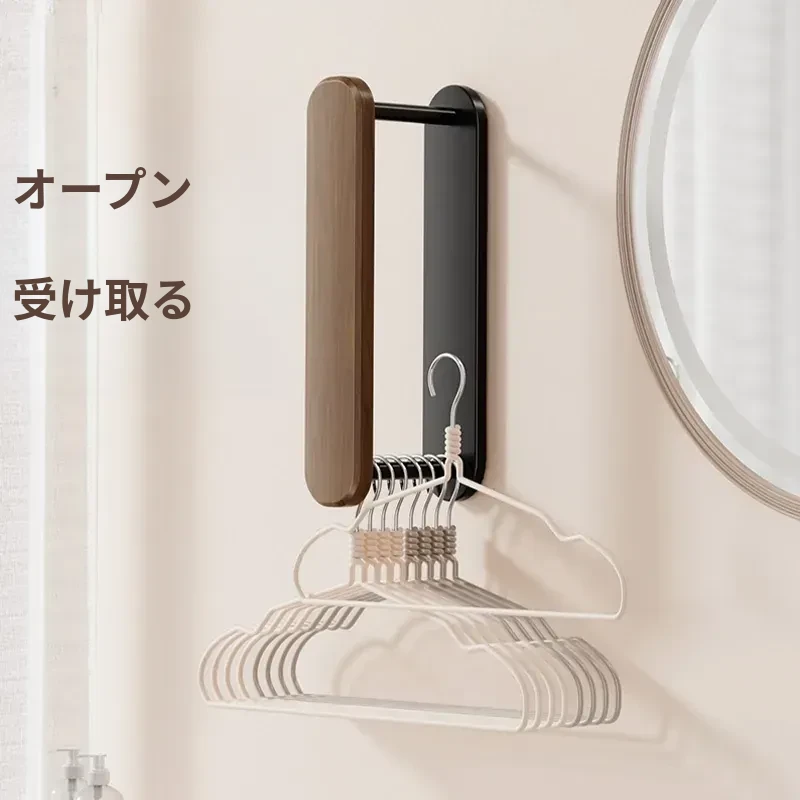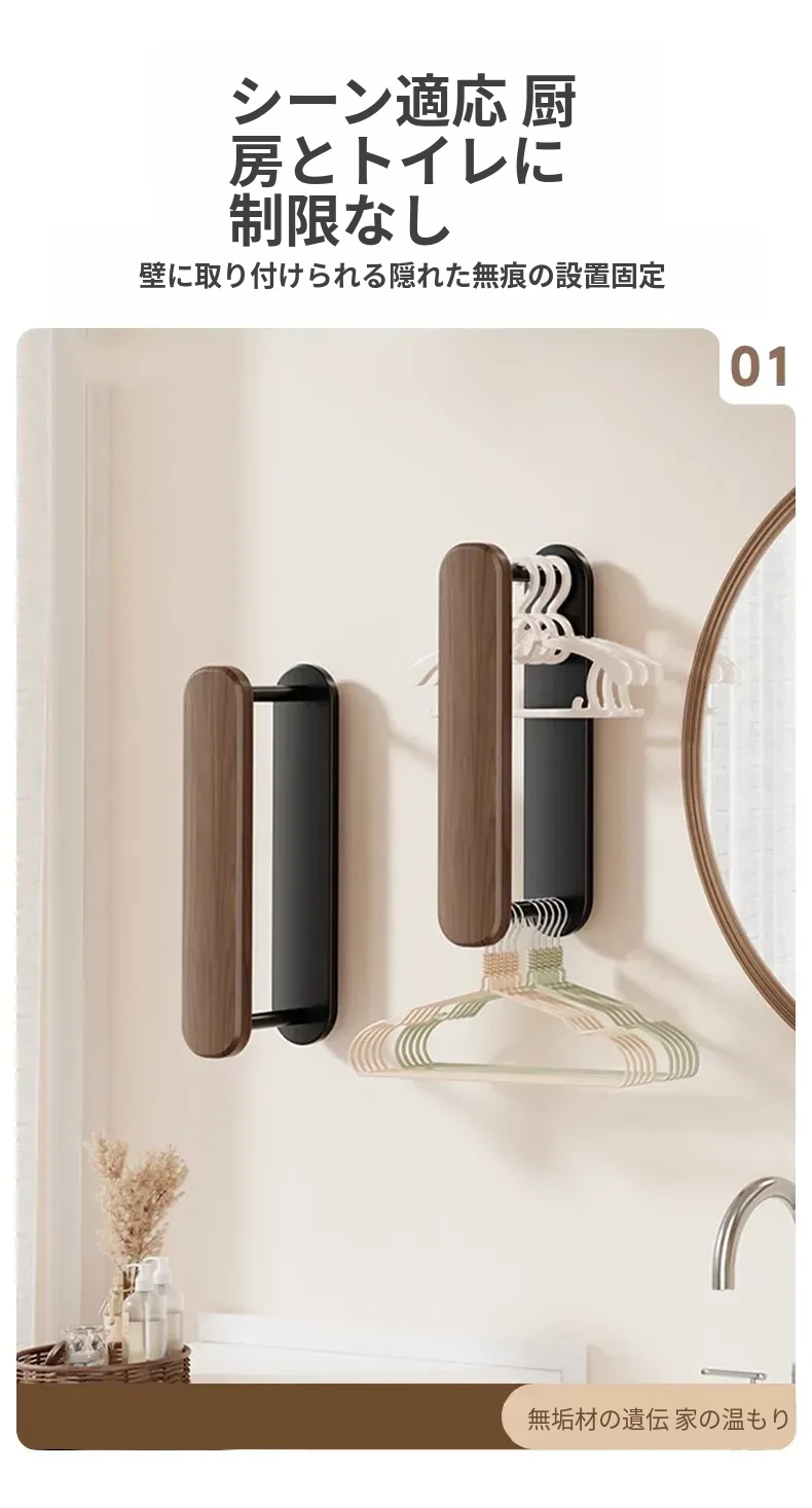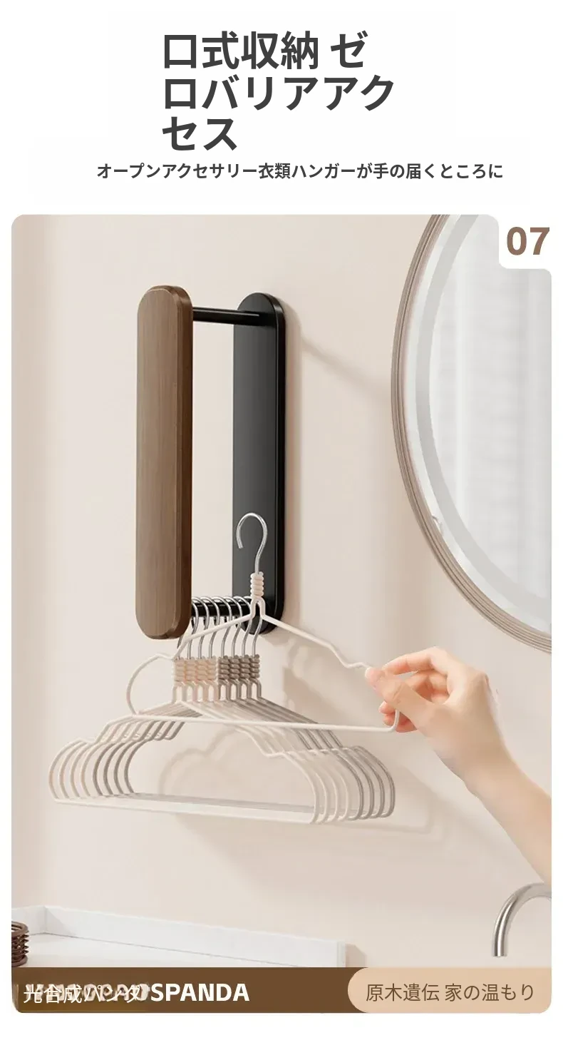 ウォールナット製ハンガー収納ラック - ナチュラルな木の風合いで、バルコニーや家庭での収納をスマートに!丈夫な無垢材使用、衣類をおしゃれに整理整頓できる便利アイテムです。