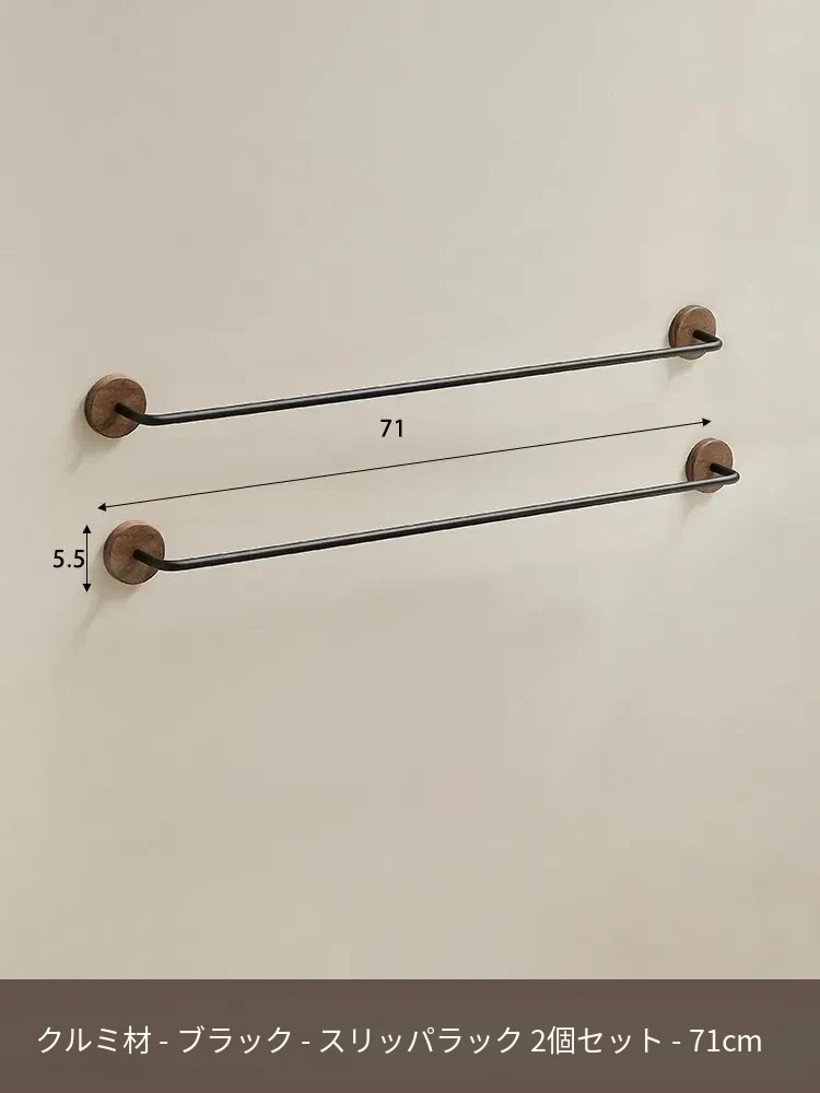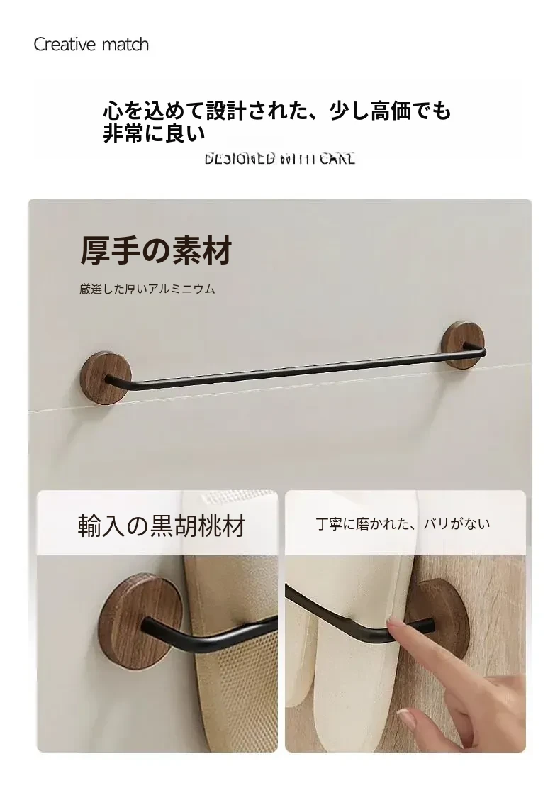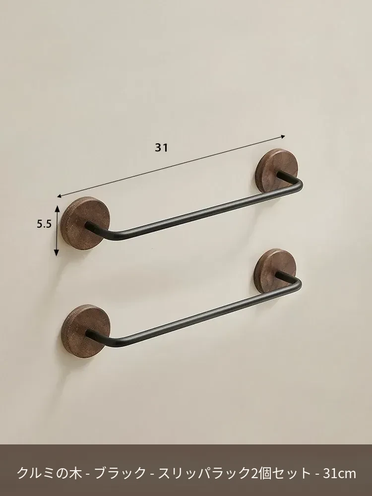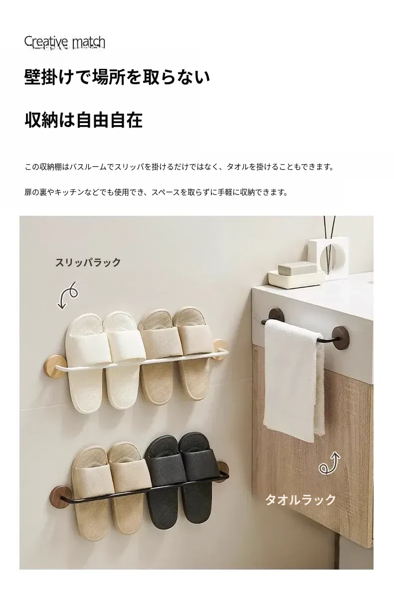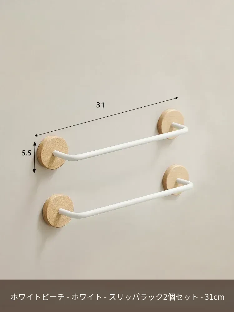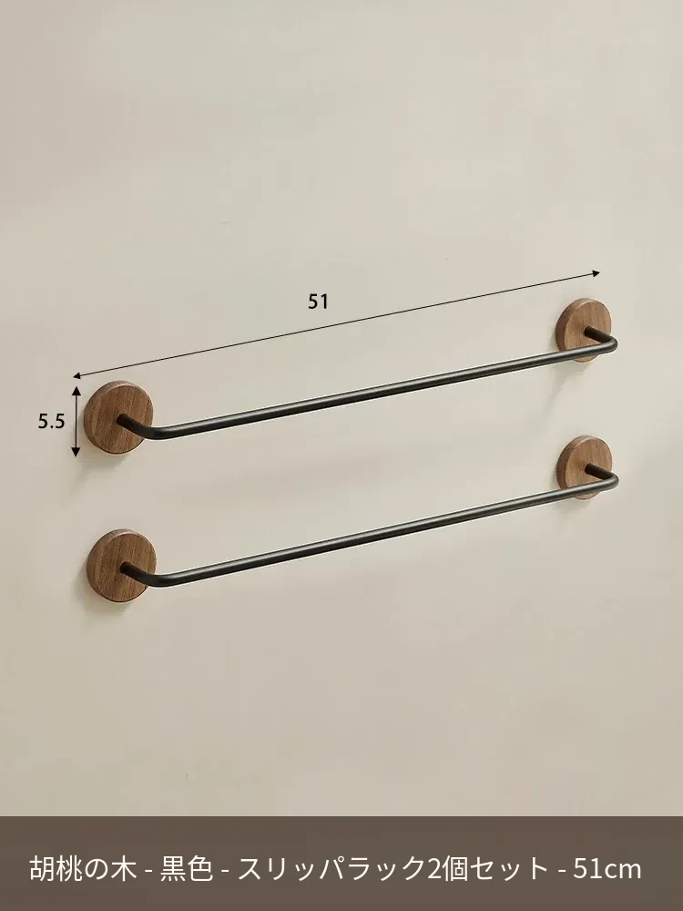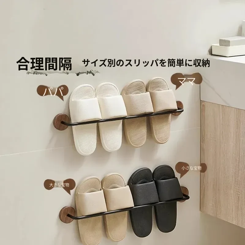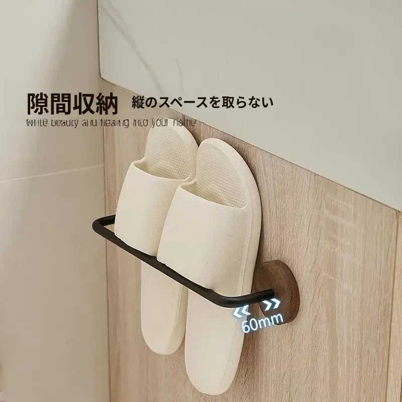 ウォールマウント式のくるみ材バススリッパラック - 穴あけ不要、トイレや洗面所の靴収納に最適!便利でスタイリッシュなドア裏収納ラック。