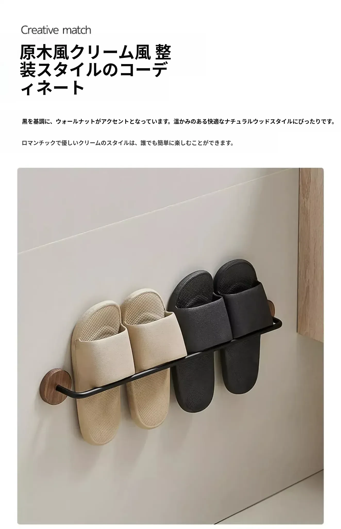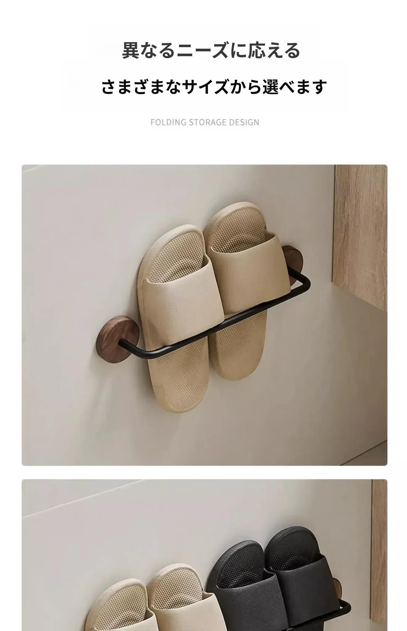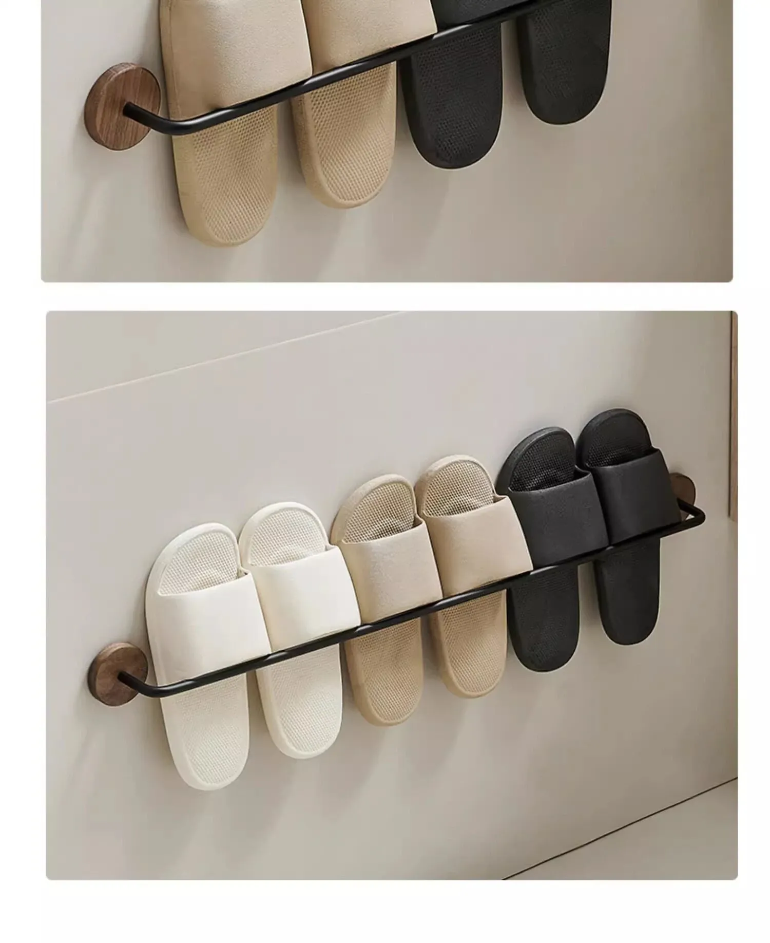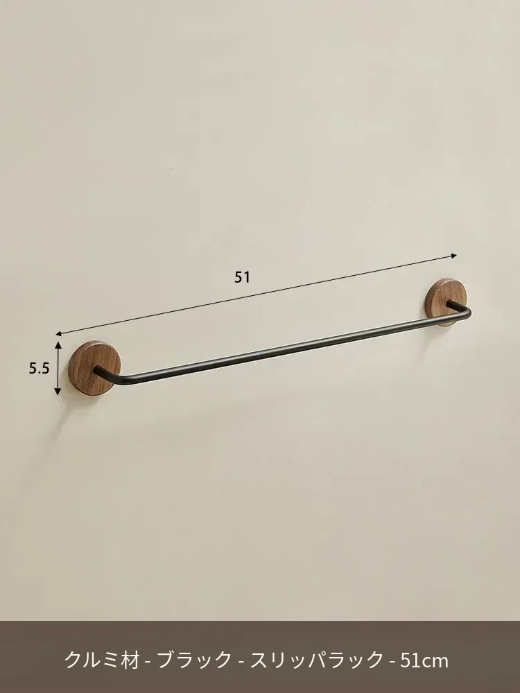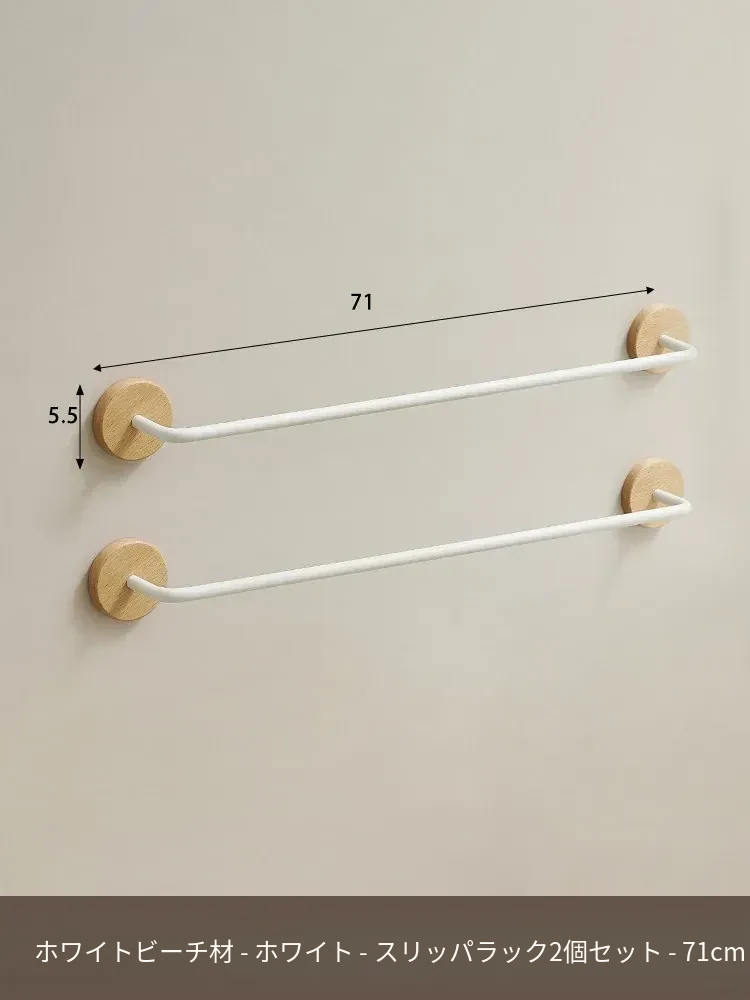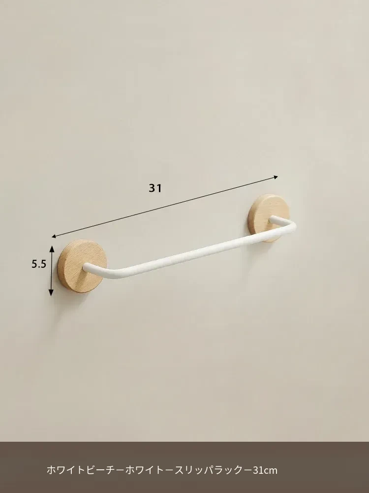 ウォールマウント式のくるみ材バススリッパラック - 穴あけ不要、トイレや洗面所の靴収納に最適!便利でスタイリッシュなドア裏収納ラック。