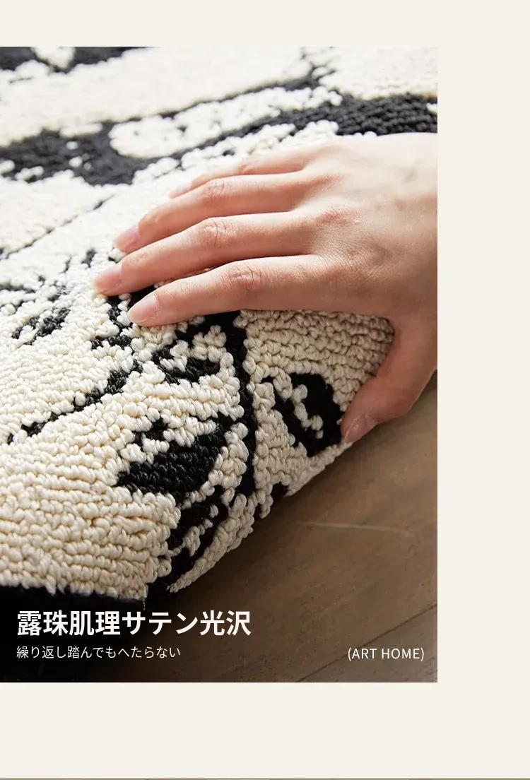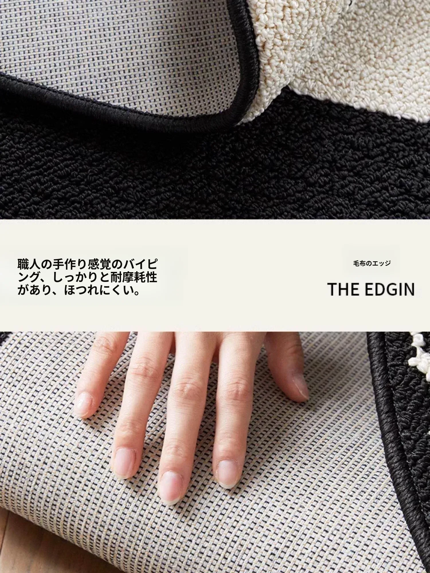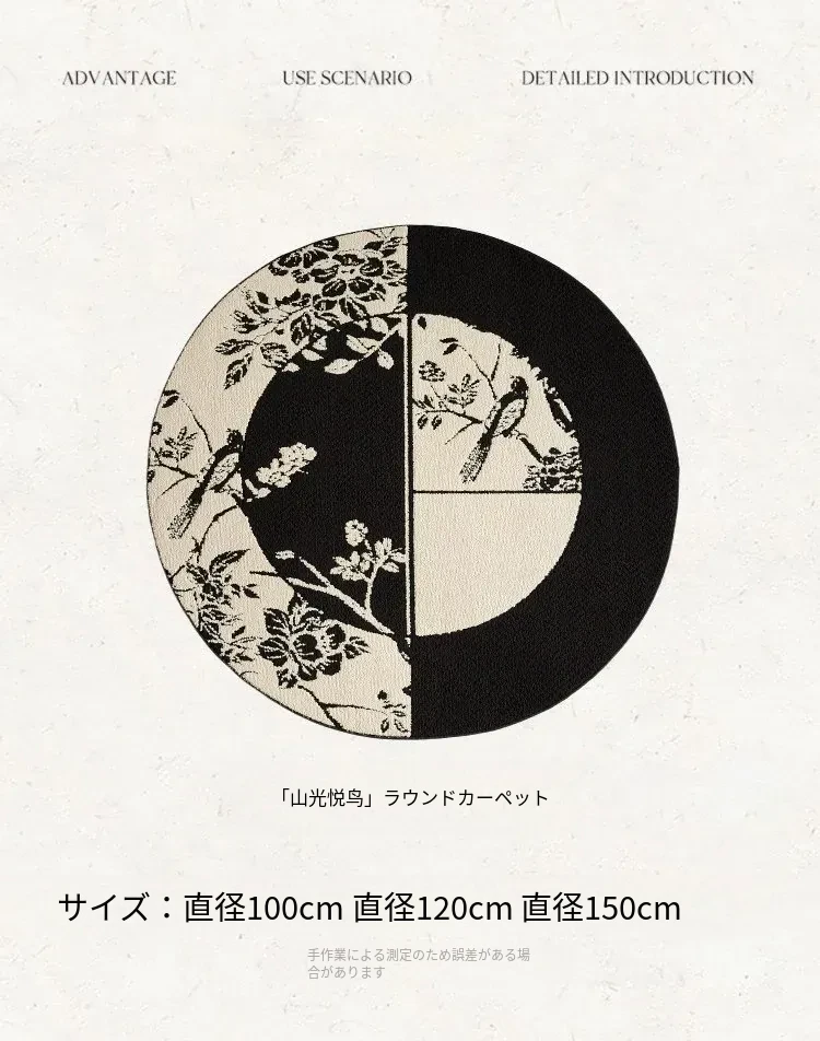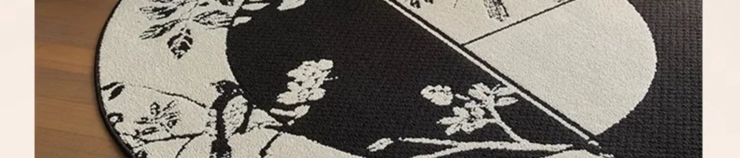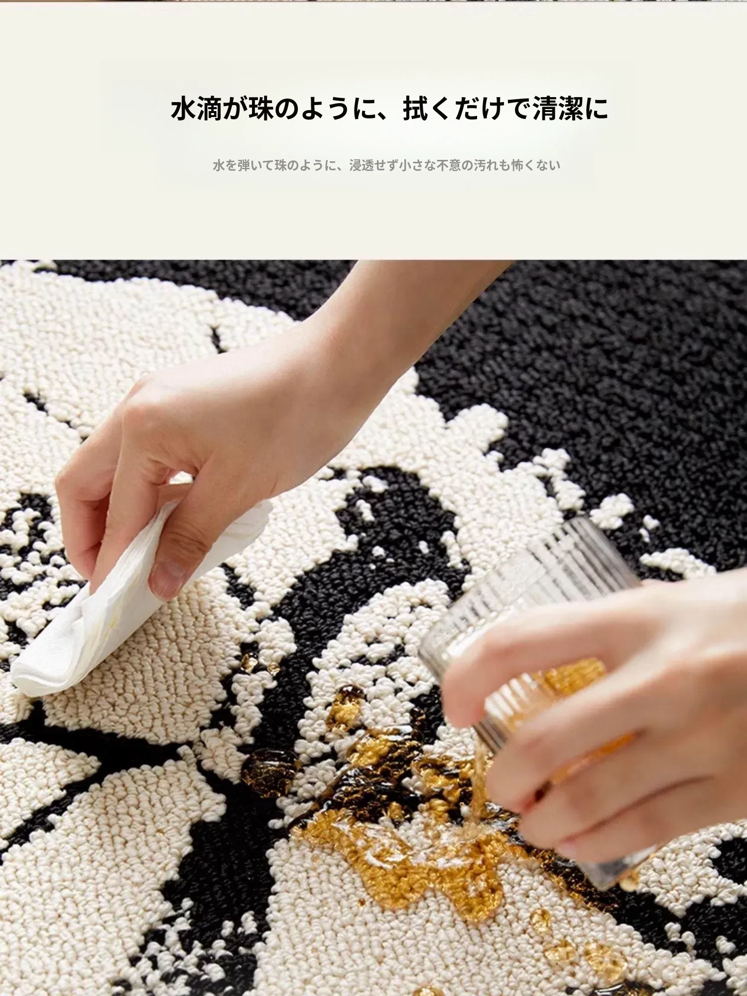 防水・防汚!新中式デザインの黒白円形レトロラグ。リビング、ベッドサイド、ソファやテーブルに最適。汚れにくく、手間いらずのお手入れで快適な空間を演出!