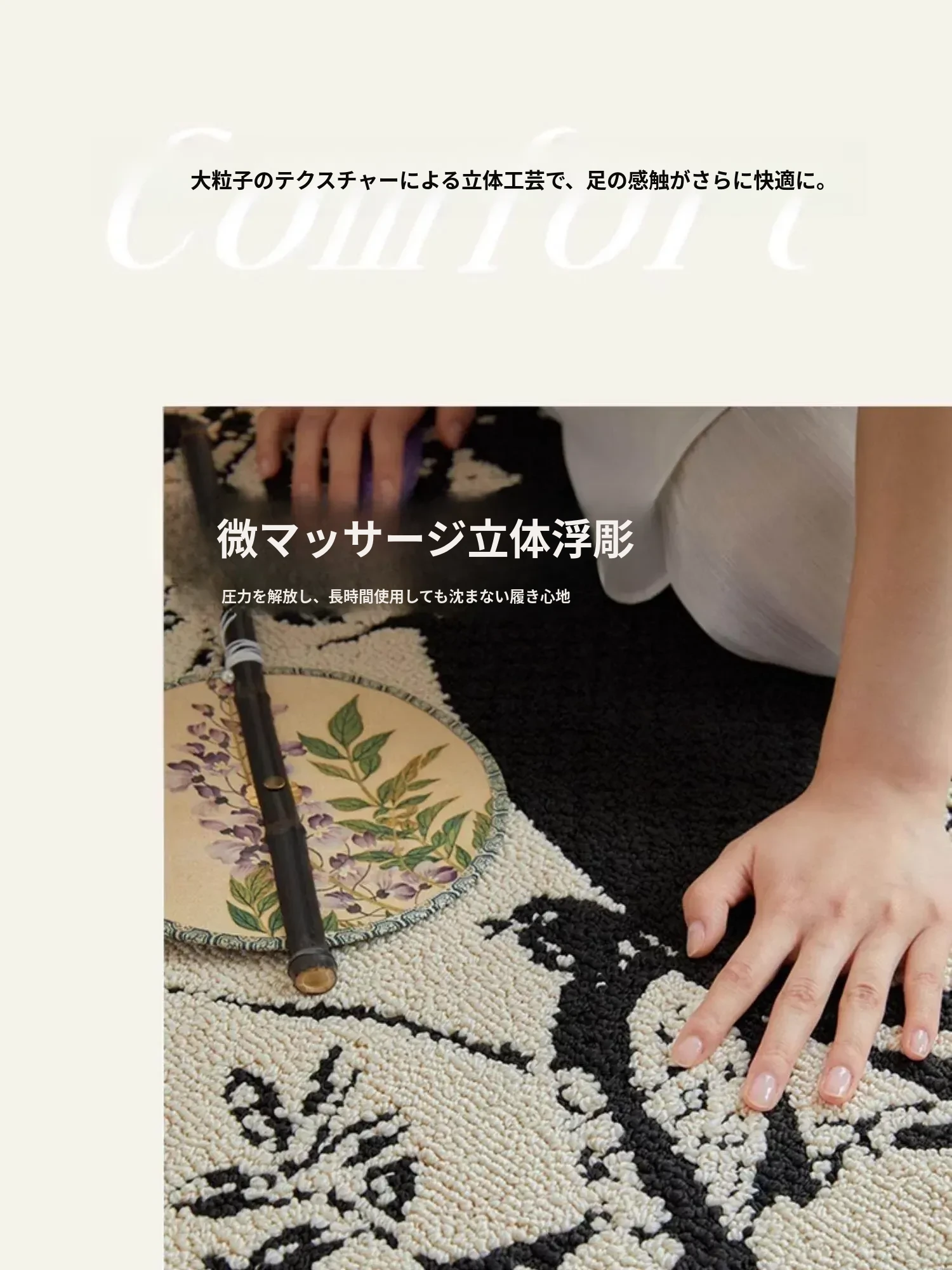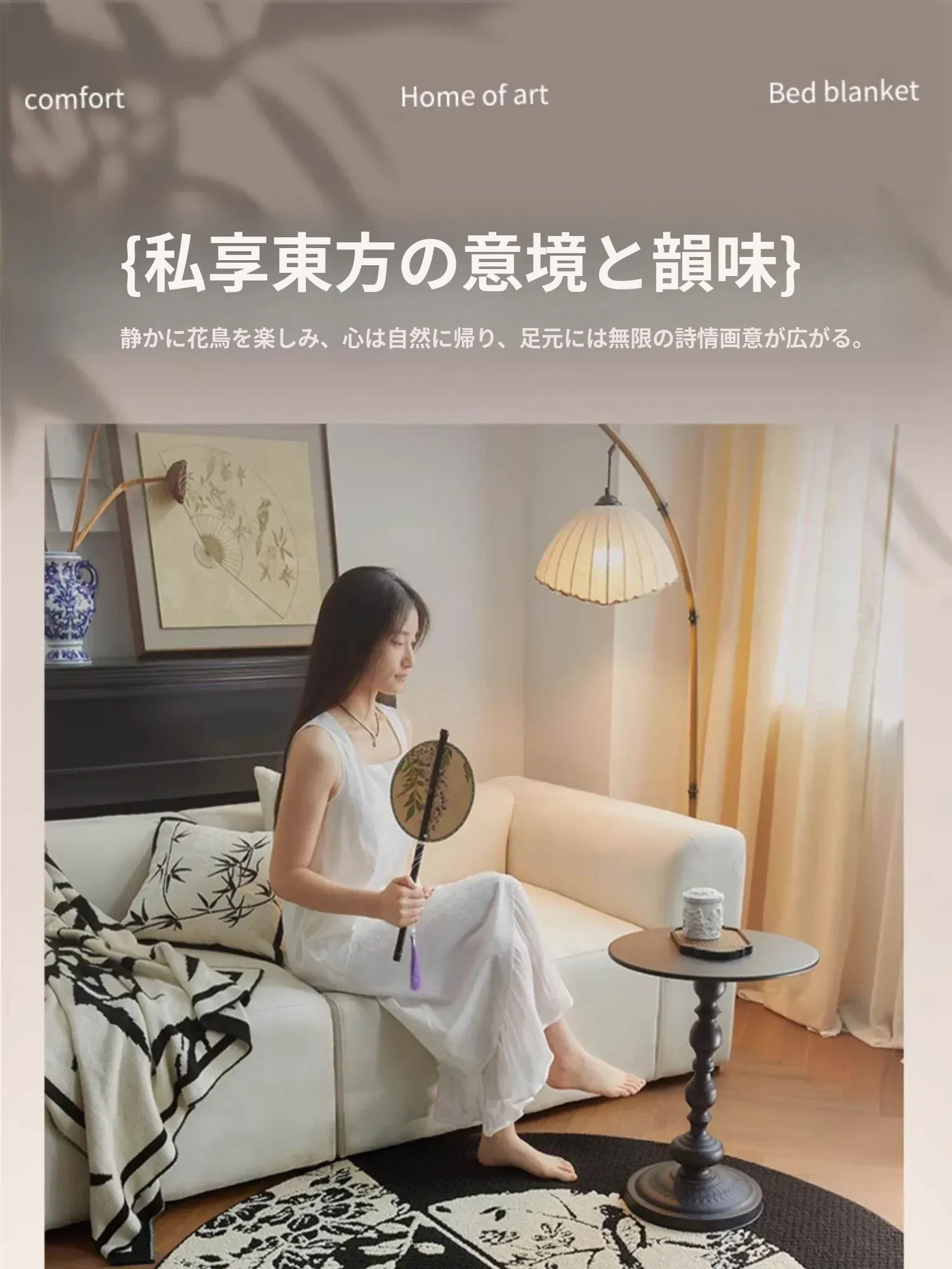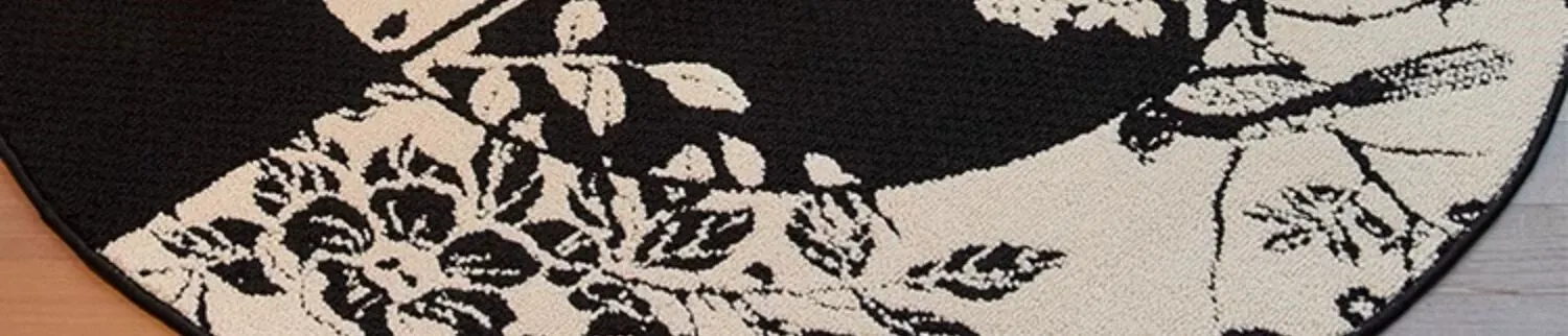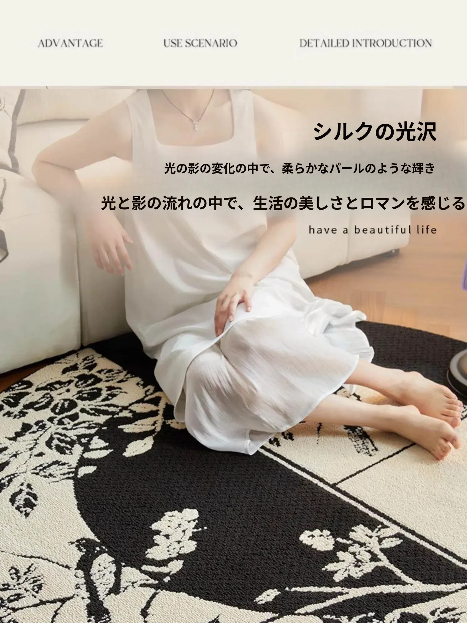 防水・防汚!新中式デザインの黒白円形レトロラグ。リビング、ベッドサイド、ソファやテーブルに最適。汚れにくく、手間いらずのお手入れで快適な空間を演出!