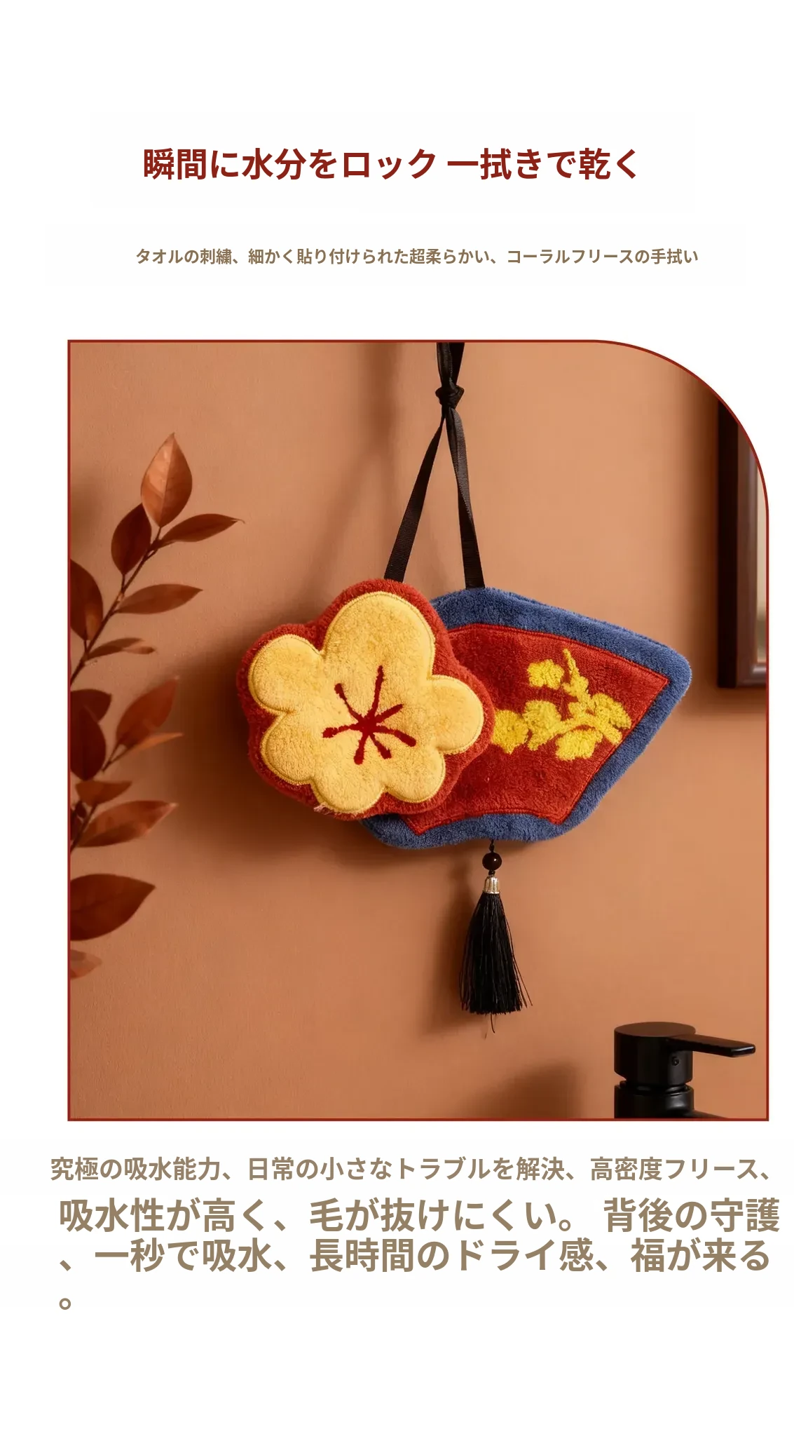 魅力溢れる韵梅香ハンドタオル - 壁掛けタイプで高級感漂う!超吸水&厚手設計、キッチンやトイレでも大活躍!清潔感あふれるお手拭きで快適な生活をサポートします。