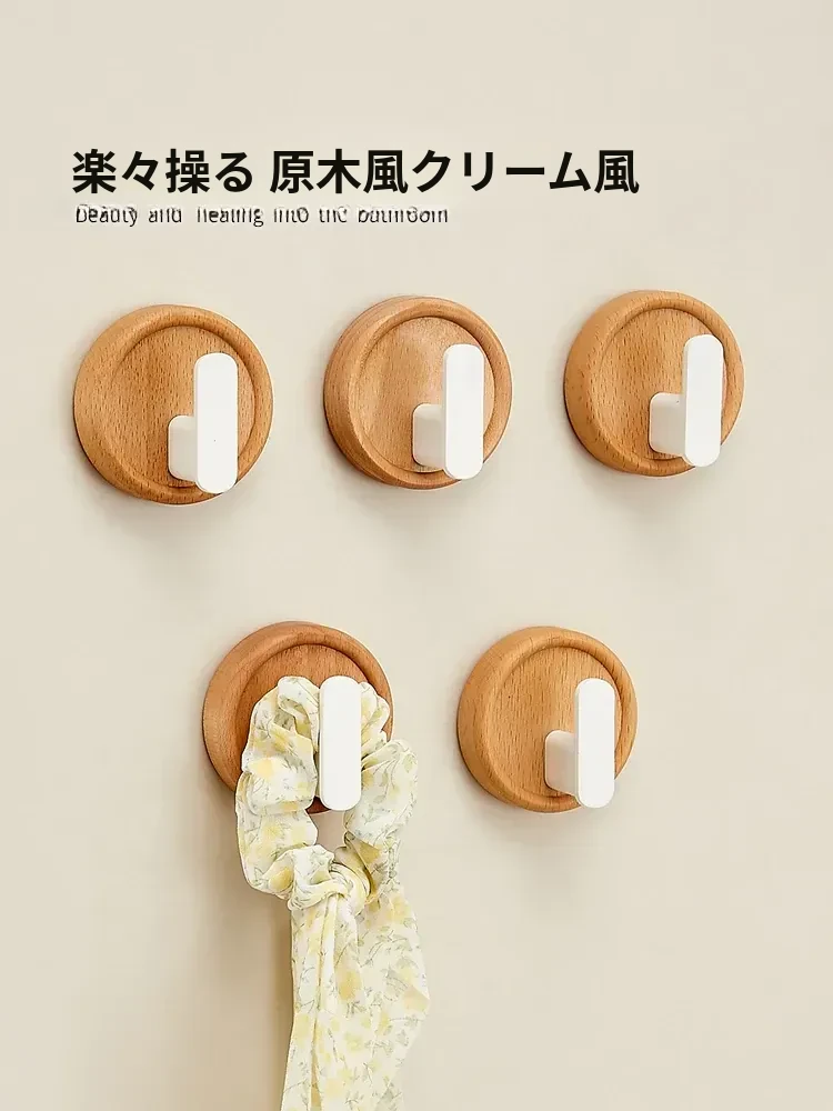 ウォールフック 胡桃木製 強力粘着 無孔取り付け 玄関・入居後の壁に最適!コートや帽子をおしゃれに収納できるデザインフック